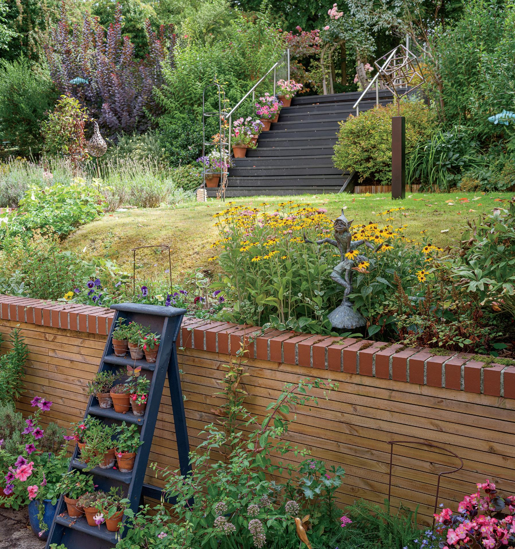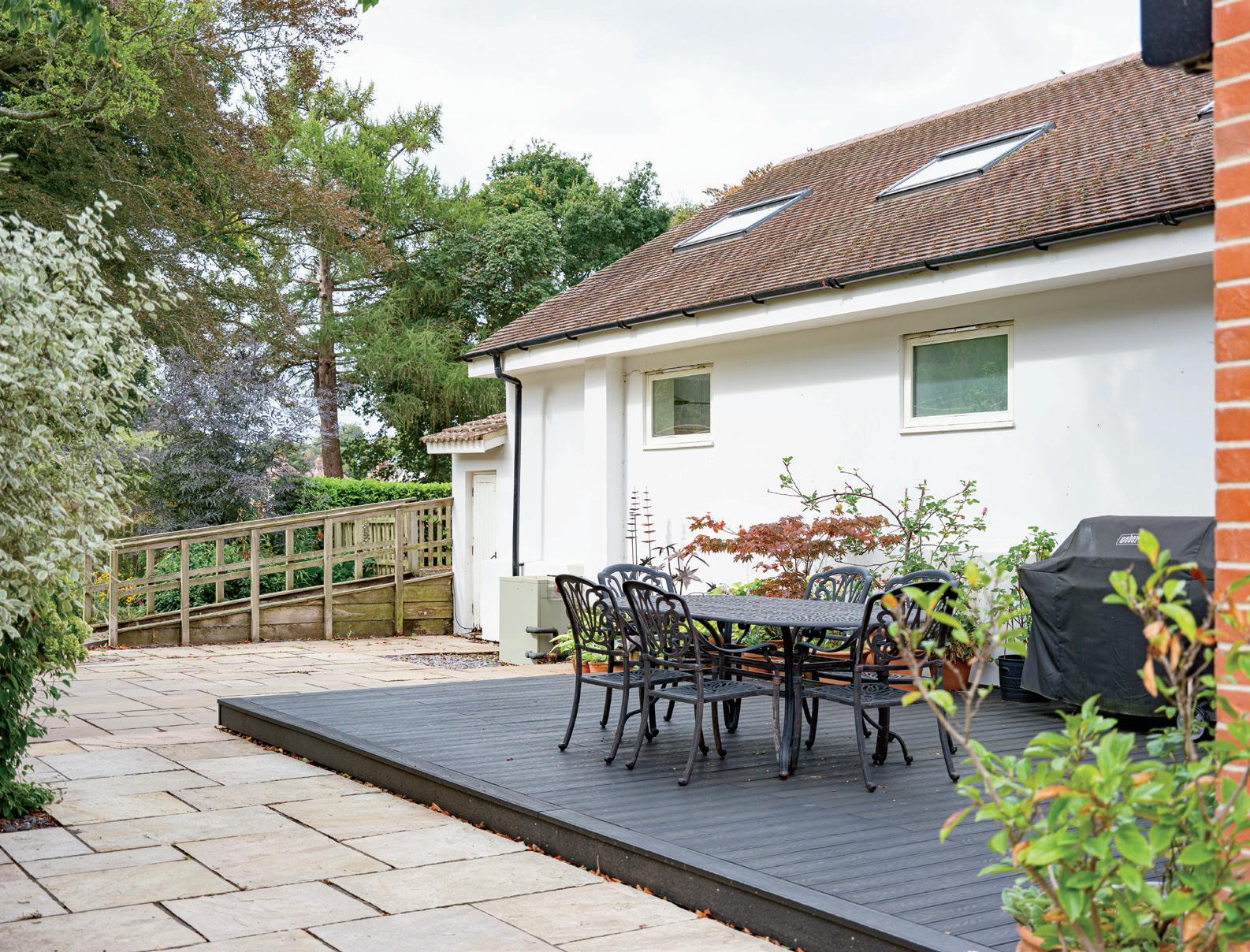 It offers so much, in fact more than we realised when we bought it, as aspects of living here became clearer over time e.g. How fantastic it is to be close to a lovely town (you can walk in) but also feel like you are in the country, and during COVID how great it was to have so much green space around us – we felt very safe. Being surrounded by fields and farm animals is wonderful, and the sloped and tiered garden is an absolute delight. Neighbours are brilliant, the privacy the property affords us is precious and the entertainment opportunities have been well exploited (we’ve made some amazing memories here holding parties and get-togethers for family and friends). The light is incredible too – the back garden gets the morning sun, and in the afternoon / evening we sit on the top deck (the sundowner deck) with a glass of wine and watch the sun go down whilst the garden planting and majestic mature trees give you a big hug. How could you not be nourished by such a beautiful space?