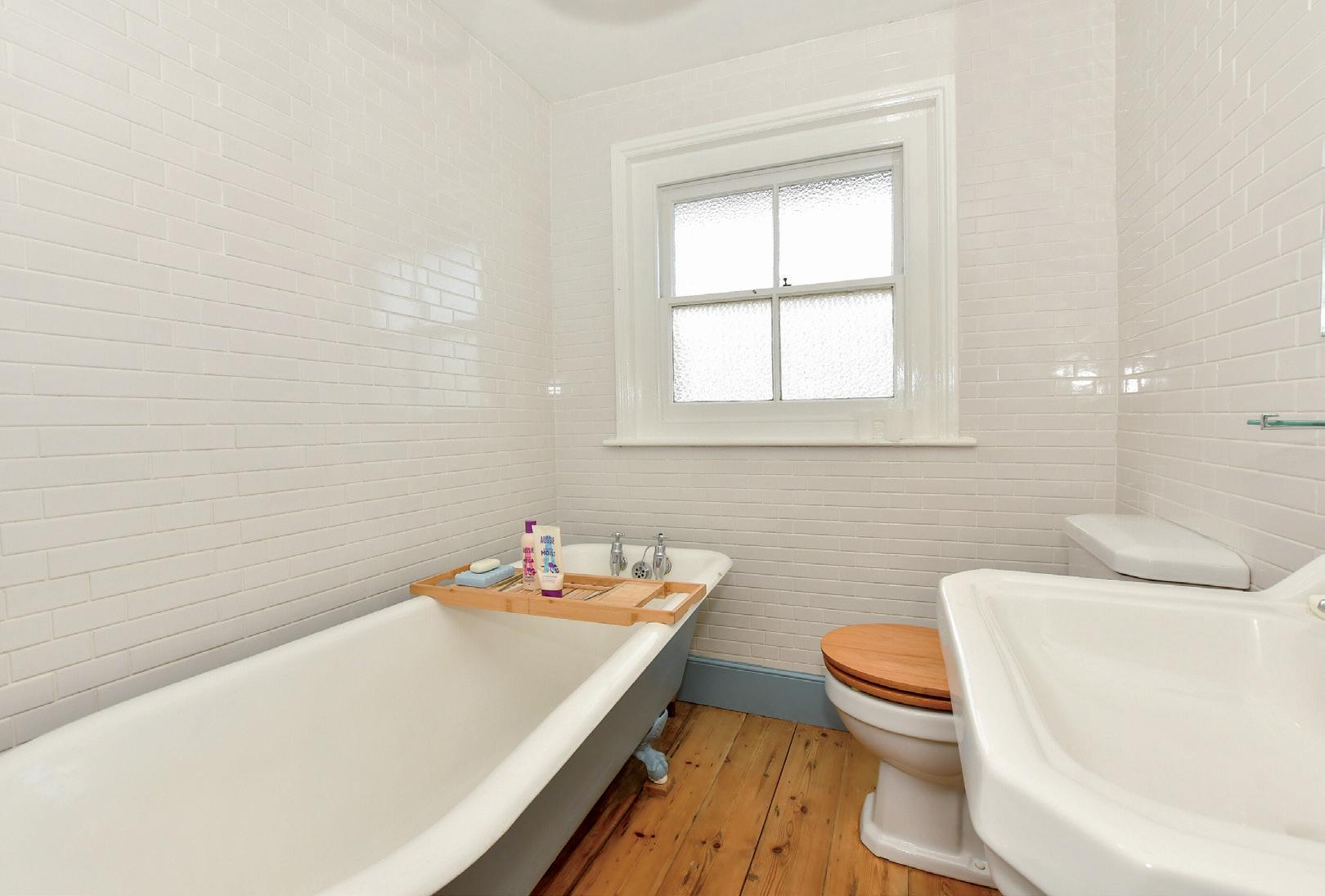 This room has a staircase to the newer part of the first floor and includes a single and a dual aspect double bedroom that both have deep built in cupboards and a bathroom. The historical parts of the first floor can also be accessed from here as well as from the oak staircase. There is a huge airing cupboard, a family bathroom with a stand-alone roll-top bath, a door to a double bedroom that leads through to a large double with dual aspect, a fitted cupboard, a fireplace as well as the original flooring and windows. A further double bedroom includes the original windows and exposed wall beams that form part of the original roof that continues into the attic.