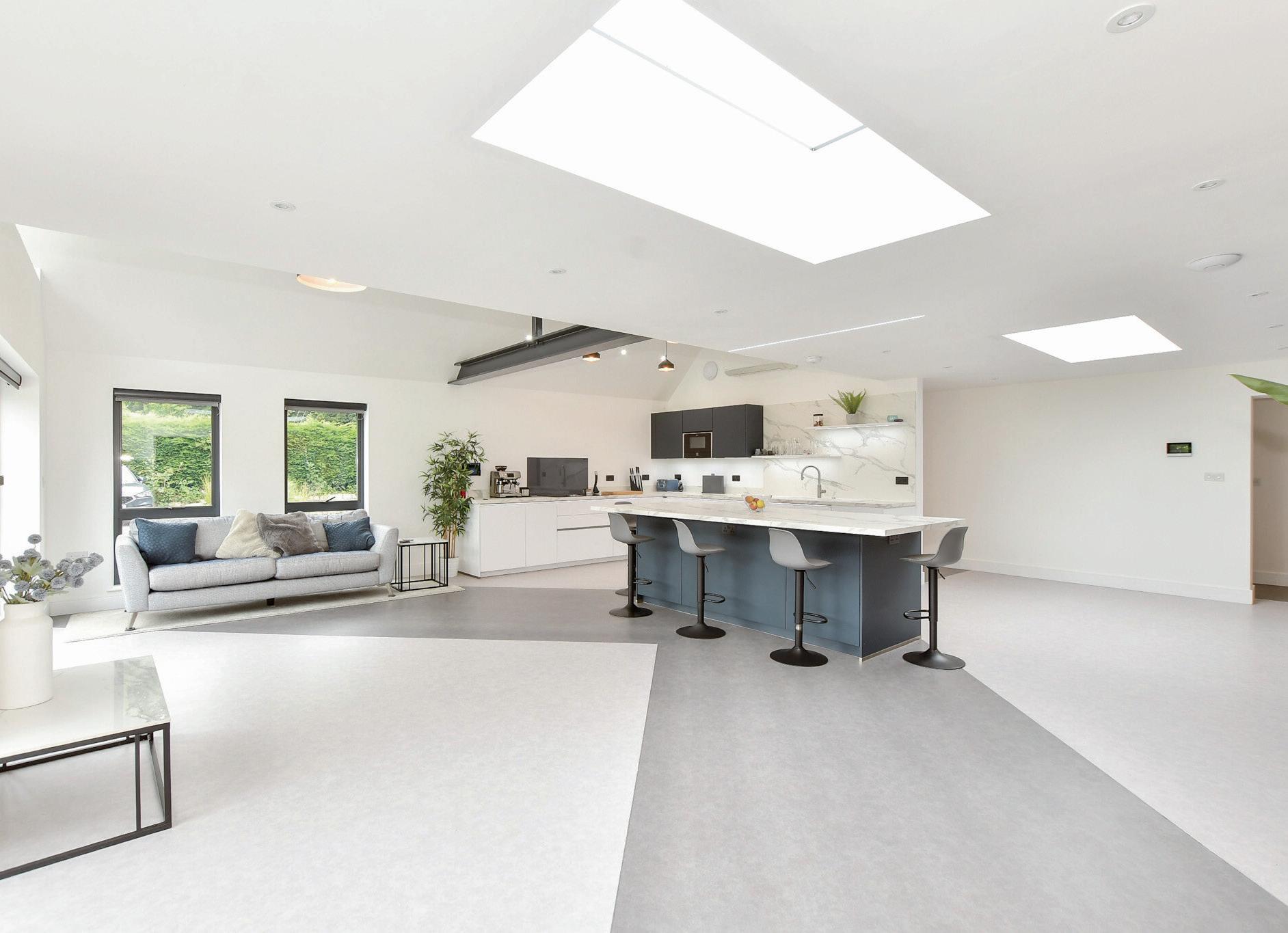 No expense has been spared and no detail overlooked in the creation of this stunning and technically advanced contemporary residence. It was originally a Wesleyan Mission Hall built in 1869 but has been extended and completely redesigned with underfloor heating throughout, as a unique property with leisure and entertainment in mind. The property is located in the charming hamlet of Ewell Minnis, on the edge of the Alkham Valley in the Kent Downs Area of Outstanding Natural Beauty and nestles in more than half an acre of grounds.