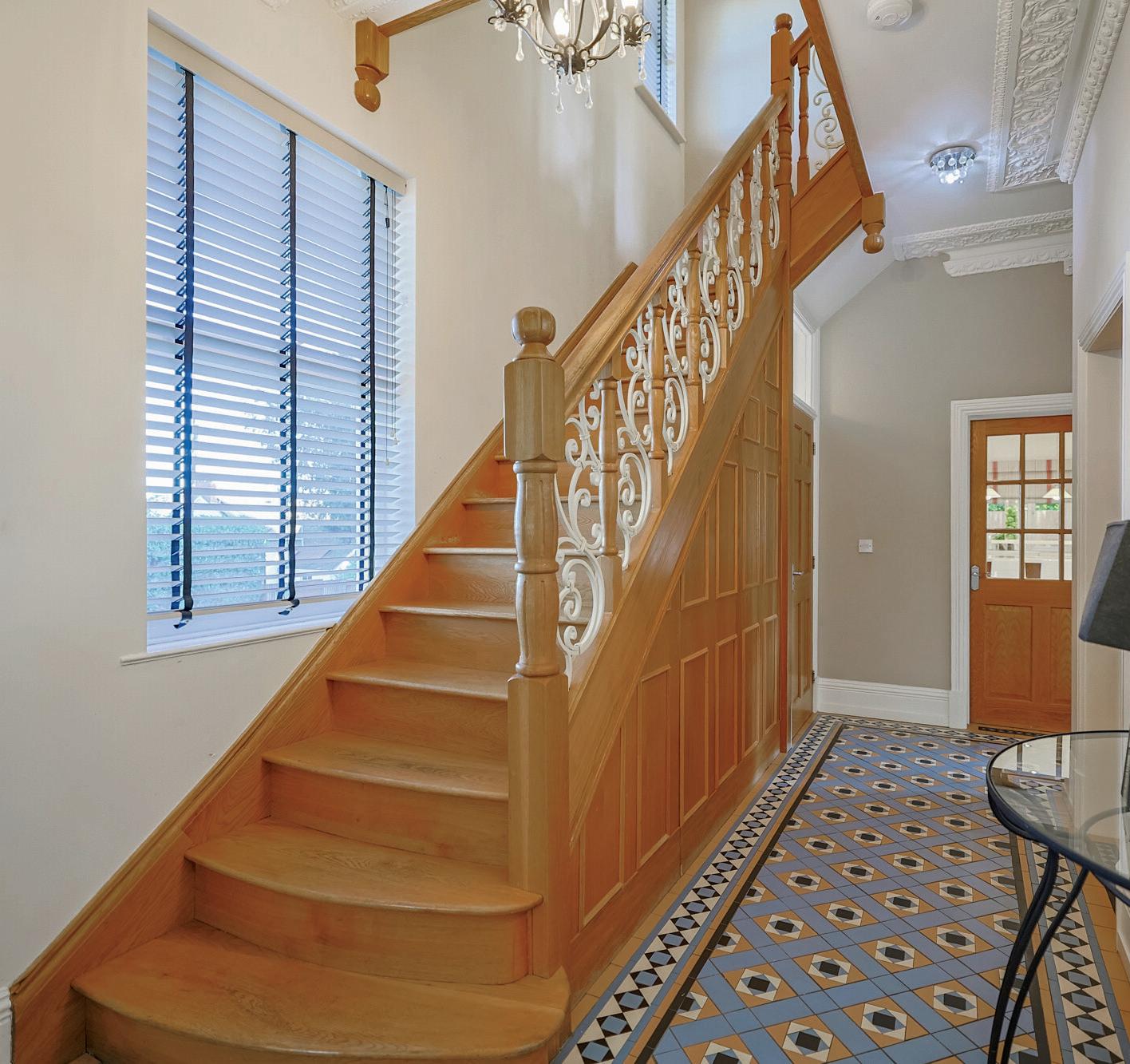 Immediately upon stepping inside, the traditional features capture your attention. High ceilings adorned with detailed coving and a ceiling rose complement the superb patterned tiled flooring with underfloor heating. A window to the front fills the hallway with natural light, while an oak stairway with useful understairs storage leads to the first floor. From this welcoming entrance you gain access to all the main living areas as well as a cloakroom.
