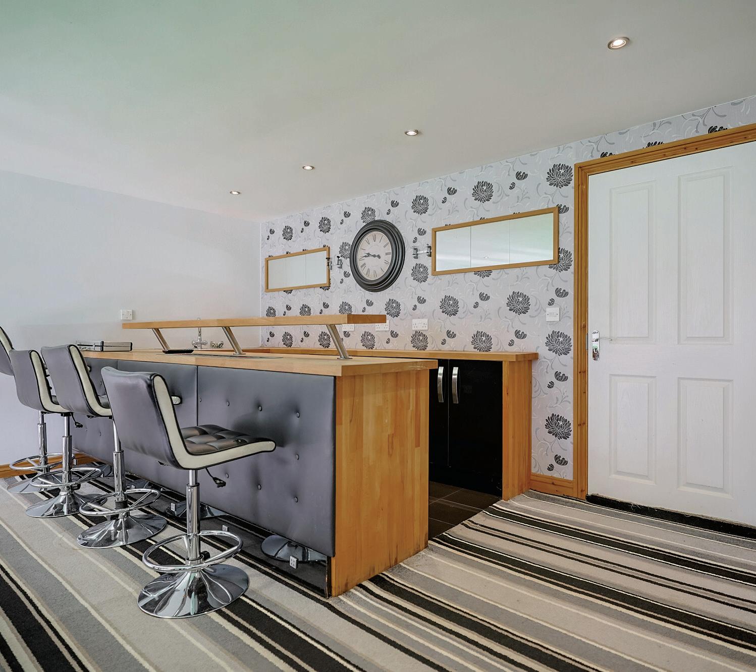 The Pines further benefits from a detached single garage with an up-and-over door, along with a superb recreation room. This versatile space features carpeted flooring, spot and central lighting, and heating. The stylish bar area includes storage units, oak tops, a stainless-steel sink with drainage, space for three under-counter appliances and seating for four bar stools—making it the perfect entertainment zone. The room offers integral access to the garage and includes a shower room furnished with a WC, wash basin, shower cubicle, extractor fan, heated towel rail, tiled flooring and partial tiled walls. Double patio doors open out to an enclosed decking area laid with AstroTurf, complete with external lighting, power and an undercover hot tub area.