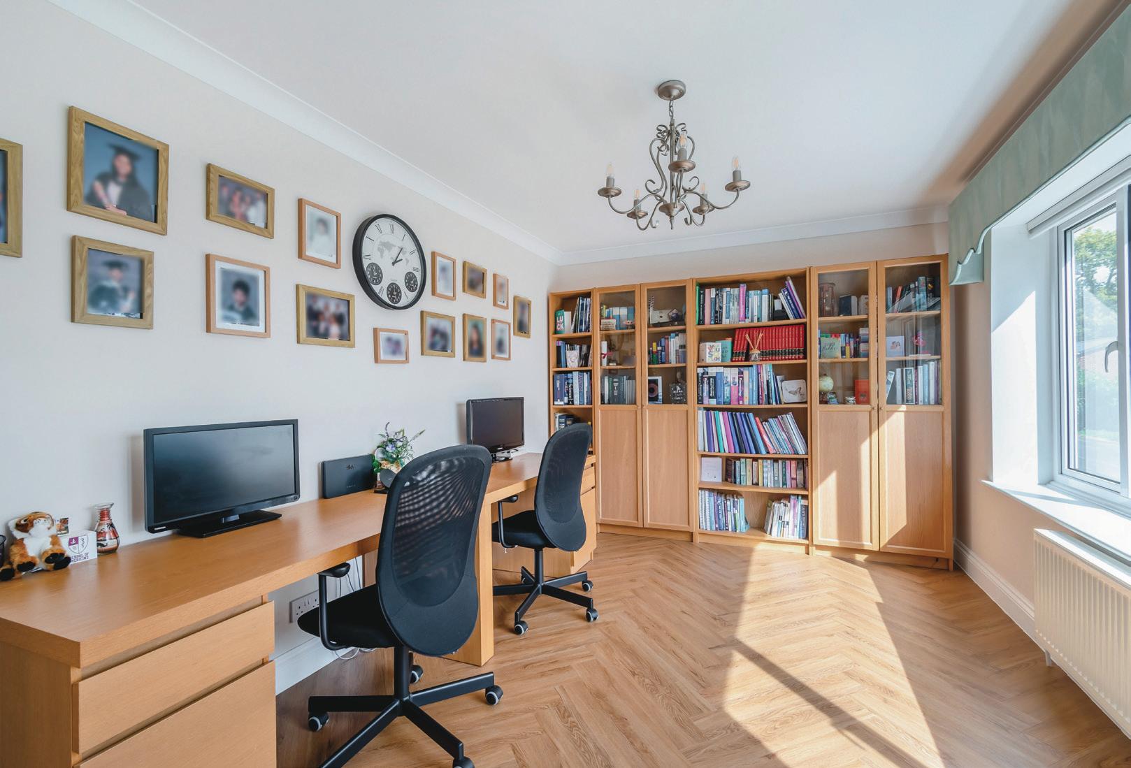 Originally a 1930s – 40s bungalow, the property was extended in the 1990s to create a spacious four-bedroom chalet-style home over two floors. “The light and layout were what really sold it to us,” the owners recall. “Large windows run across the front of the house, so you always get a view, and the flow between rooms makes it easy to live in and perfect for entertaining.” Since moving in ten years ago, the couple have modernised throughout. “We’ve added new bathrooms, landscaped the garden, and created a gym space above the detached double garage,” they explain. “We also converted one of the rooms into a cinema room, which has become a favourite with friends. The whole house now feels modern, bright and practical.”