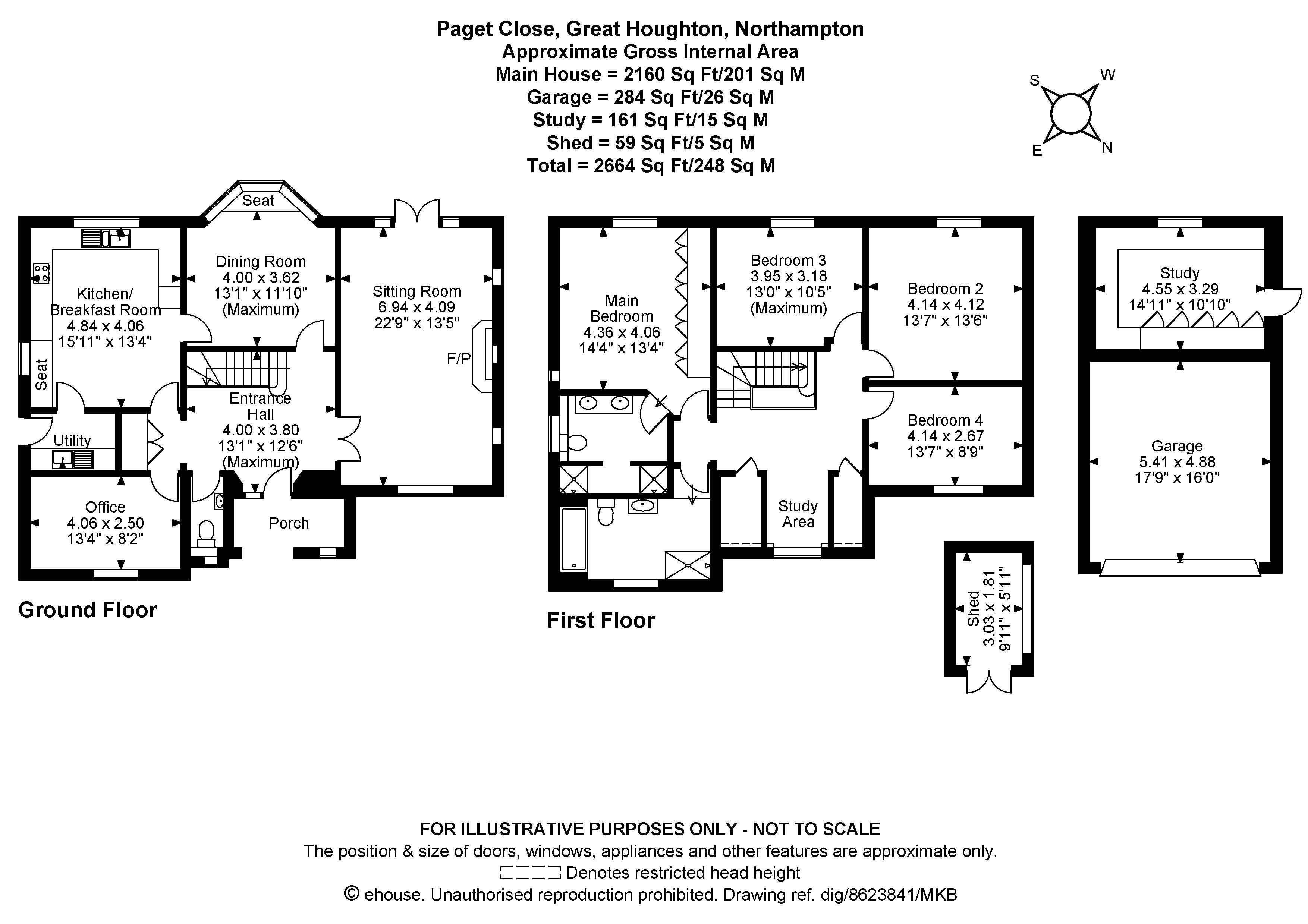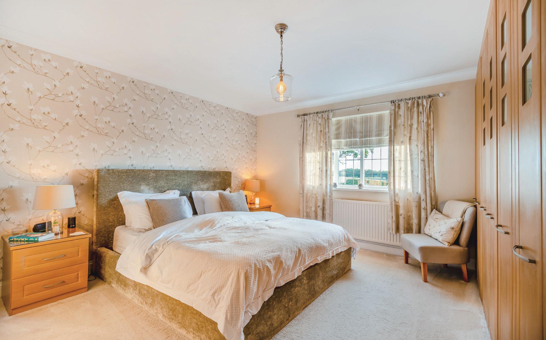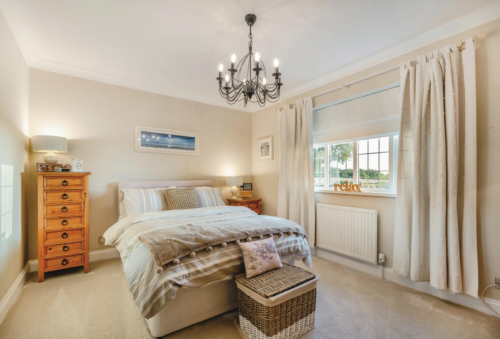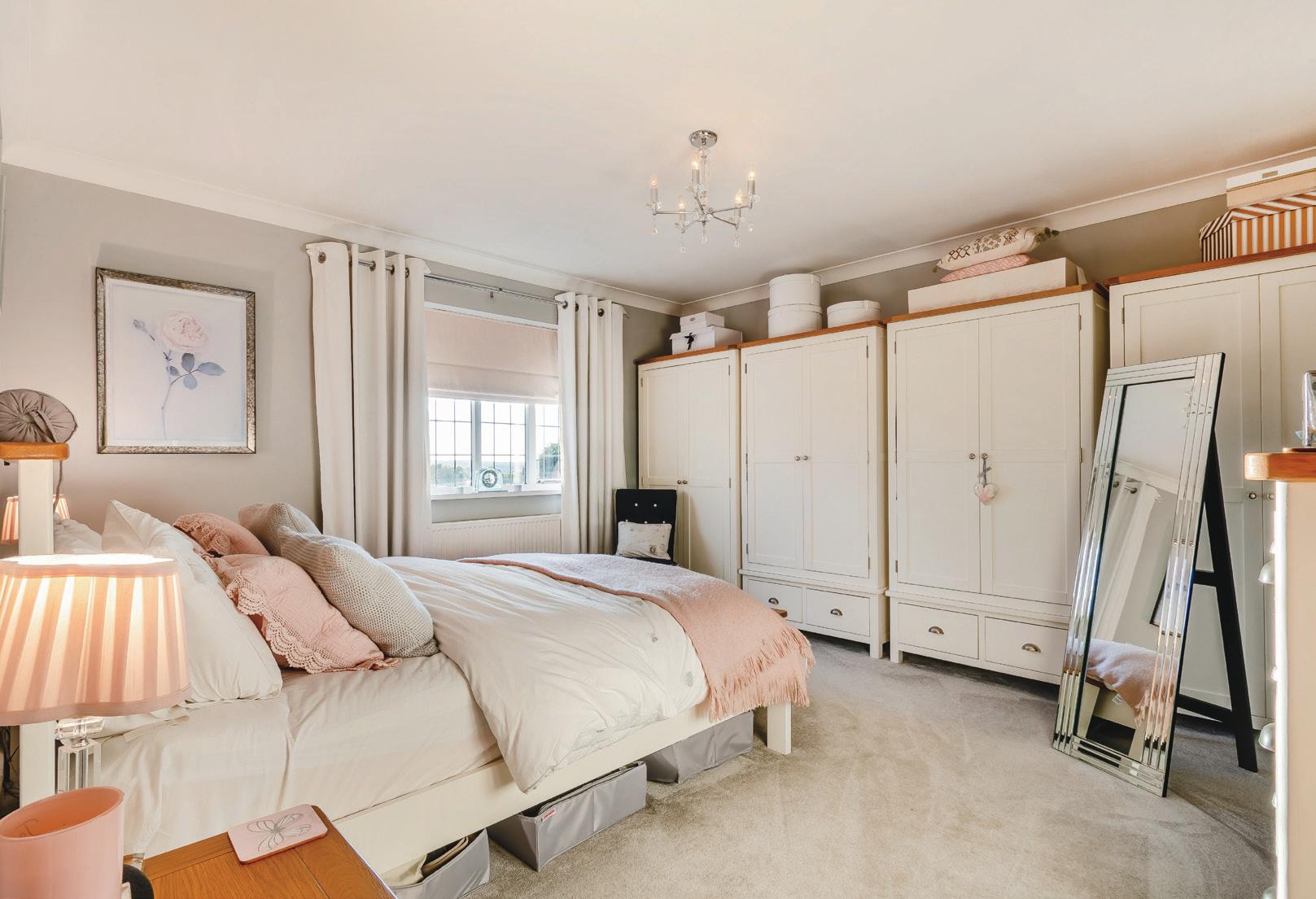 On the first floor is a large wide landing area with a study area and built in cupboards. The main bedroom is a lovely bright room overlooking the rear garden and with open views over the fields behind, a full range of fitted wardrobes and a luxurious en-suite shower room. There are a further three double bedrooms and a stunning family bathroom.