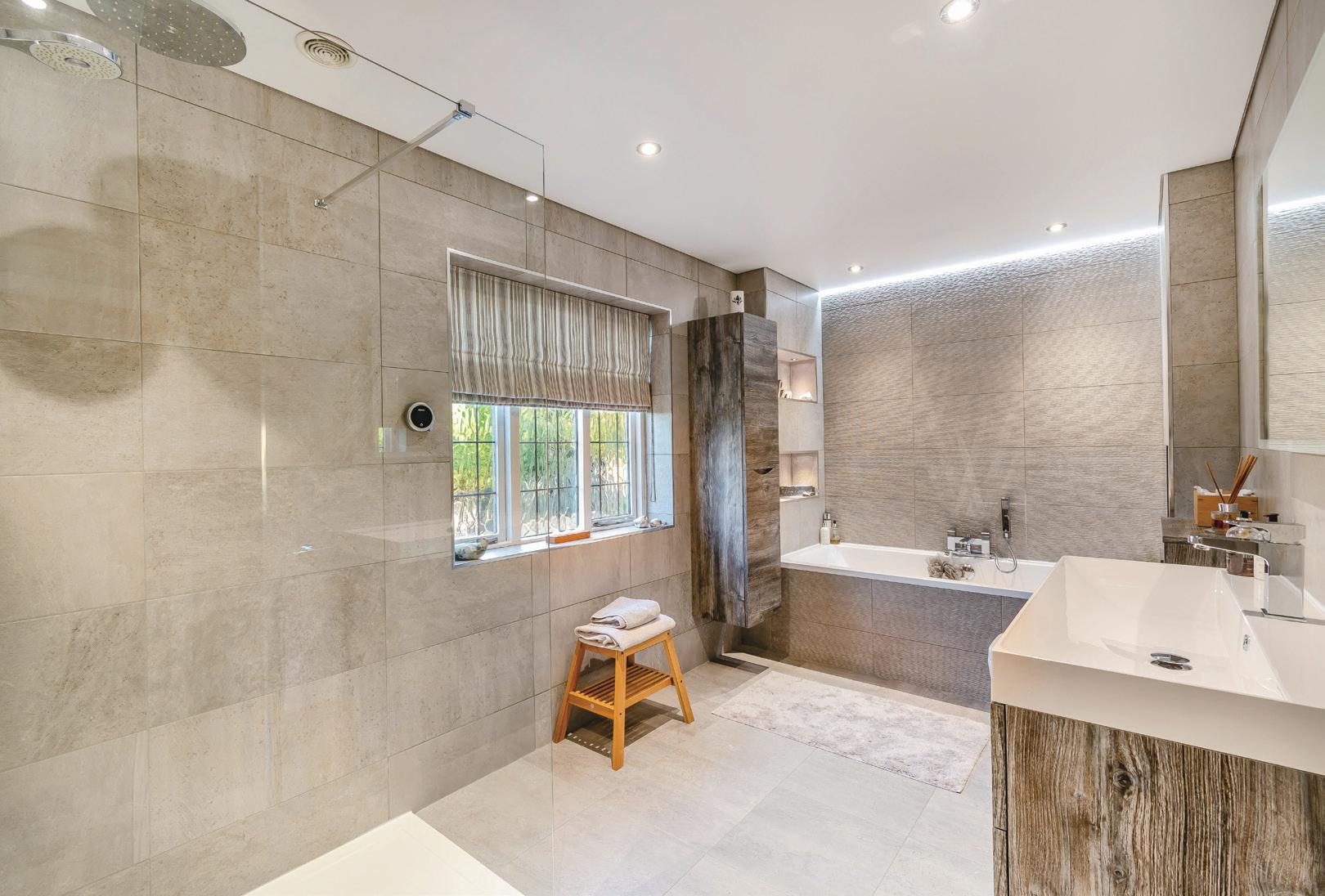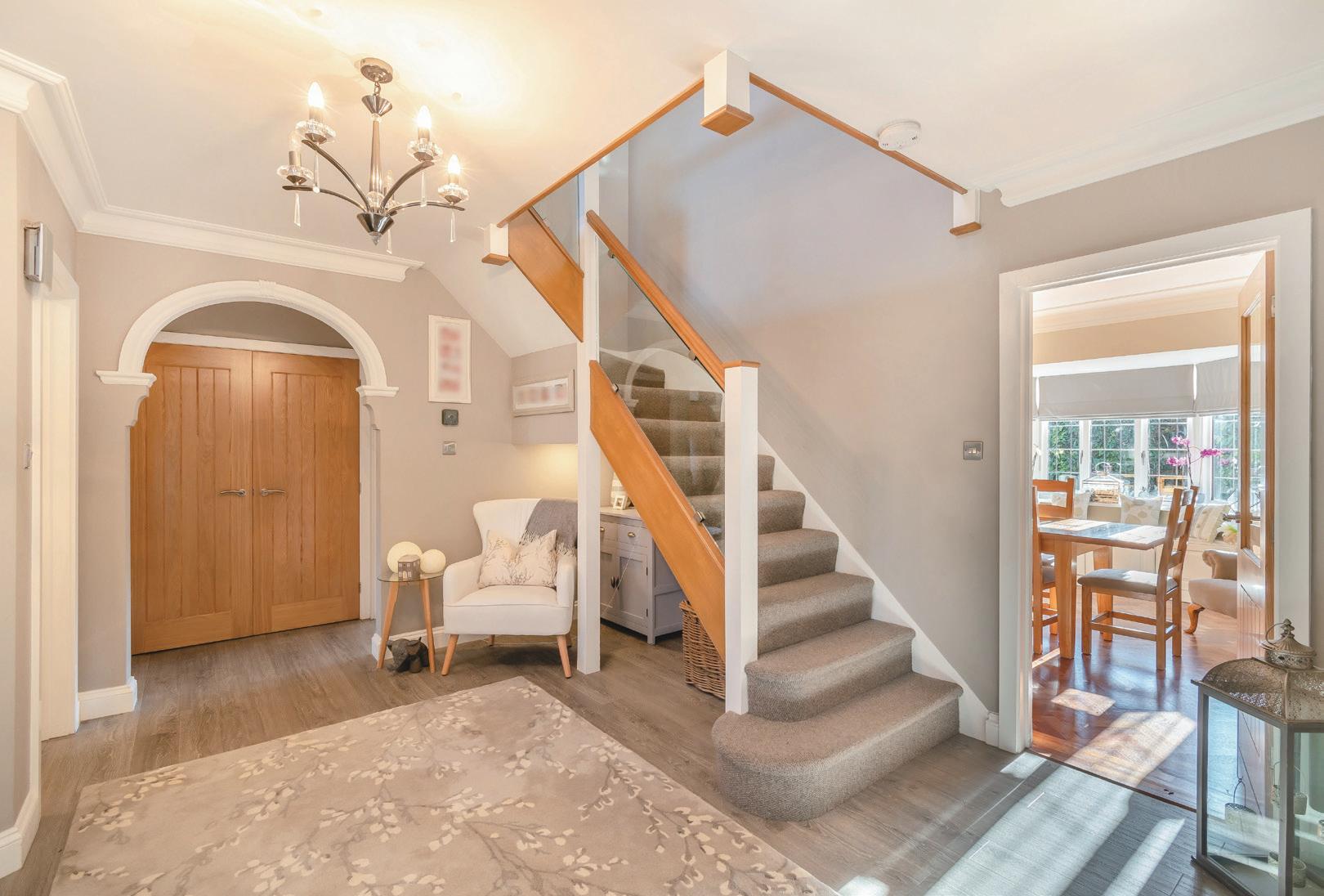 The house is a bright and light flooded, creating a positive ambience throughout and the owners have made many changes to achieve these pleasing surroundings. They built an extension to the rear of the house to provide additional space, replaced dark oak doors with light oak and installed a stunning glass staircase. The bathrooms were refurbished with the ensuite having a double shower and double handbasins, whilst the family bathroom has a built in television to aid a relaxing bath. Parquet flooring was laid in the lounge and Kardeen flooring in the hall.