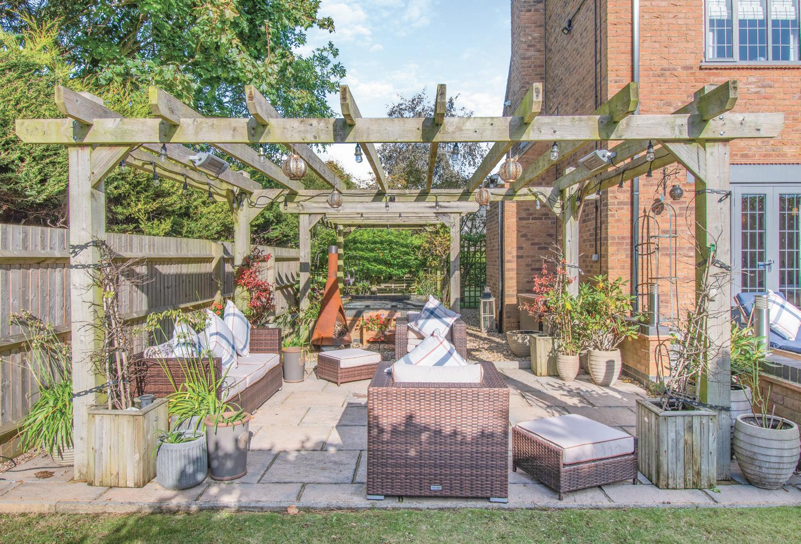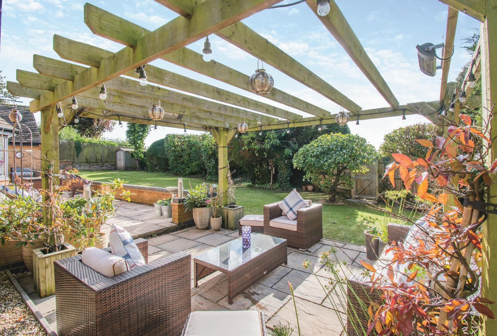 The southwest facing back garden is a sun trap, and the sunken pergola area is an ideal spot to spend a lazy sunny afternoon, or sip an evening gin and tonic as you watch the glorious colours of the setting sun, and after nightfall with the garden lights on, the atmosphere is quite magical. You might like to watch the koi swimming in the pond or leave the garden by the rear gate to walk into the stunning countryside. It is a much enjoyed garden and has been the setting for family parties and barbecues.