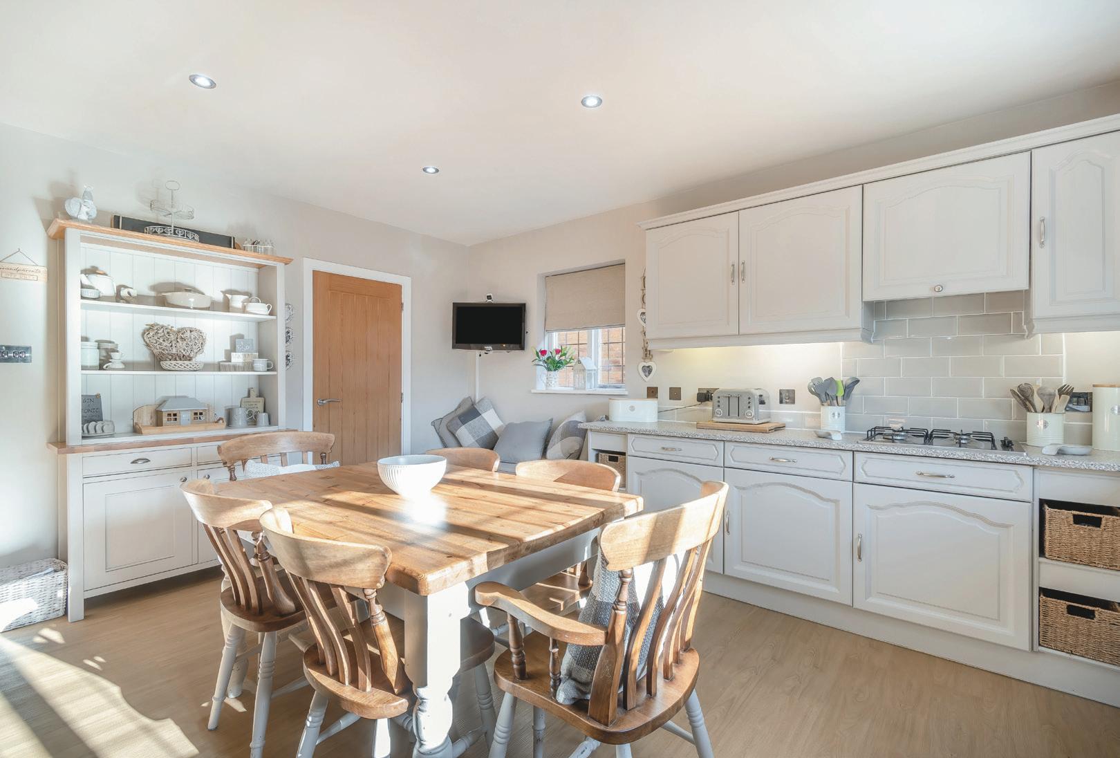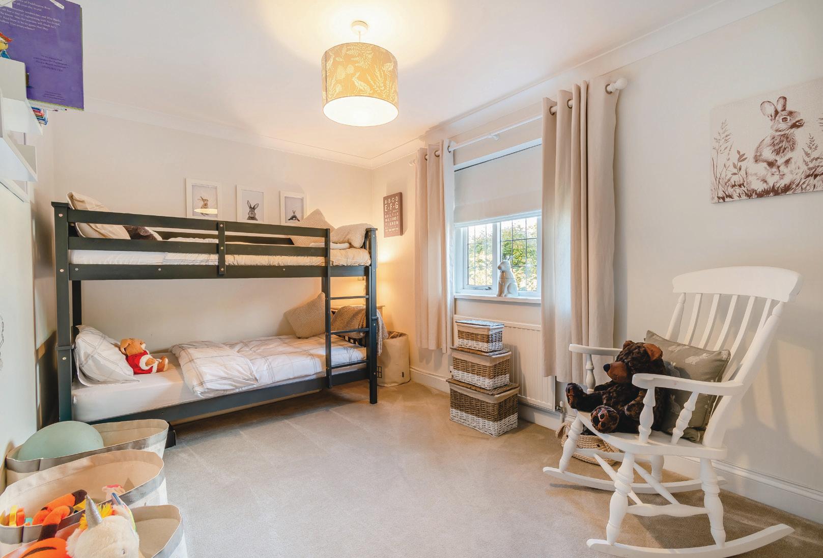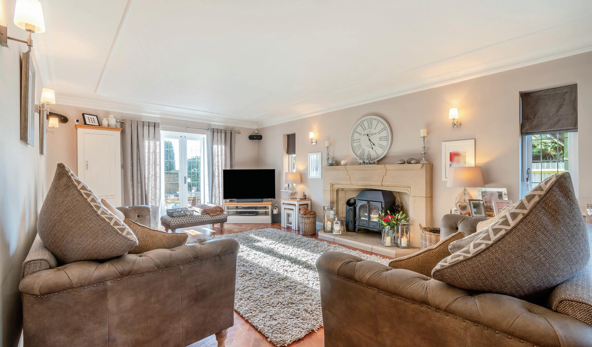 The family use and appreciate the entire house, but love entertaining in the sunny dining room, with its window seat and pretty view to the garden. The beautiful stone fireplace in the lounge houses a wood burner which makes the room a cosy winter refuge, and with the doors to the patio open you create an inside outside, summer charm. The chic kitchen is ideal for family meals and a further room is adaptable as an office or family room. There are three double bedrooms that all enjoy magnificent views across open fields to the rear, and a further double bedroom to the front. The owners say that an excellent point about this family home is that there is a very generous amount of storage space.