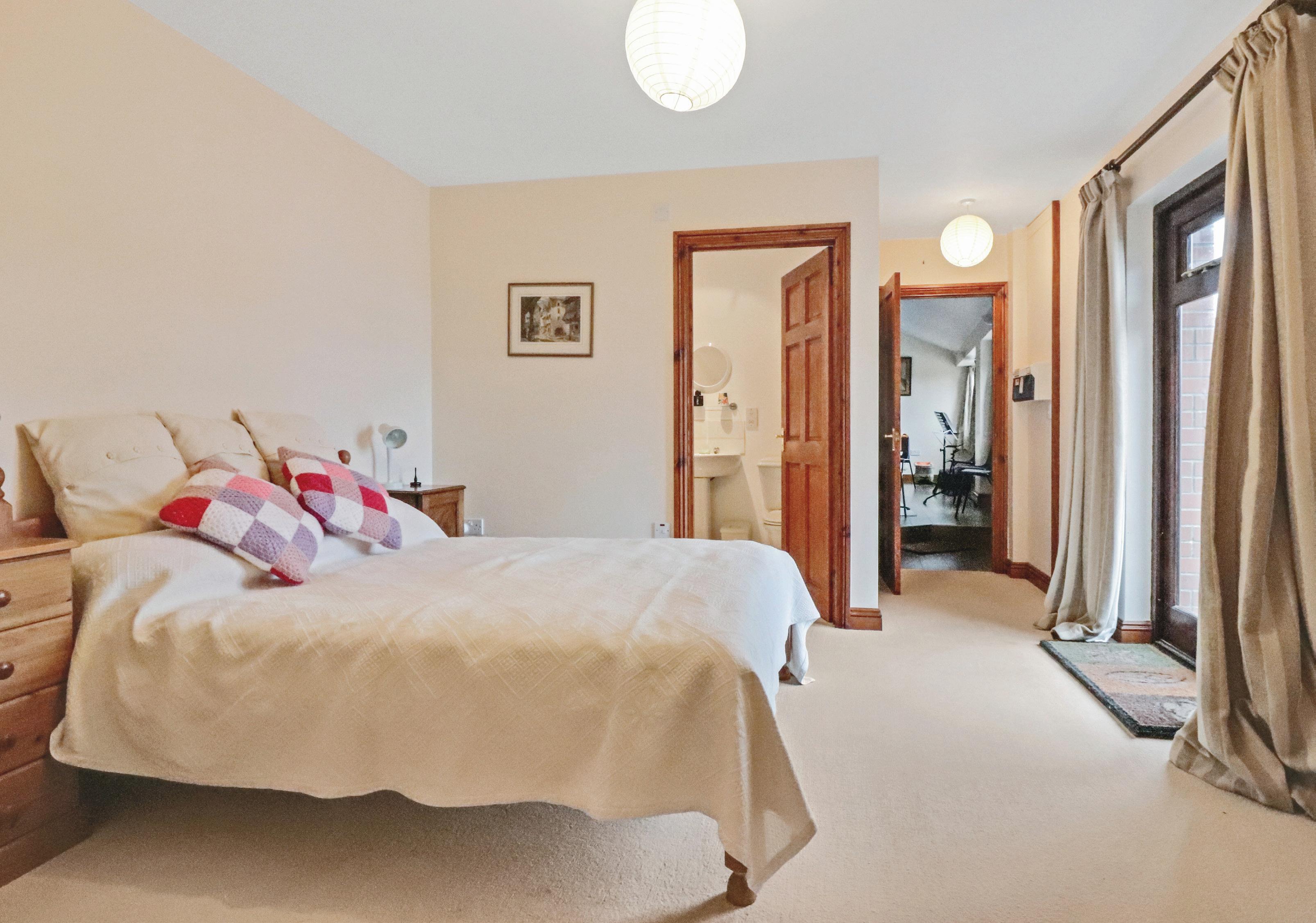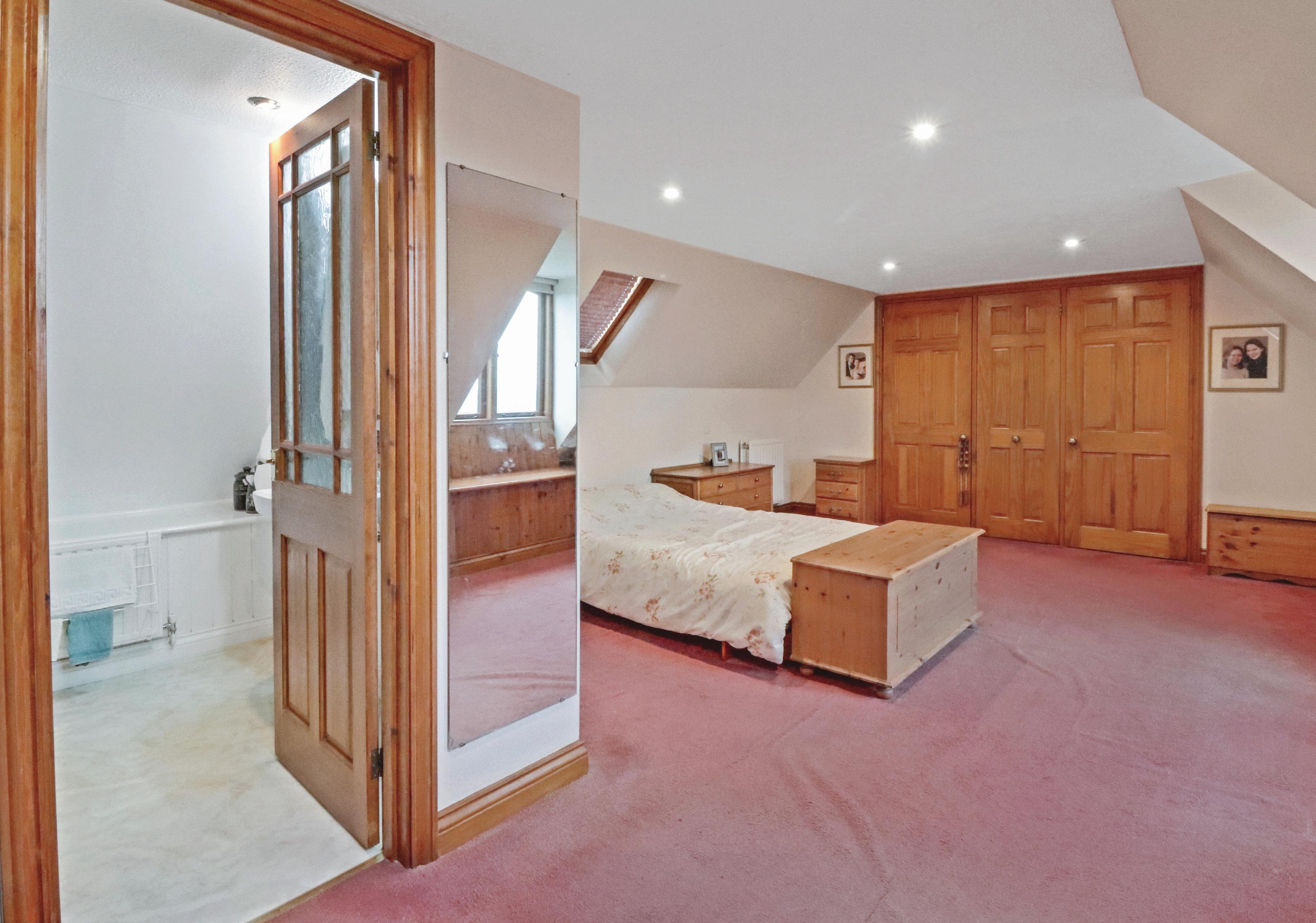 Once back in the reception hall there are two options to take - to go upstairs or continue the ground floor accommodation as at the end of the hall is a boot room and separate ground floor bathroom adjacent to which is a ground floor double bedroom/family room. This room links with yet another double room which has an en suite shower room and this part of the home lends itself to being an annexe as there are doors from not only here, but also from the 22’ music and hobbies room beyond, to the parking and driveway out front. This room has a run of work surface cupboards and sink on one wall,