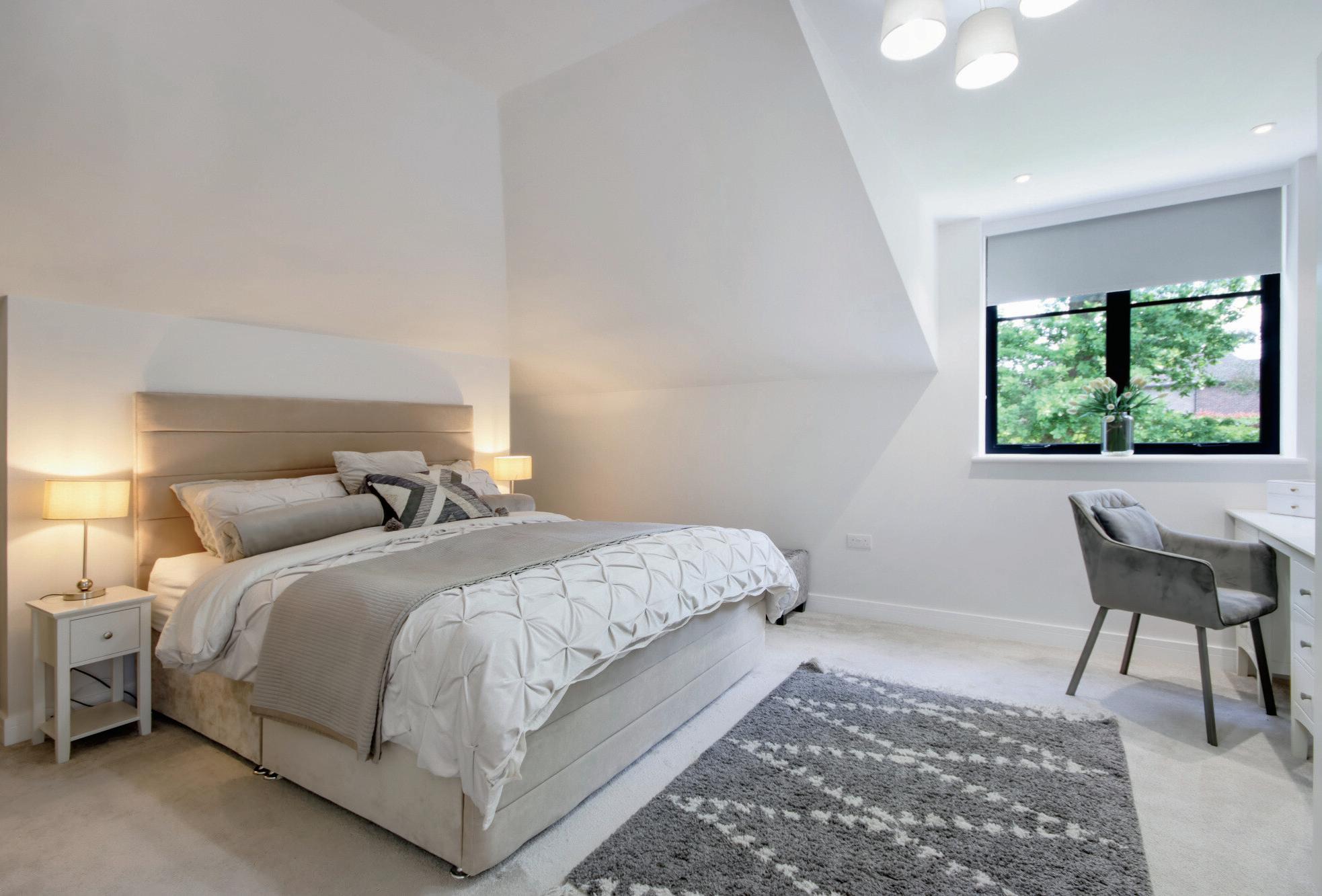 Bedrooms two and three are again spacious doubles, both large enough to accommodate freestanding wardrobes and drawers, as well as king sized beds. These rooms offer further storage and dressing areas utilising a void behind the beds/ headboards. A family bathroom completes the accommodation to the first floor, finished to the exacting high specification of the master en-suite to include a bath, walk-in shower, wall-hung toilet, sink, heated towel rail, and two Velux skylights/windows.