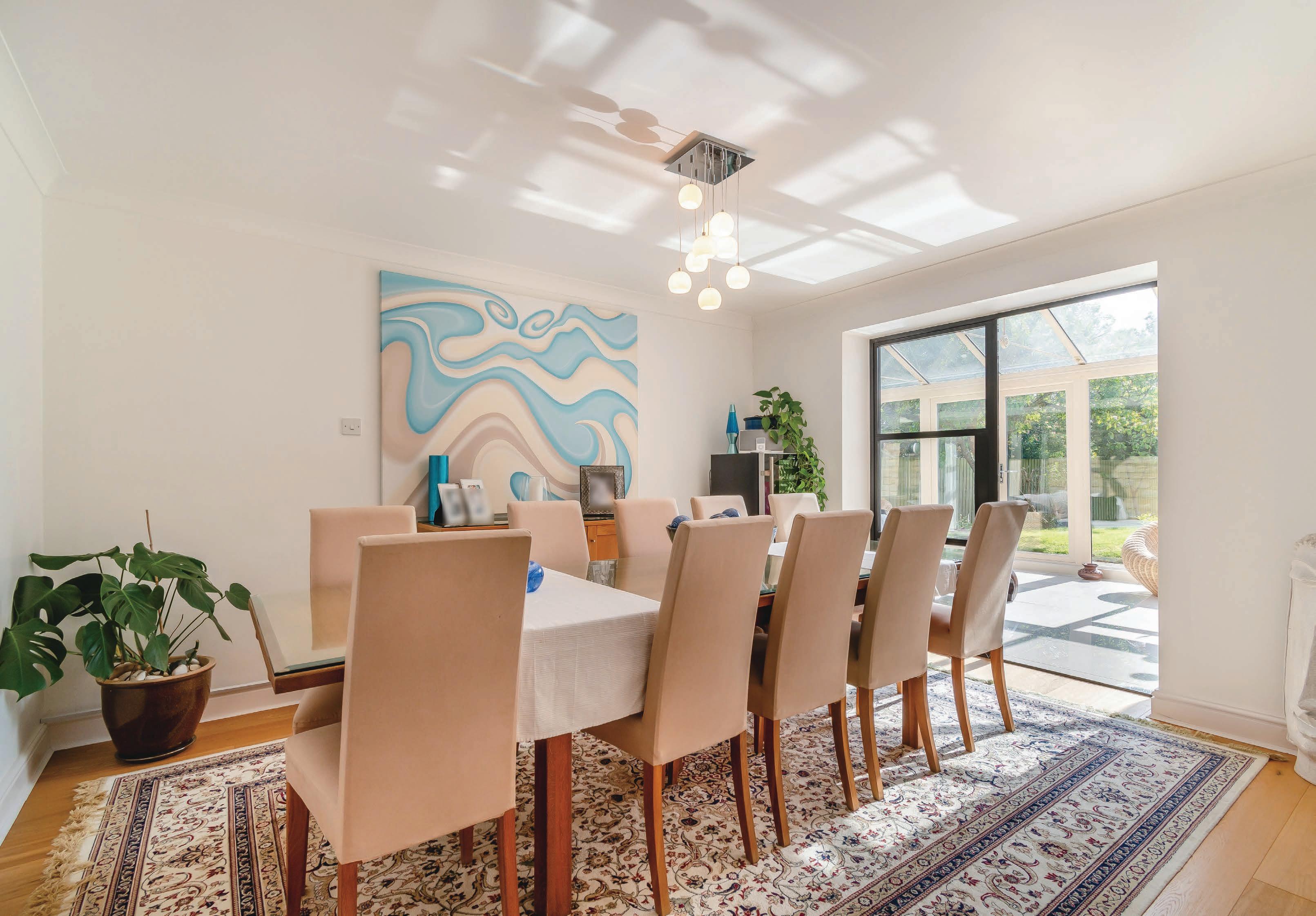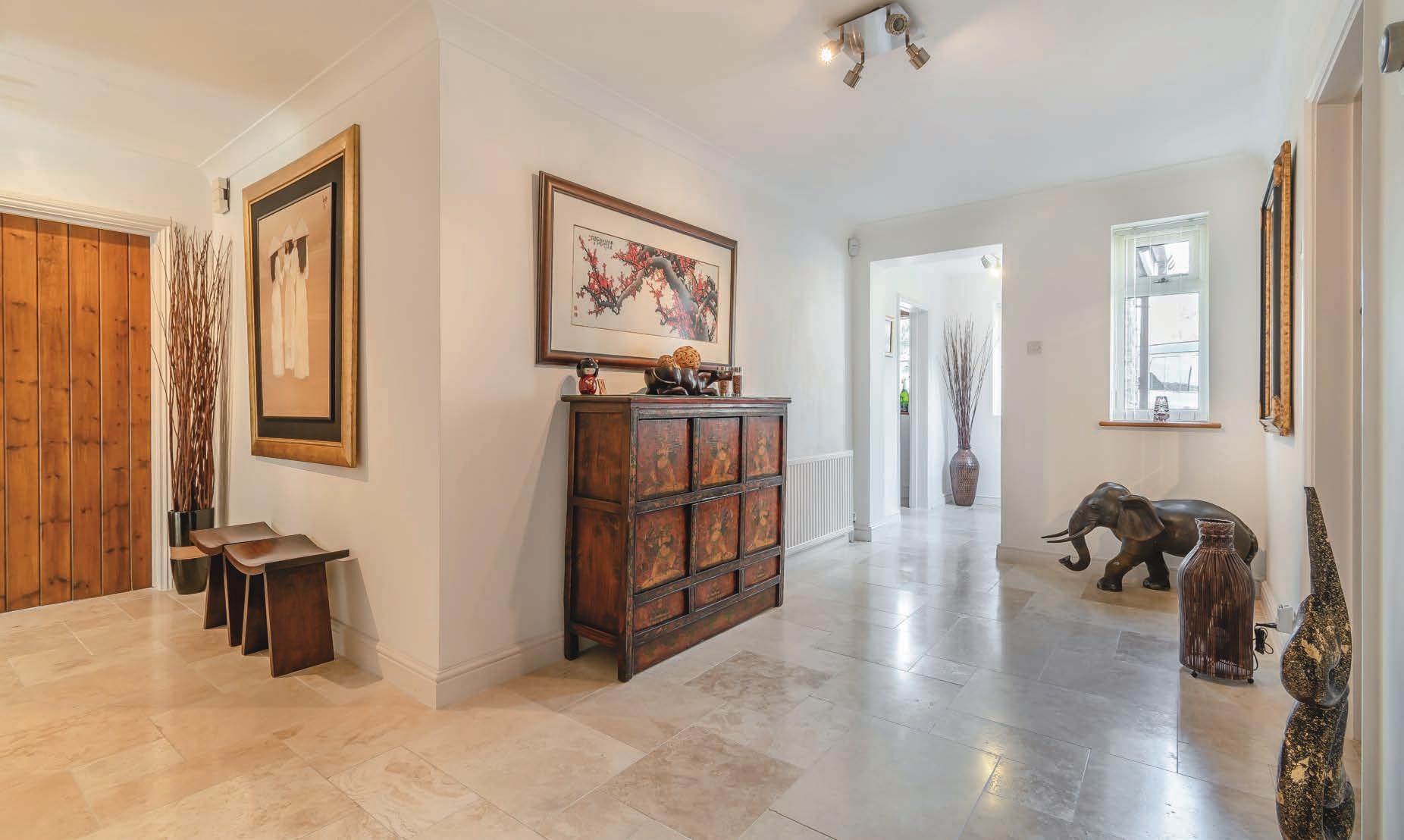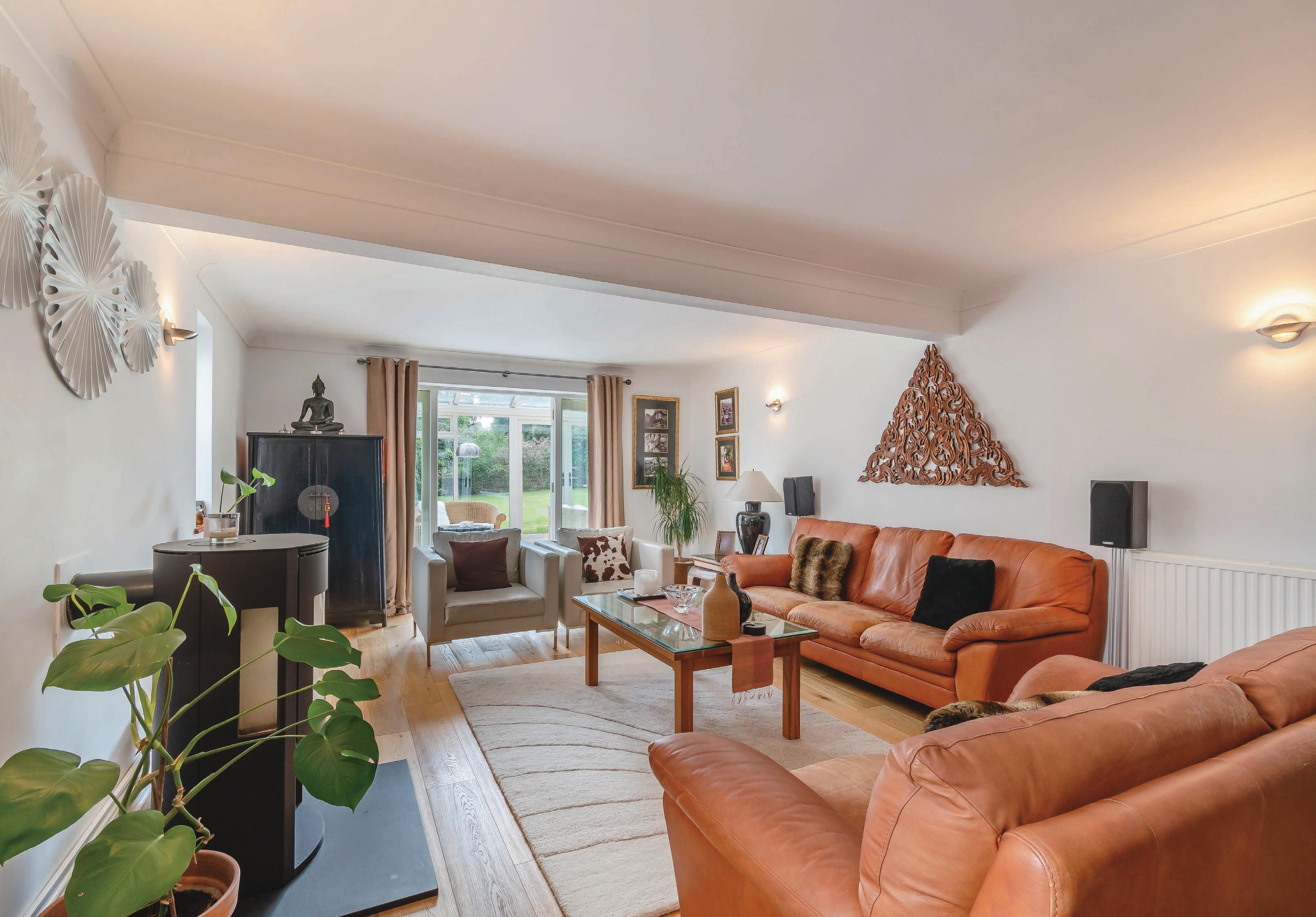 This handsome rear addition to the house provides a spacious and bright all yearround facility. It has two radiators, porcelain floor tiles, toughened and pitched selfcleaning glass roof (with UV protection), windows on 3 elevations with large double doors to the rear garden. The original integrated garage has been adapted to provide a really versatile second reception room with travertine floor tiles and underfloor heating. It could house a snooker table, but most would use it as a family or media room, as now.