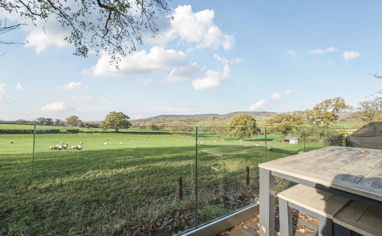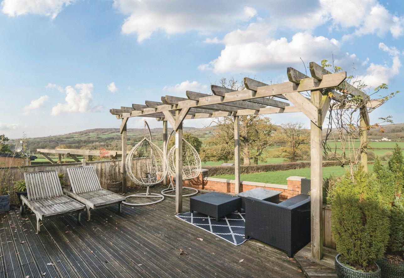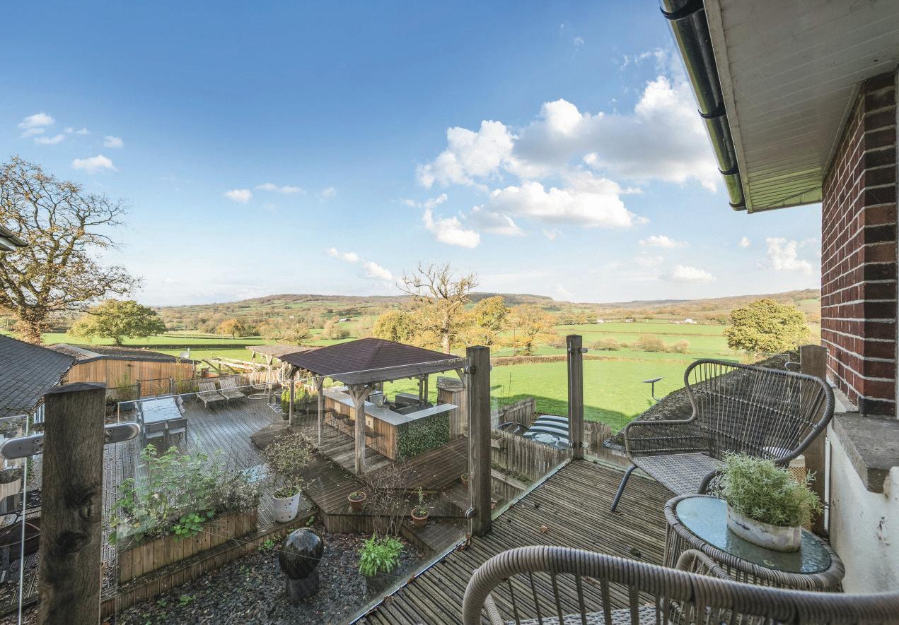 To the rear of the main house, where the views are at their best, a large decked terrace whilst an covered outdoor kitchen provides the perfect space for relaxing or entertaining, with doors opening directly from the house to create a seamless indoor–outdoor flow. Hidden discreetly beneath the decking lies a charming nod to the past — a World War II Anderson air raid shelter, now offering useful additional storage. Additional guest parking for The Studio can be found at the top of the garden.
