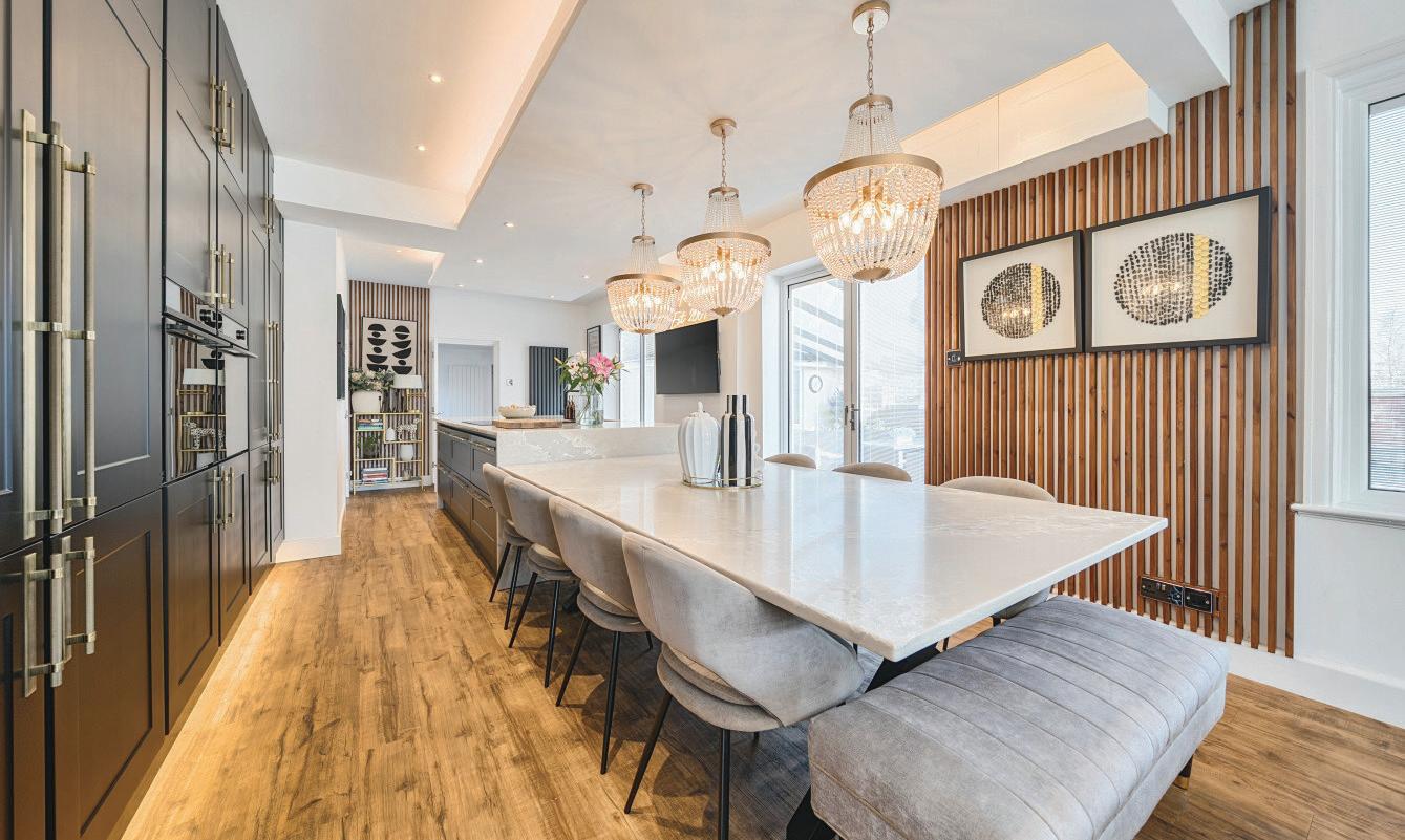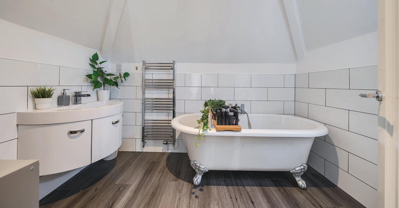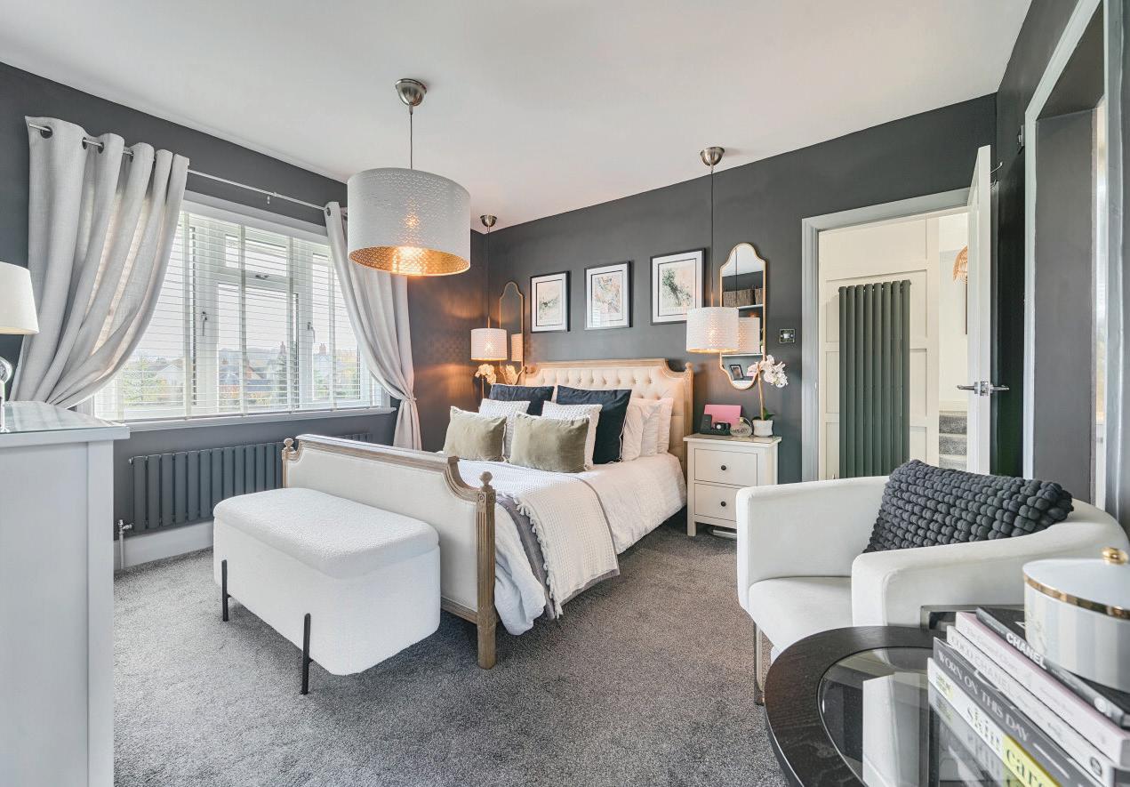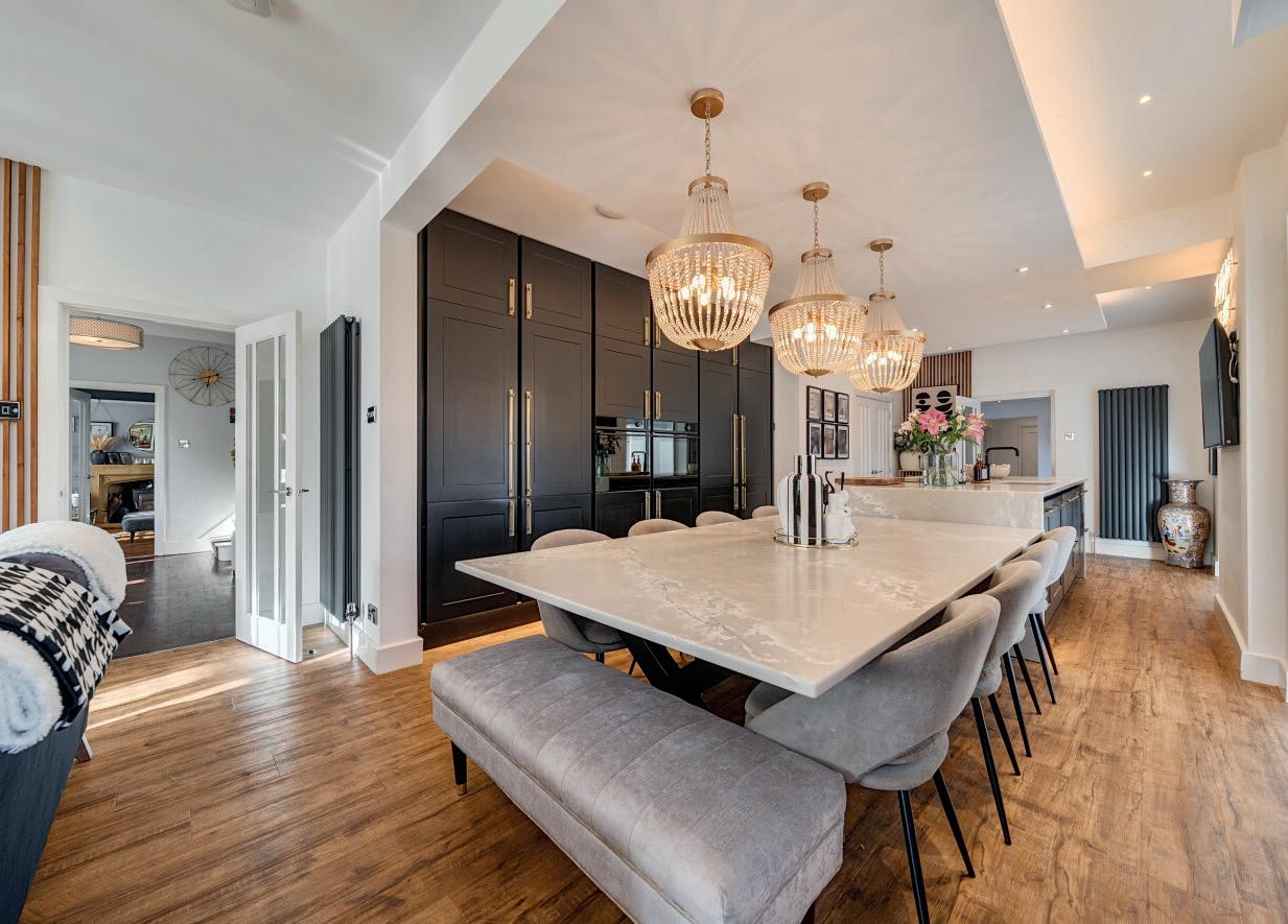Beyond the kitchen, doors open directly onto the rear gardens, while the adjoining utility room could easily be adapted into a second kitchen to serve Bedroom 6, which benefits from an en-suite shower room and views over the garden. A nearby snug could also be used as a sitting room, creating a selfcontained ground-floor living space, ideal for anyone requiring an independent area within the home.