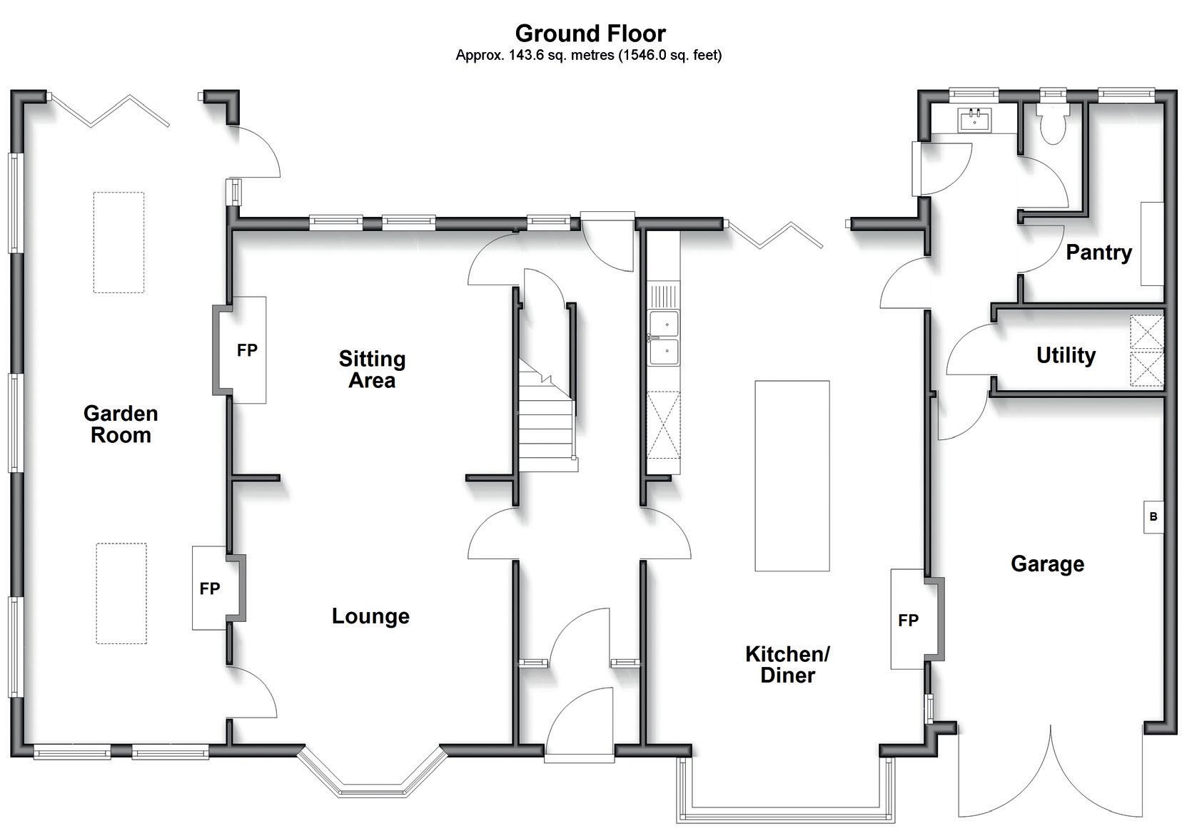 There is a large and elegant open plan lounge/sitting area with a bay window, a charming stone surround fireplace with a log burner that makes an excellent focal point and a delightful stained glass door to the light and bright garden room. This is triple aspect with additional skylights and features the original mellow brick external wall, a woodburner and high stained glass windows, bi-fold doors to the rear terrace and Pugin style floor tiles as well as direct access to the rear veranda.