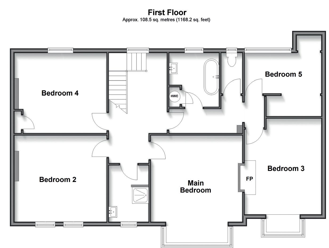 Main Bedroom 16’4 (4.98m) narrowing to 12’10 (3.91m) x 13’7 (4.14m)