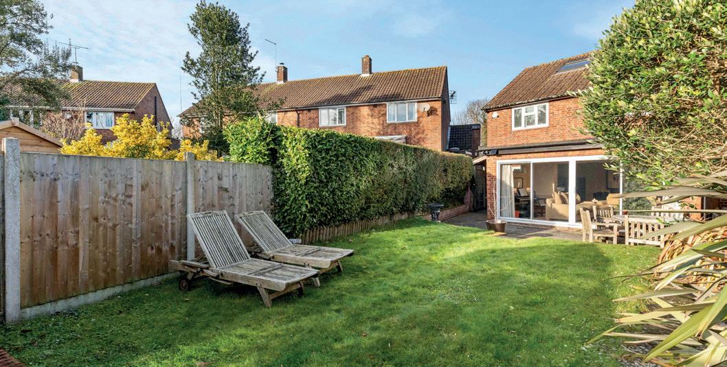 The front of this house has a smart and modern feel, with the kitchen extension also making room for a porch by the front door. The driveway for No.38 has space for at least 3 cars and has low maintenance planting at the side, and some privacy hedging at the front. There are solar lights embedded at the front and to the side of the house. There is a neat ‘lean to’ for undercover bin and log storage by the back door as well as hot and cold outside water taps. This area also leads to the back garden where you will find a good sized patio area and lawn. There is a garden shed, and small seating area to the rear. This is a low maintenance garden which would be considered an extra room when the large patio doors are open in the summer!