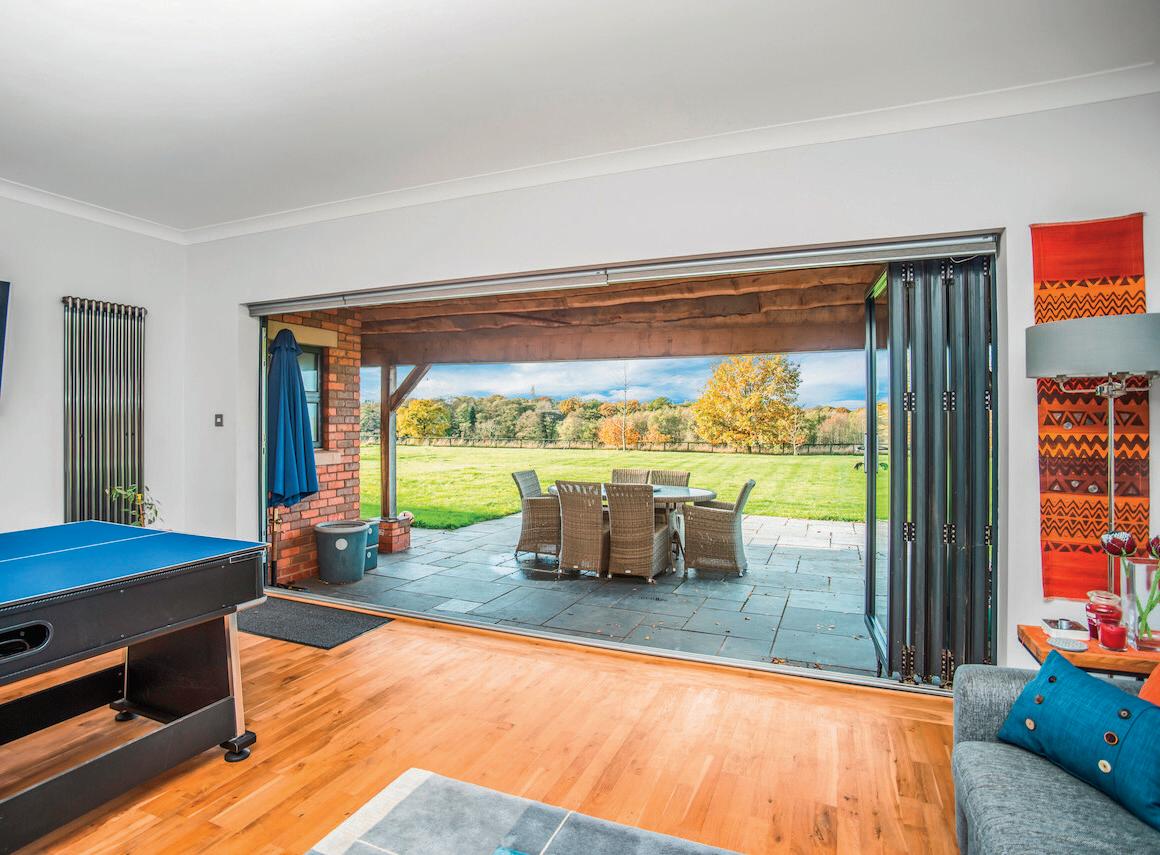 Outside, the generous grounds serve as an extension of the indoor living accommodation for the whole family. “It has been very rewarding watching the things we have planted grow, and eating fresh produce and eggs from our vegetable beds and chickens,” the owners say. “We have nearly 4 acres of our own land for the children to explore, as well as access to the adjacent field where our boys have loved running and jumping into haybales or riding around on their motorbikes.”