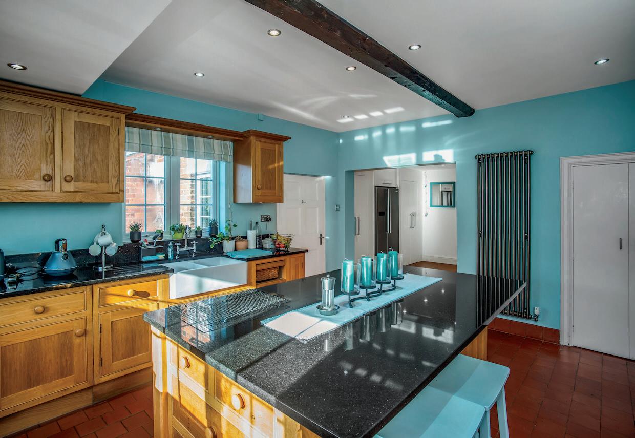 Since moving in, the owners have made various improvements to the prope rty to create a home which is ideal for everyday life and entertaining alike. “We have updated the inner workings of the house to modern standards,” they say, “installing a sophisticated water pump system which allows us to have the showers in all 7 bathrooms running at the same time with no drop in water pressure or temperature. We also converted the old barn adjacent to the house into a granny annexe for my mother in law and extended the utility room and family room. The latter is now my favourite part of the house, with huge bi -fold doors opening out to the garden to bring the outdoors in, and plenty of space for entertaining. With these extensions we took the opportunity to level out the roofline to the rear, so that the older and newer parts of the house sit together more coherently. The open plan kitchen diner is ideal for dinner parties too, enabling everyone to be in the same space at the same time.”