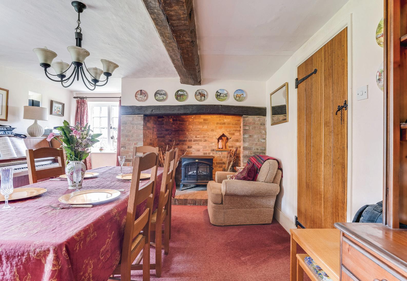 As you step through the front door, you are welcomed into a reception hall that sets the tone for the rest of the home. The captivating living room is the heart of the home, featuring a striking inglenook fireplace that adds both warmth and character to the space. The formal dining room, with its charming dual-aspect windows, provides a bright and airy setting for entertaining, with a further inglenook fireplace. The kitchen, complete with an Aga and a spacious pantry, offers both functionality and charm, with a door leading to the grounds and an additional passage through to the hallway and main staircase.