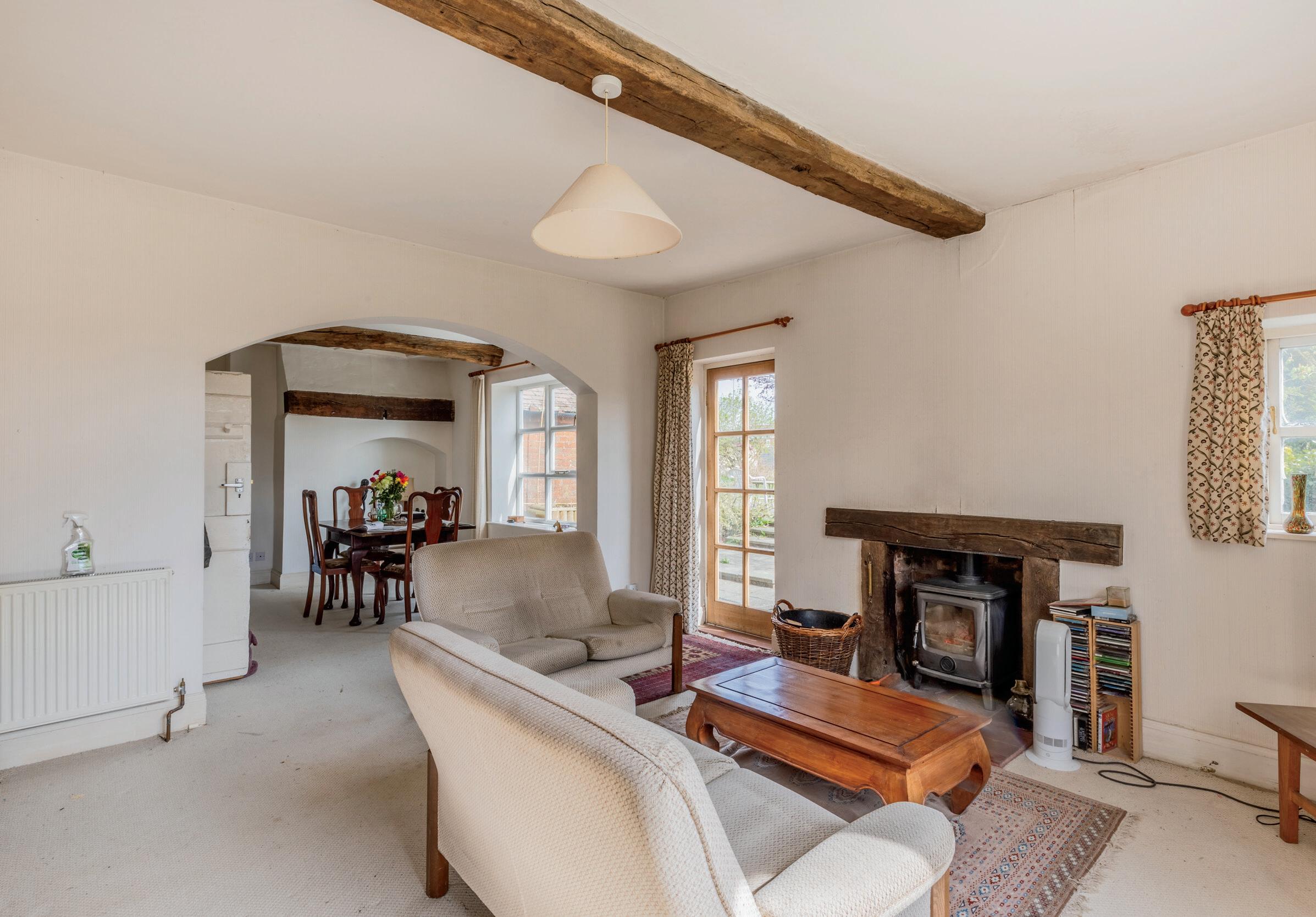 One of the greatest joys of living here has been the cosy and inviting atmosphere of the living room. With its log burner and a breathtaking view of the surrounding garden, it has become a cherished retreat, especially during the colder months. The house itself is full of character, boasting original wooden beams and stunning inglenook fireplaces that add to its charm and warmth.