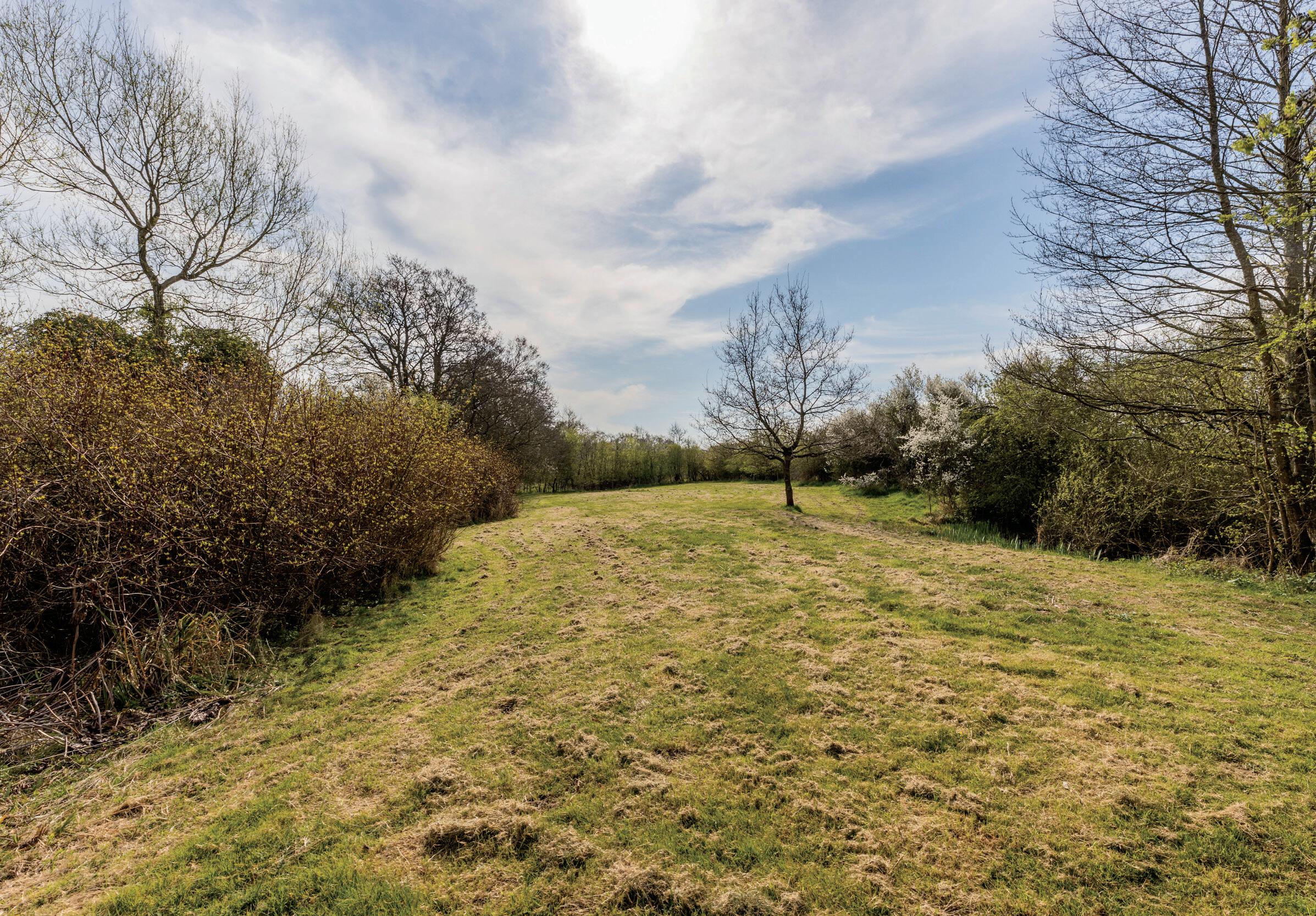 Across Ash Lane, a further parcel of land extends the estate’s appeal. This more natural, overgrown area is steeped in rustic charm, featuring the atmospheric remains of a historic cart-hovel, quietly echoing the rich agricultural heritage of the property.