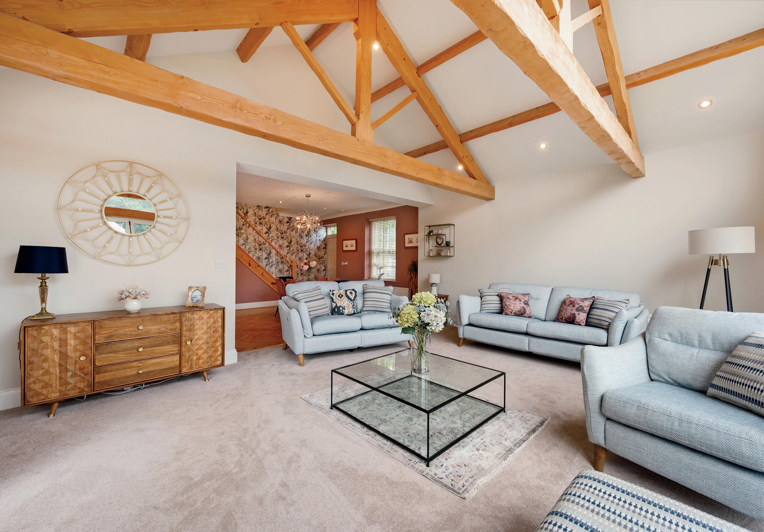A significant feature of this property is the substantial double garage, offering not only parking space but also a versatile room above. This additional space can be used as a gym or games room, making it a fantastic asset for families seeking extra recreational or storage space electric gated access affords privacy and security to the garden and home.