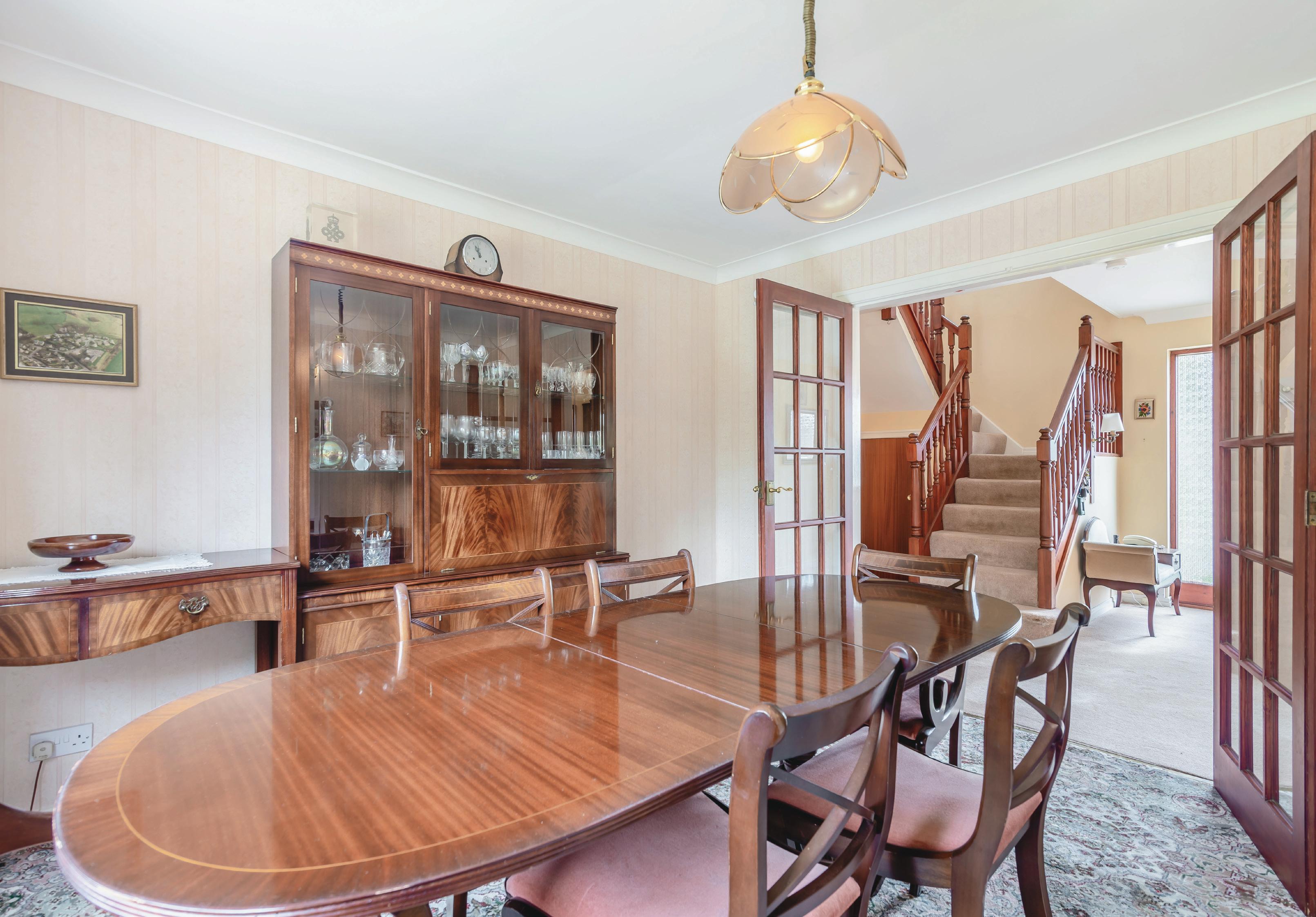 A dining room has French doors from the hallway; a window overlooking the garden and is positioned next to the kitchen offering the potential restructure resulting in an impressive open plan living kitchen.
