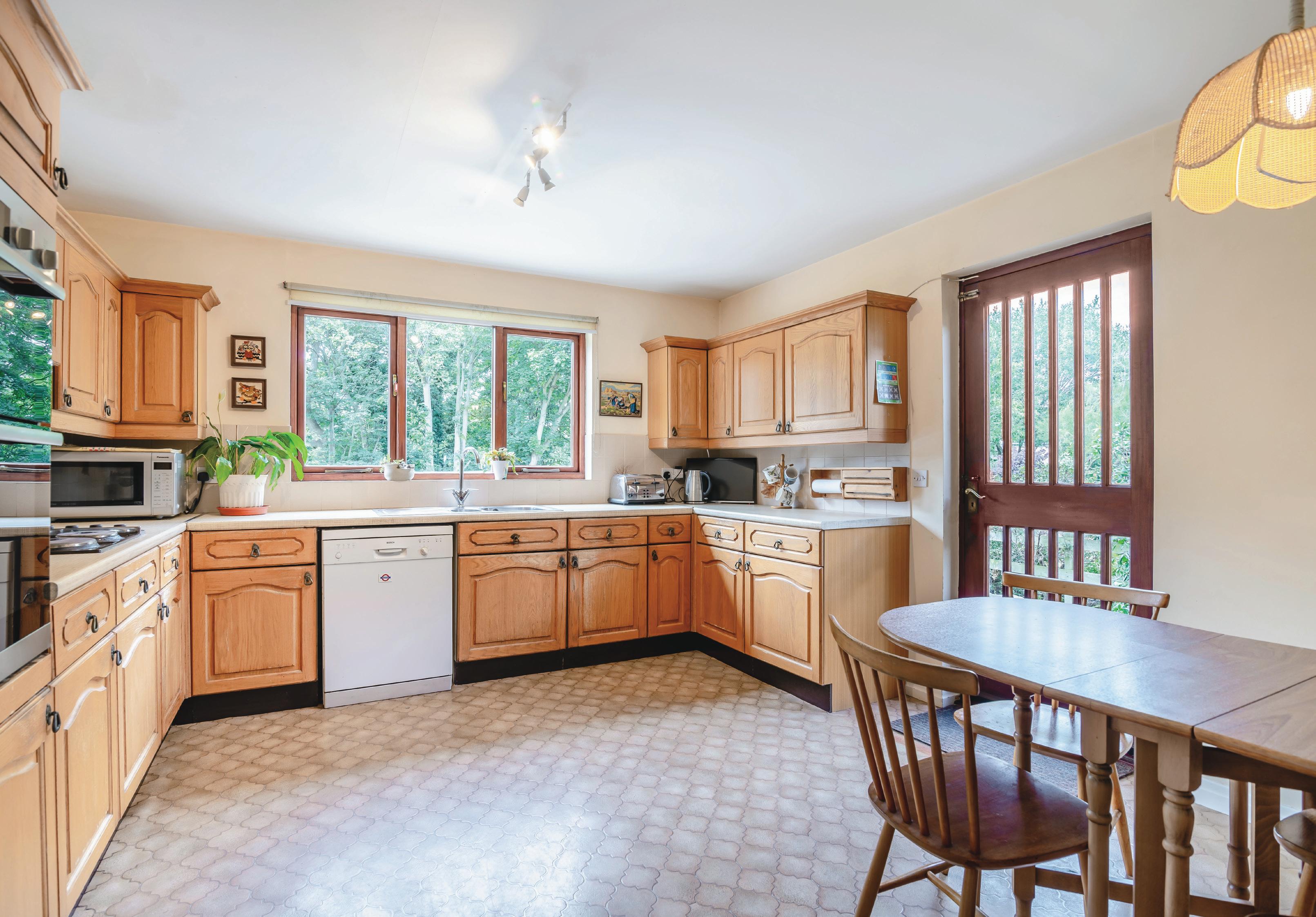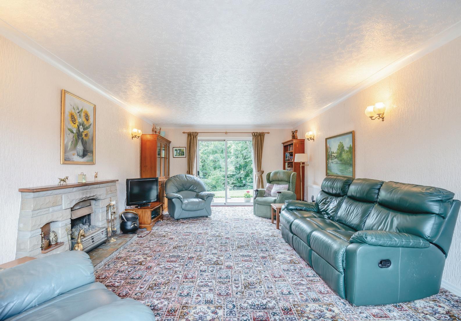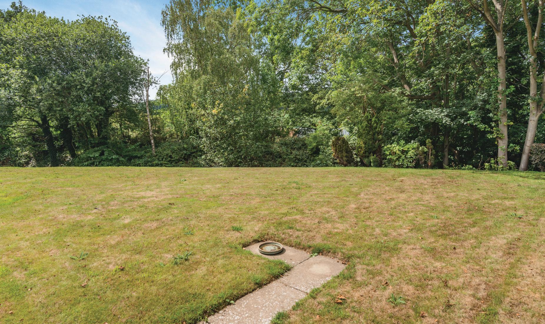 The lounge offers generous accommodation, enjoys exceptional levels of natural light with a picture window to the front offering a pleasant outlook whilst sliding patio doors to the rear open directly onto a flagged garden terrace and offers a view over the garden with a private tree lined backdrop.