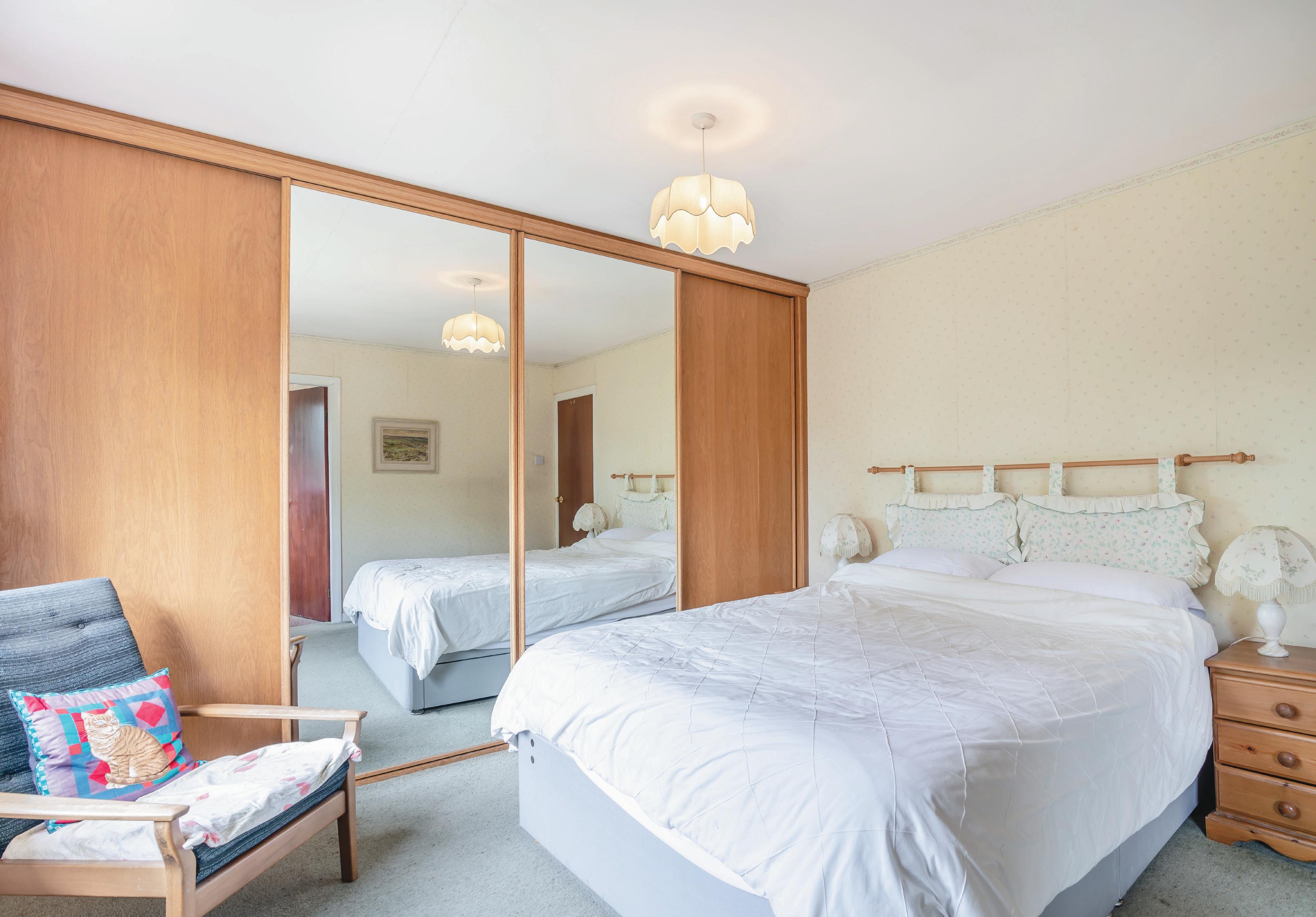 There is a double bedroom to the front with a window offering a glimpse of surrounding countryside whilst two further bedrooms each commanding an impressive outlook over the gardens and surrounding landscape, the front room has fitted wardrobes and open fronted library shelving.