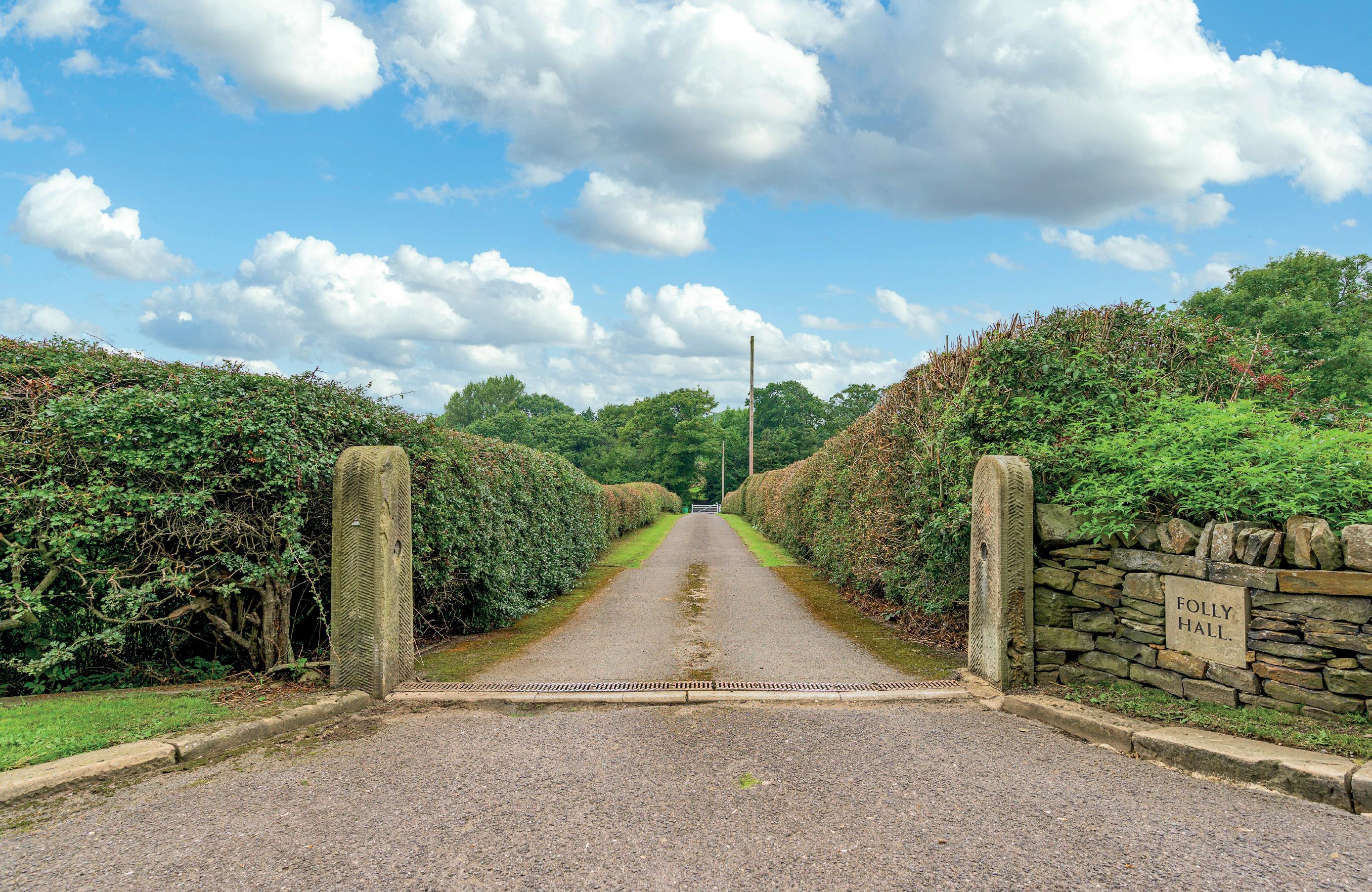 A handsome, stone property located in a private and tranquil setting of just over five acres surrounded by beautiful Pennine countryside yet just under a mile from the thriving village of Kirkburton. This six-bedroom period property has been sympathetically renovated throughout with a conversion of the adjoining barn to provide spacious and versatile accommodation, suitable for multigenerational living. With mature gardens, terraces, a stream, an orchard and superb equestrian facilities including paddocks, a menage and stabling, Folly Hall offers the most delightful outdoors lifestyle.
