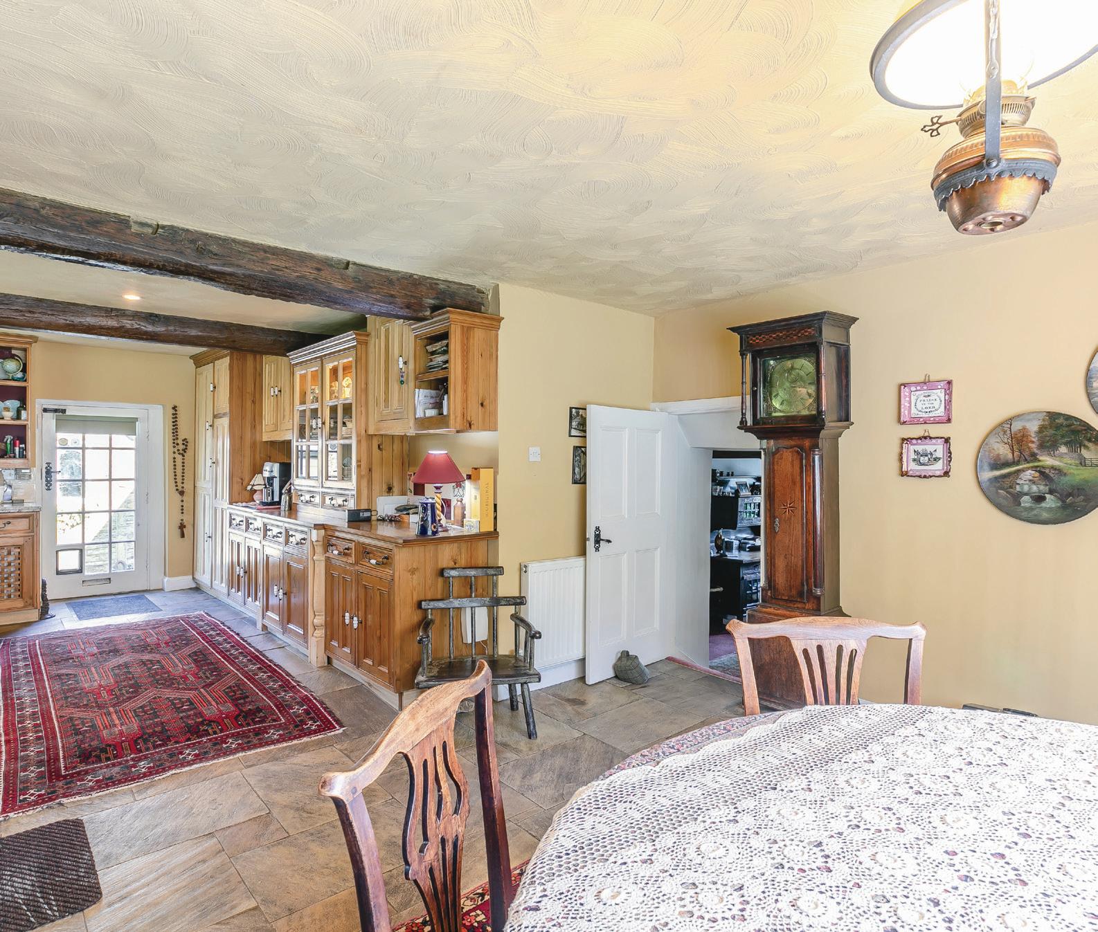 The dining room offers generous accommodation, is bursting with original charm, has exposed beams and trusses on display, windows to both the front and rear whilst an exposed stone chimney breast with open fired grate and raised stone flagged hearth forms the focal point of the room.