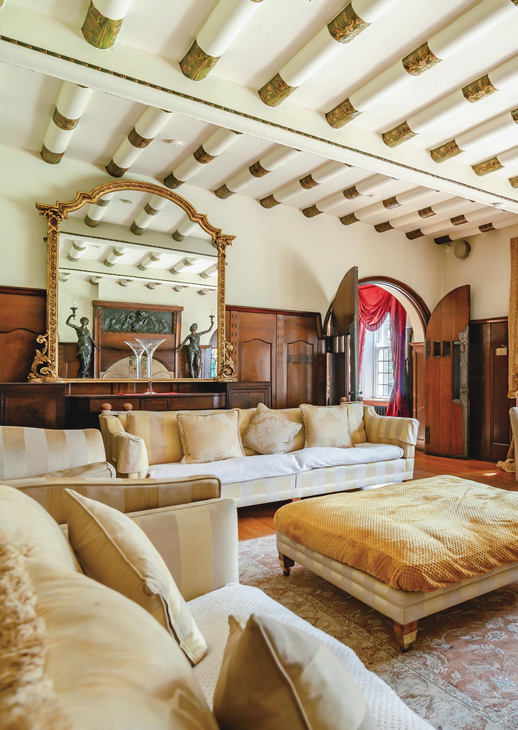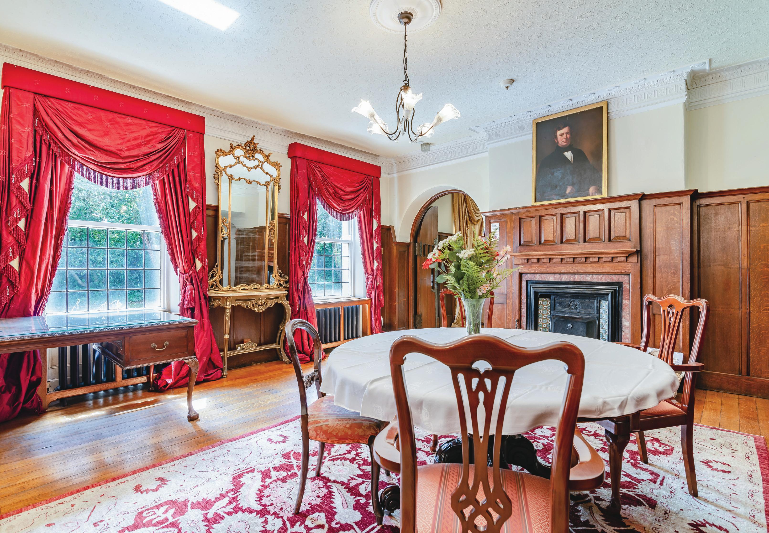 From the hallway there is open plan access to an impressive dining room which has sash windows overlooking the gardens, oak floorboards, traditional cast iron radiators with oak covers over, feature oak panelling to the walls and a stunning fireplace with ornate tiled detailing which is home to a real flame fire. There is a small storeroom and access to the cinema / leisure room which once again displays original period features and leads through to a versatile room currently used to house a hot tub.