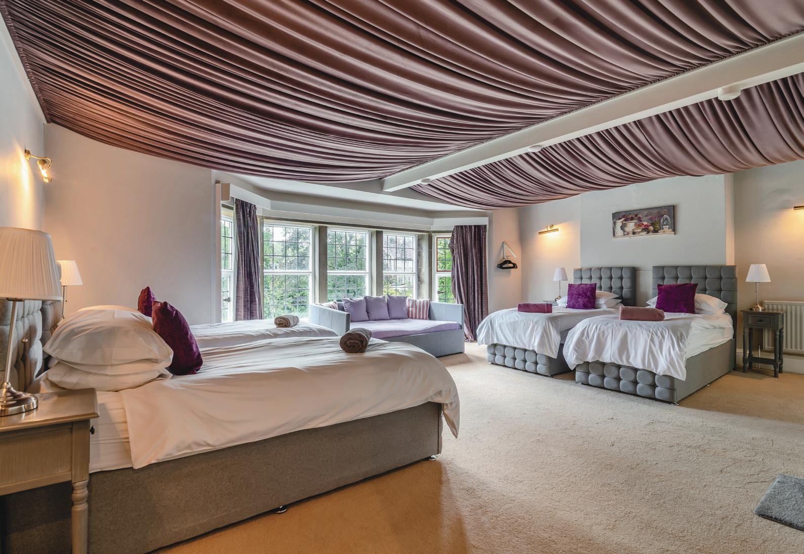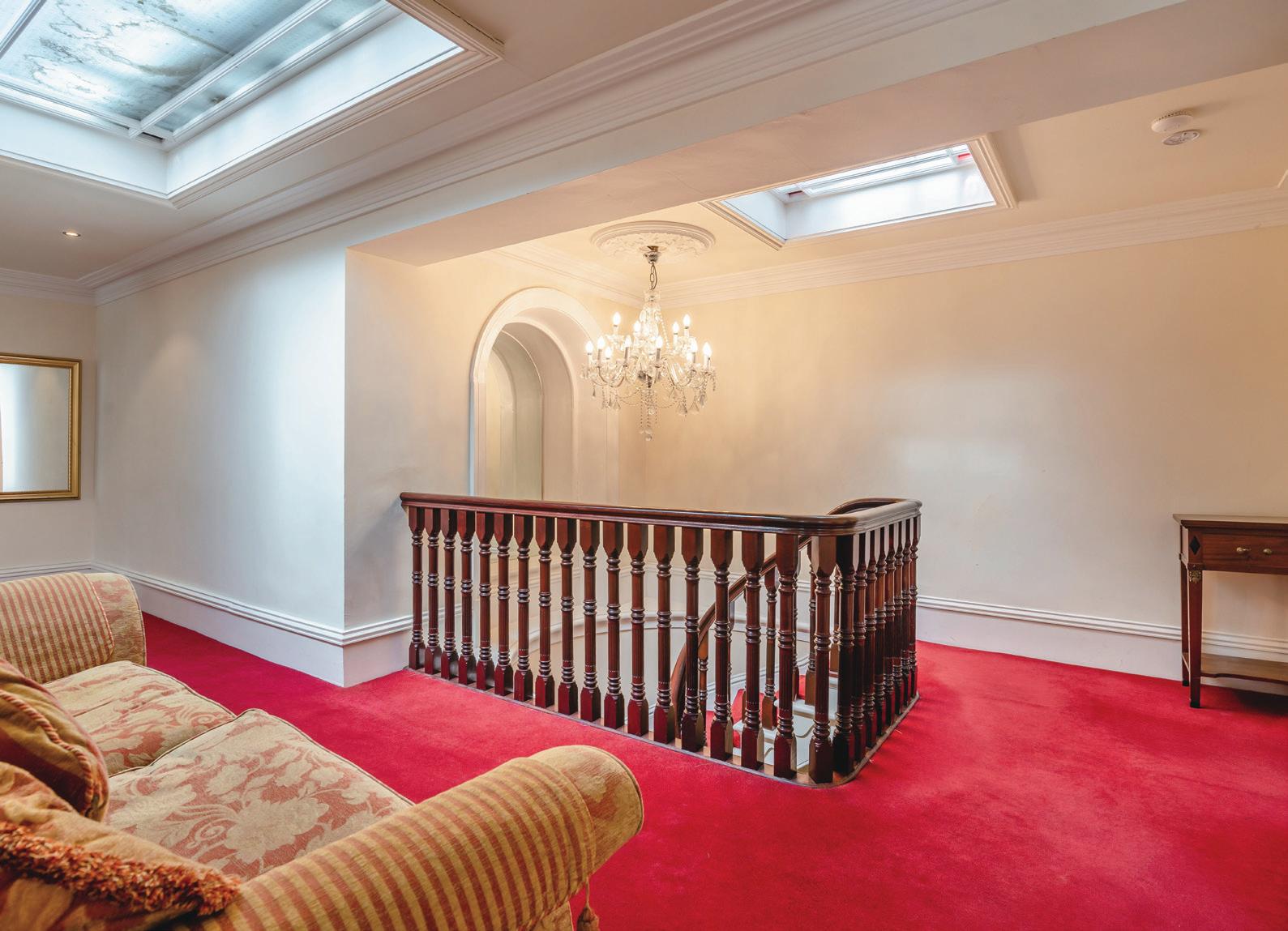A generous landing gives access to five double bedrooms, all serviced by en-suite bathrooms; the principal bedroom offers exceptional proportions, positioned to the front of the home with a huge walk-in Bay window set to stone mullioned surrounds, commanding a stunning view over the gardens, has a walk-in dressing room, en-suite accommodation that incorporates a low flush W.C, a freestanding roll top bath, a shower and a pedestal wash hand basin, has window to the side, oak floorboards, wood panelling to the walls and a large mirror.