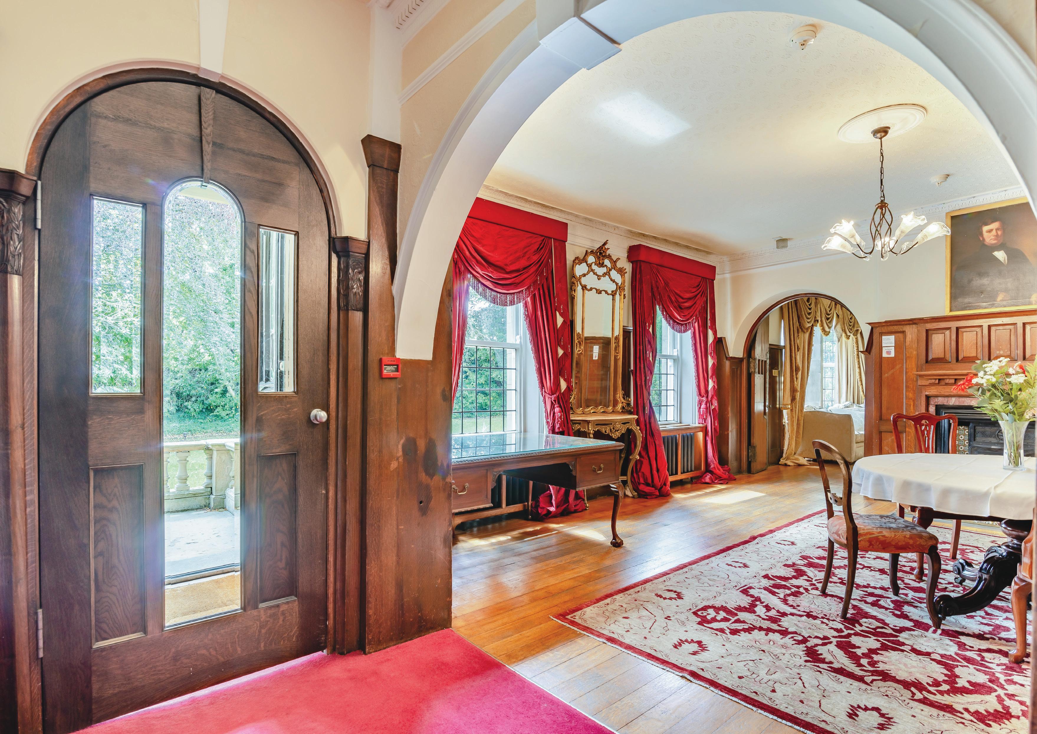 The sitting room enjoys a double aspect position, has feature wood panelling to the walls, a beautiful marble fireplace with real flame cast iron range whilst sash windows to the front and side aspects offer a delightful outlook over the grounds.
