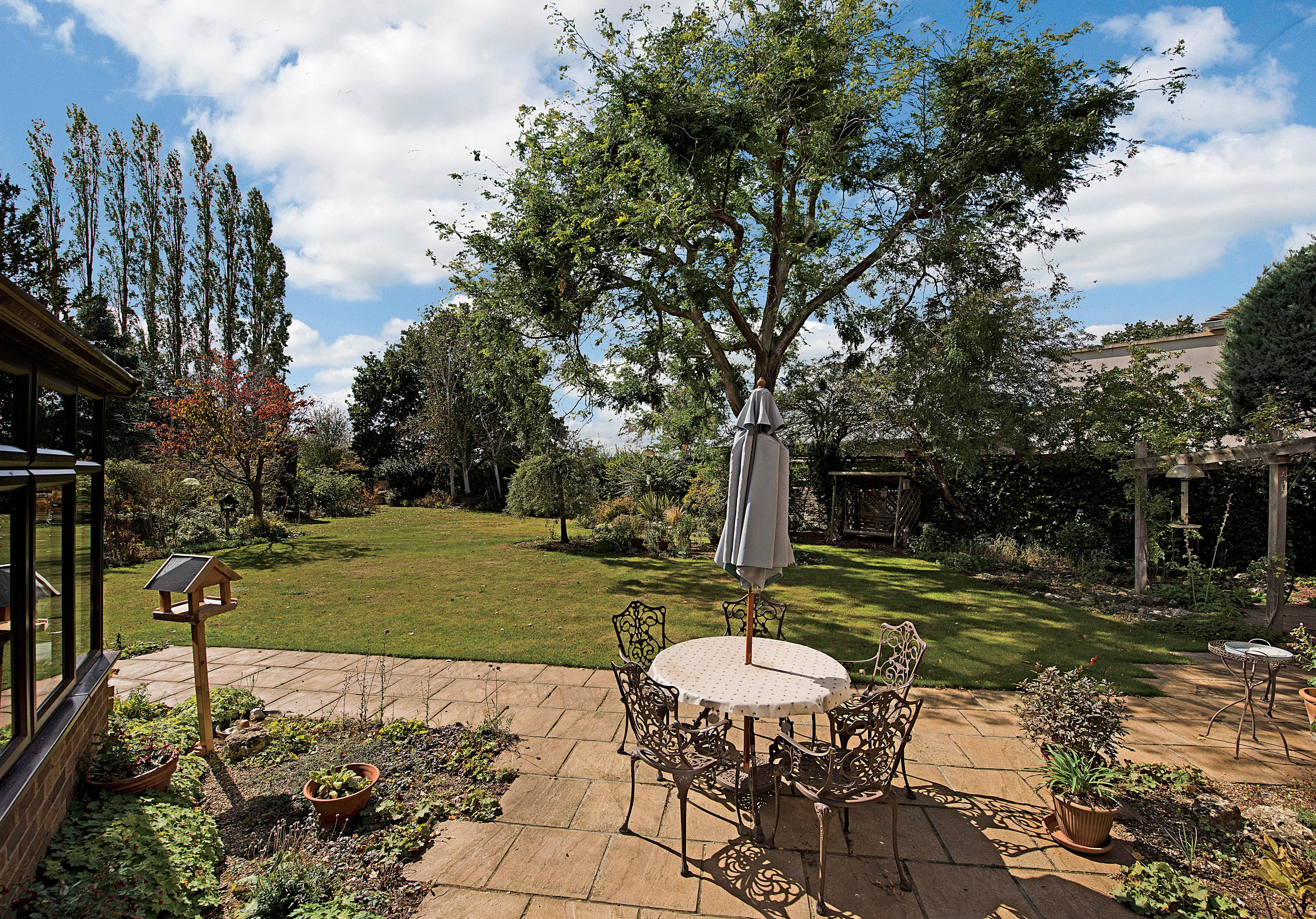 Owned by the current seller since new over 40 years ago, the property has been carefully nurtured into a peaceful haven. A large sandstone terrace opens onto sweeping lawns interspersed with mature specimen trees and well-stocked borders. Beyond the kitchen garden, a gate set within a mature hedge reveals a more natural space with a pond and open countryside beyond. This enchanting area is perfect for sparking children’s imaginations but could just as easily be incorporated into the main formal garden.