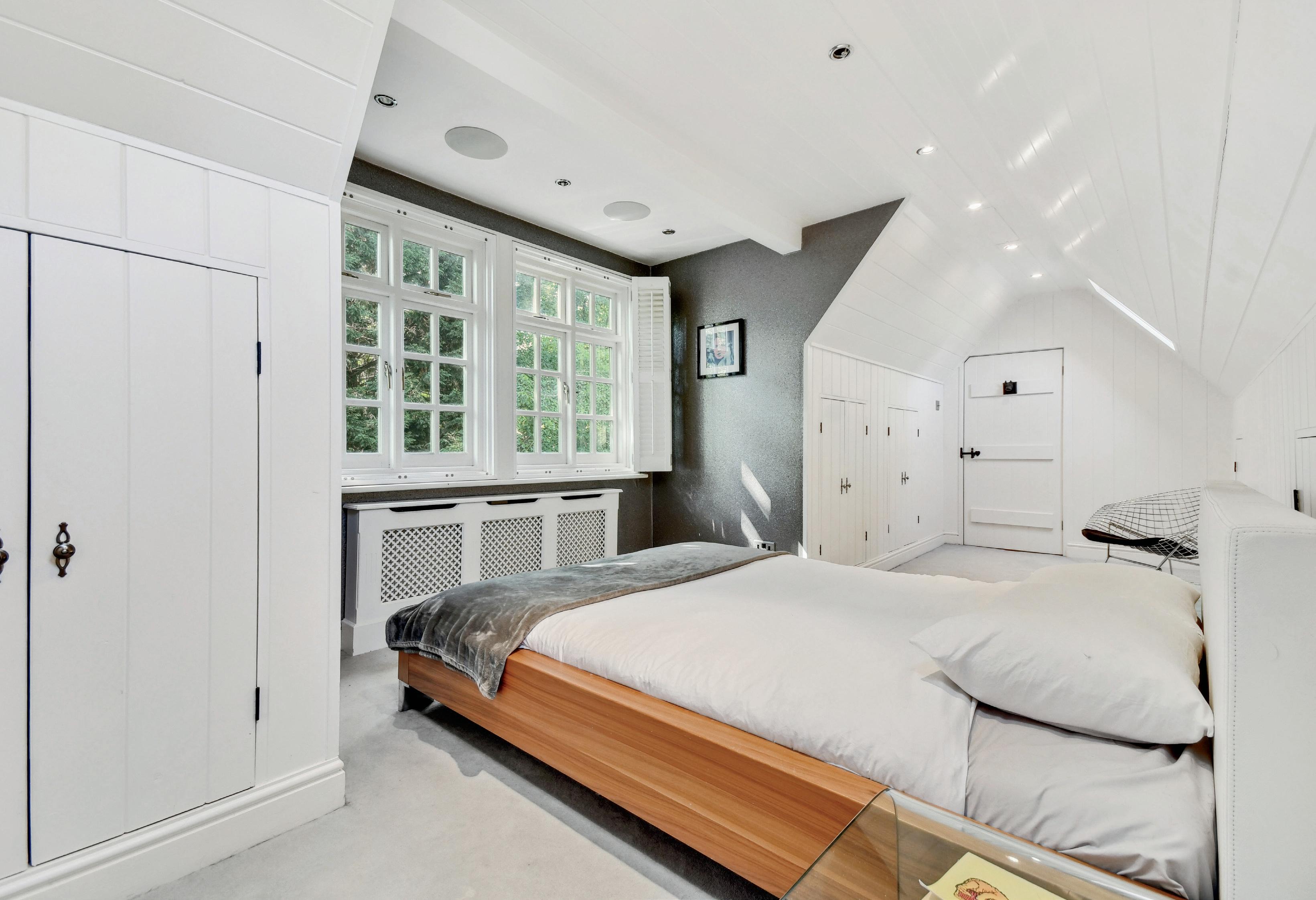 At the heart of the home, the impressive 24ft reception room provides a light-filled space for both relaxation and entertaining, with wood flooring benefitting from underfloor heating and French doors that allow natural light to flood in.