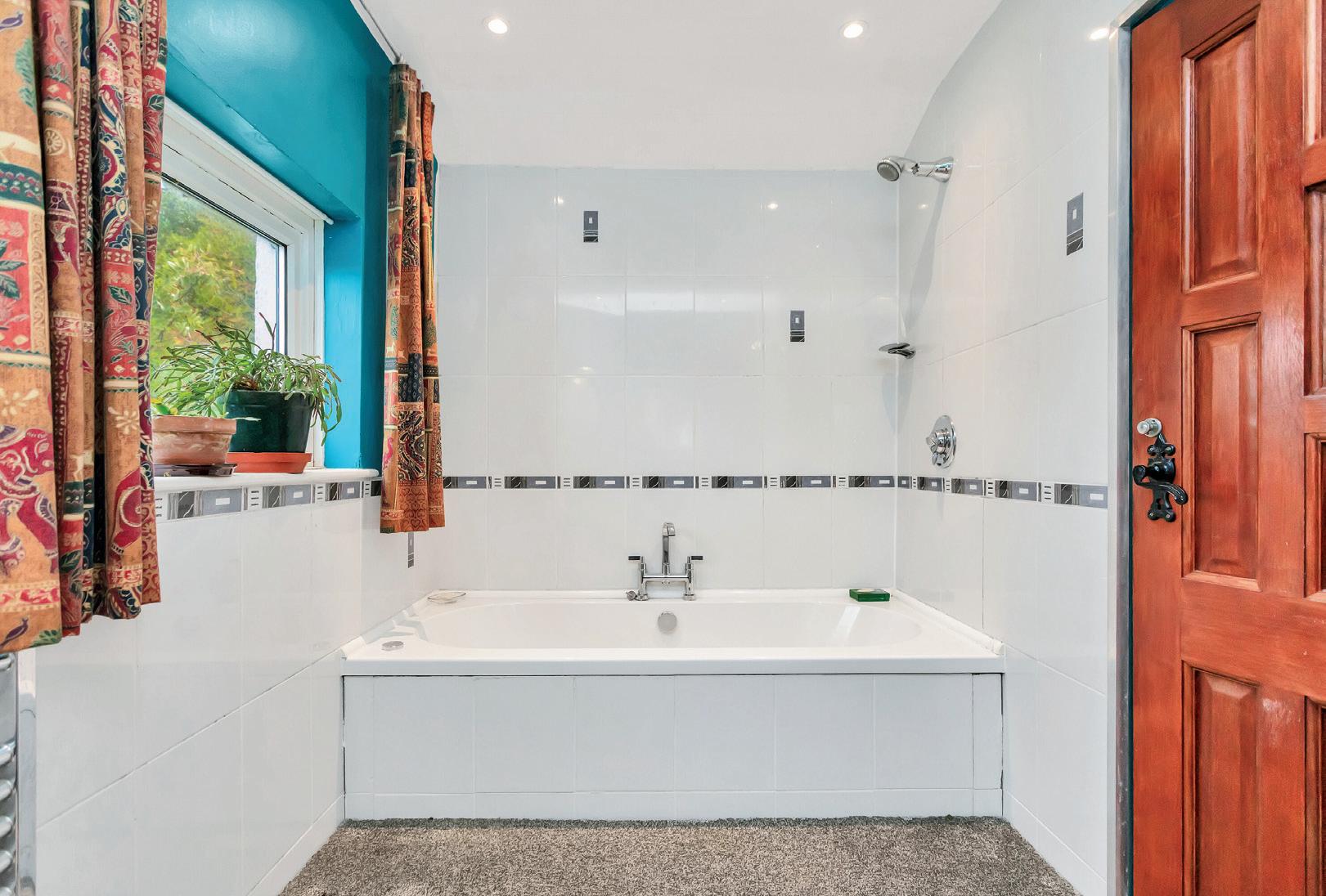 From ground level, a short flight of stairs leads to the office with a good view of the back garden and a wood and solid fuel cooking range from La Nordica. The room has a deep shelved storage cupboard, bookcases and door to the back porch/boot room which in turn opens to the garden. From the office is a door to the L shaped reception room; a particularly attractive space with plenty of natural light and wrap around views of the garden and beyond to the fields. Formal dining may be accommodated as well as comfortable seating around the open fire. Open shelving lines one wall for books and display. The layout offers a good flow with a second door leading back to the landing with a cupboard for coats. The bedroom accommodation all faces south west and enjoys good natural light and open views. The landing is split level with the main bedroom commanding an enviable triple aspect, the advantage of an en suite shower room and a door to a first floor porch with external set of steps down to the garden. Three further bedrooms are served by the house bathroom complete with spa bath, wash basin and WC and a shower room which offers a large rainfall shower and vanity unit.