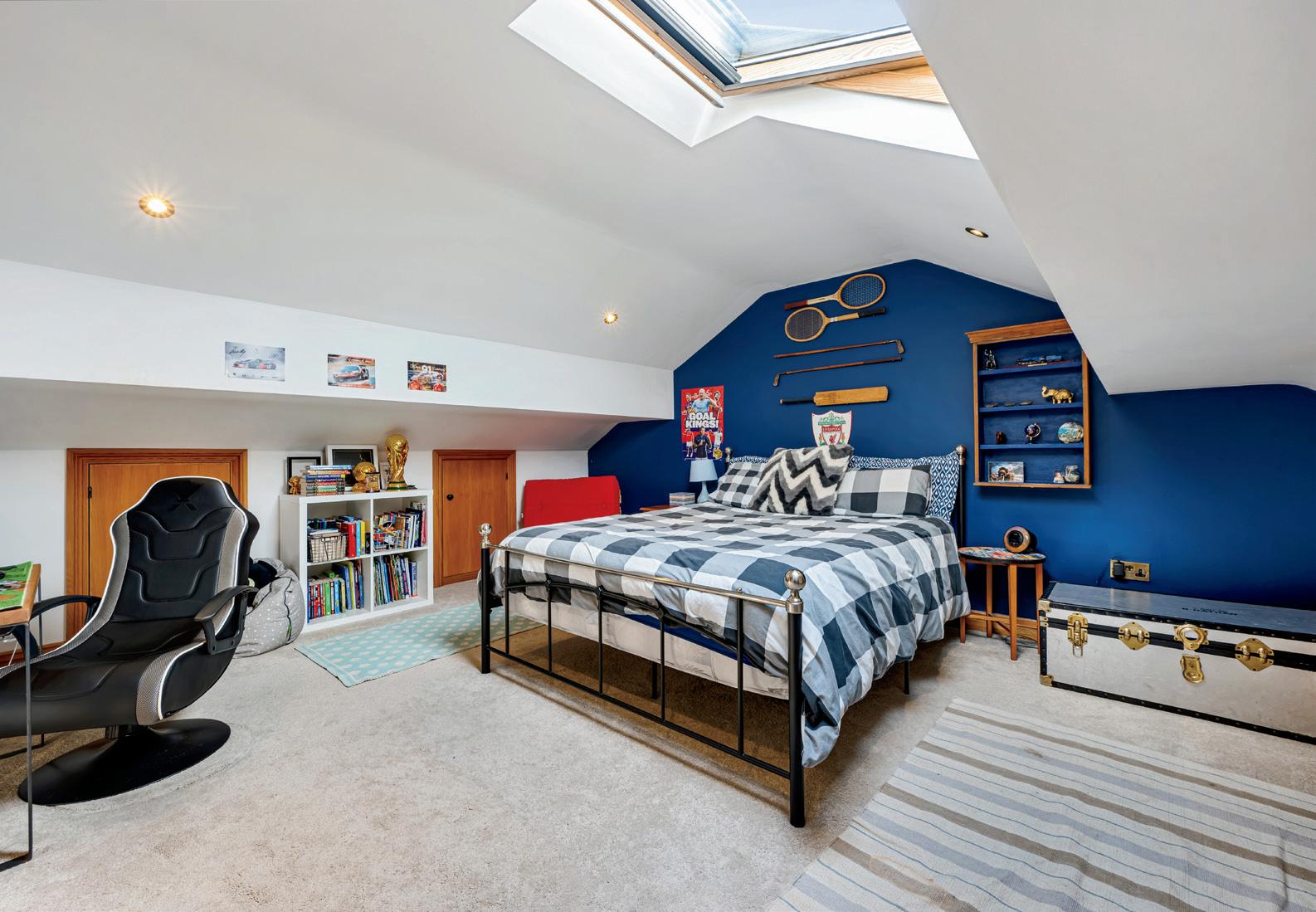 The top floor is a space of its own perfect for a teenager, guest or independent family member. This self-contained suite includes a large double bedroom, ensuite bathroom, and walk-in dressing room, all nestled under the eaves with Velux windows and clever built-in storage.