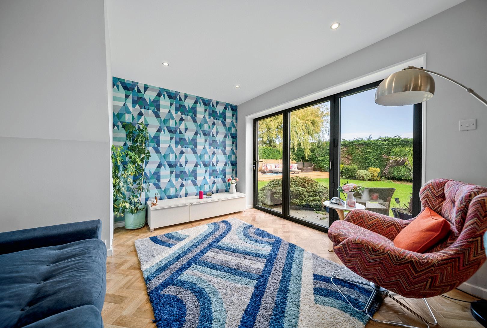 The contemporary kitchen features quartz worktops, a peninsula breakfast bar with seating for four, and premium Neff appliances — ideal for casual dining and family gatherings. Generous larder storage and underfloor heating complete this sophisticated yet practical space. Bifold doors open effortlessly onto the private rear garden, creating a wonderful indoor-outdoor flow.