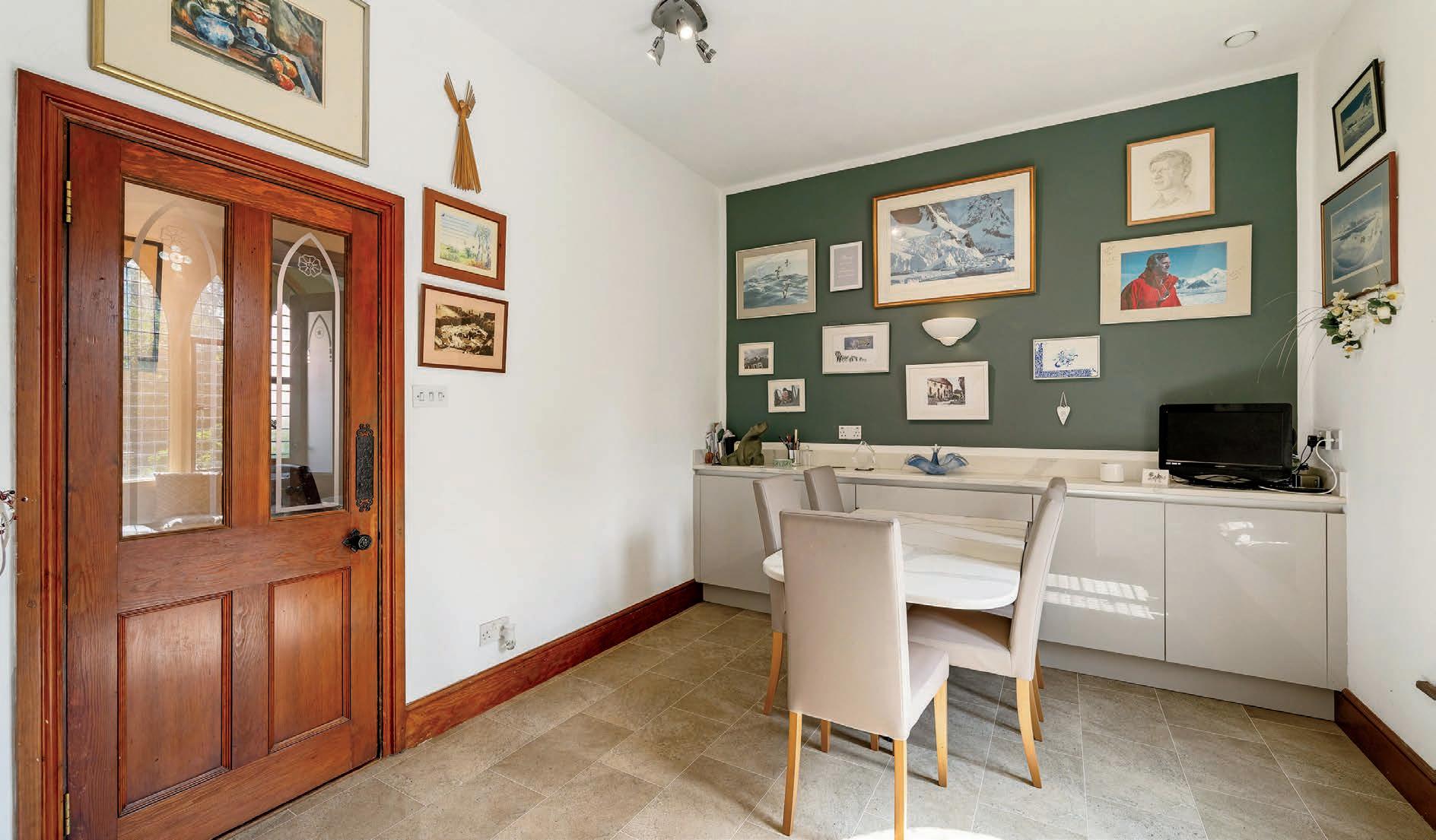 Magdalene House has been meticulously maintained and boasts a wealth of original features, including a stencilled ceiling with a preservation order, lancet windows, oak doors, a working bell-pull, and an oak and marble fireplace in the living room.