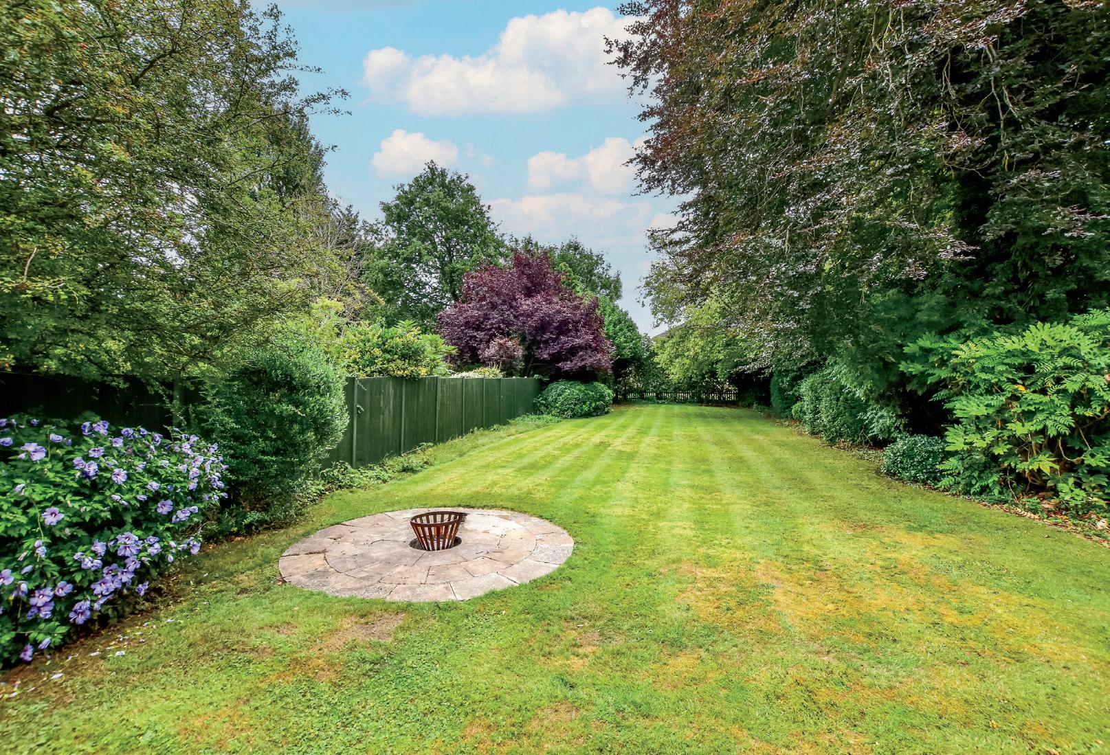 This home is complemented by a beautifully maintained rear garden extending approximately 150ft, predominantly laid to lawn and framed by mature planting. A paved seating patio provides the perfect setting for outdoor dining and summer entertaining, while a fire pit area adds a cosy touch for cooler evenings.