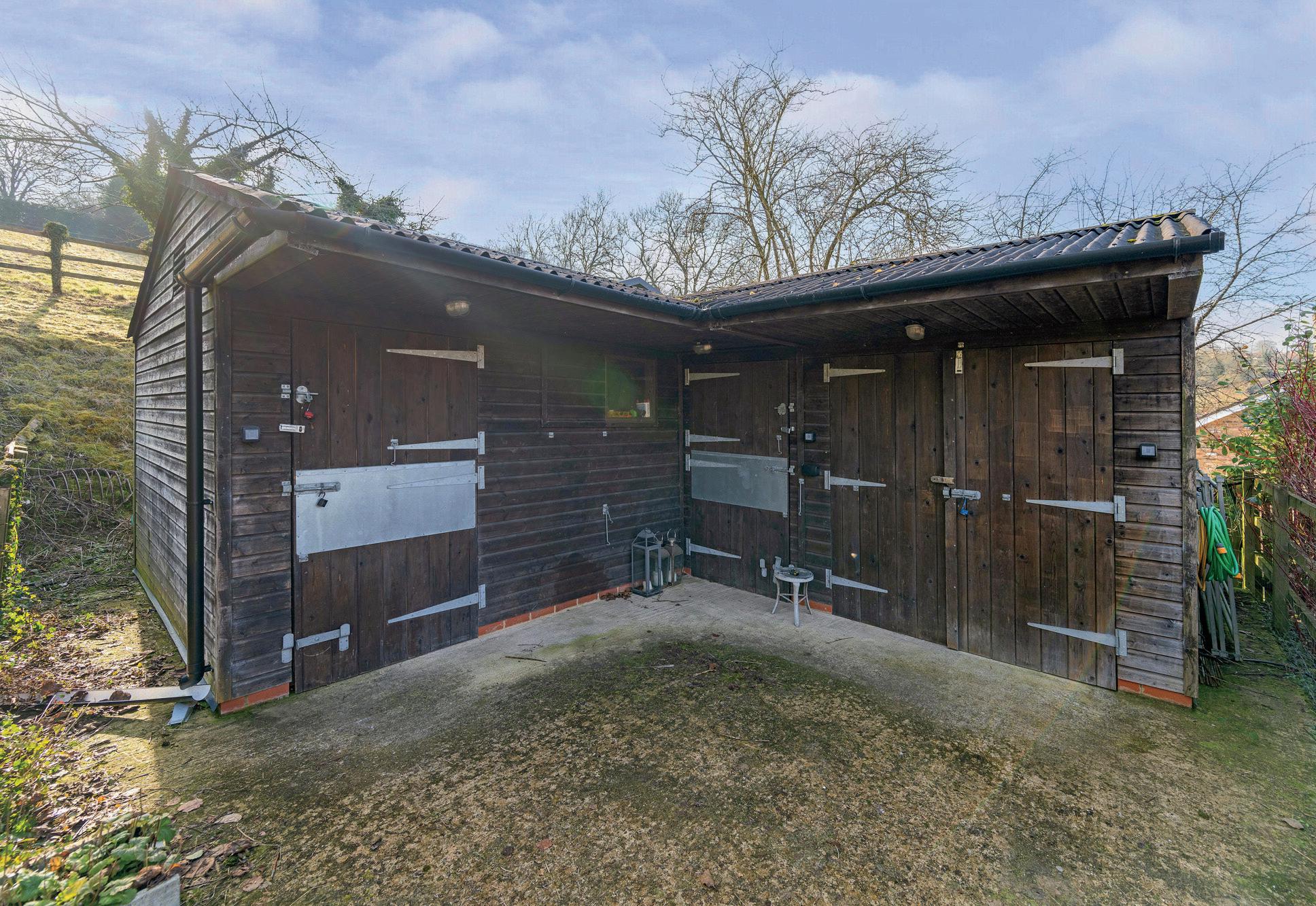 Beyond the main residence, a detached double garage incorporates an annexe with a ground-floor shower room and first-floor bedroom, ideal for guests or extended family. A separate home office/ garden room provides a private workspace, while a stable block and a dedicated tack room (with electricity and water) caters to equestrian pursuits.