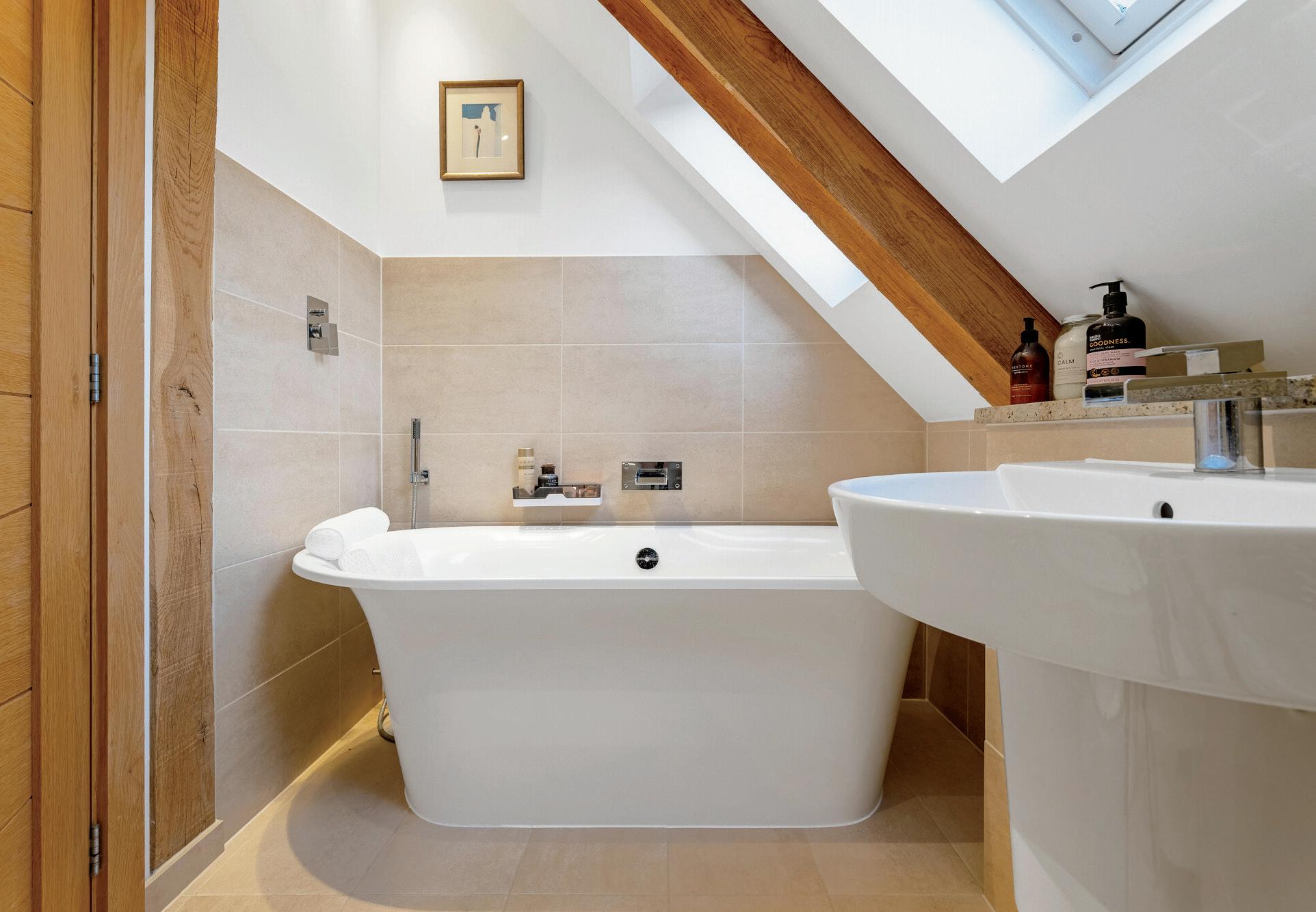 There are three bedrooms to the first floor. The principal bedroom with a dressing room and ensuite boasts a large floor to ceiling window providing breathtaking views across the countryside. A family bathroom serves the other two bedrooms with bedroom two offering captivating views across the garden and paddock.