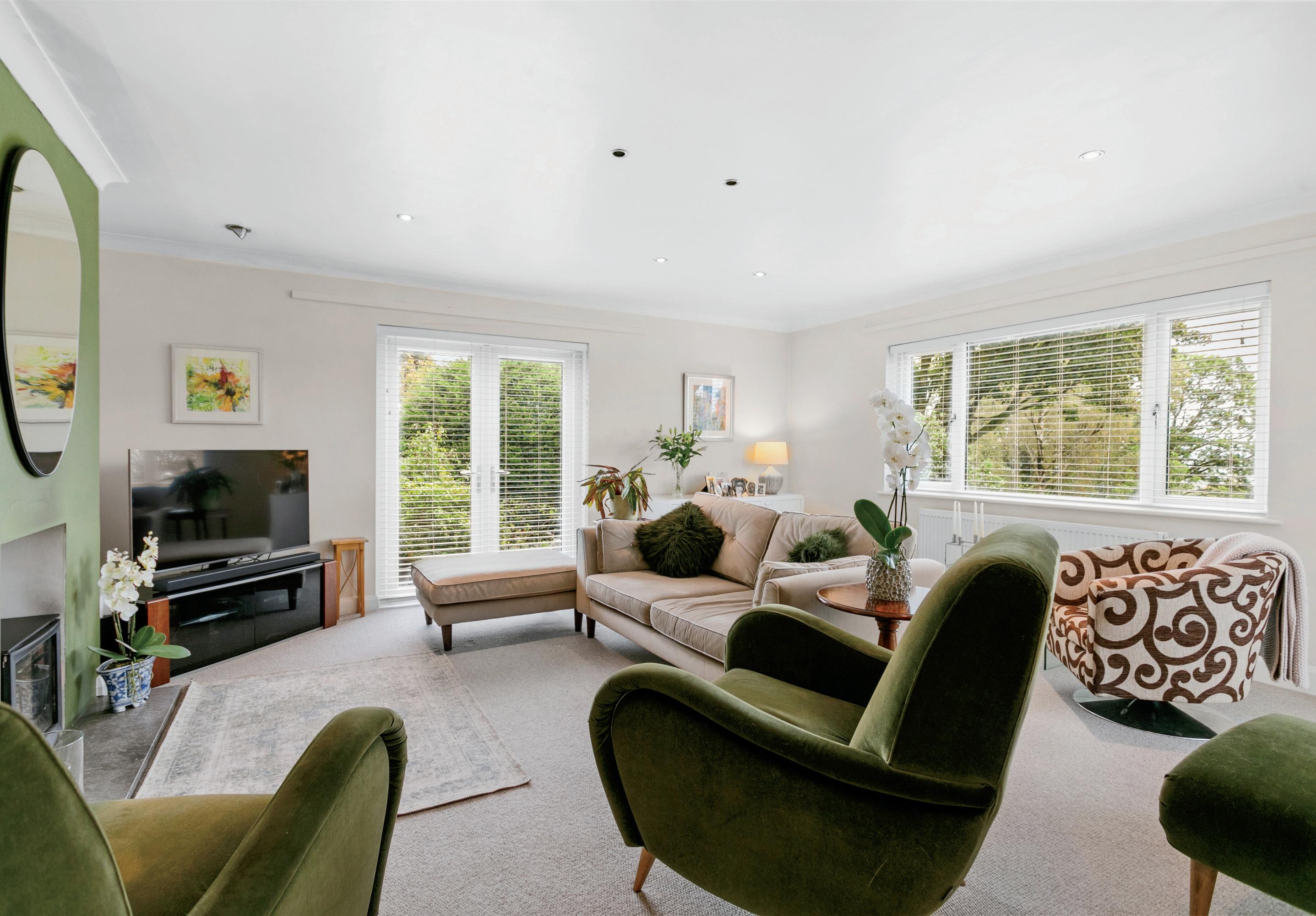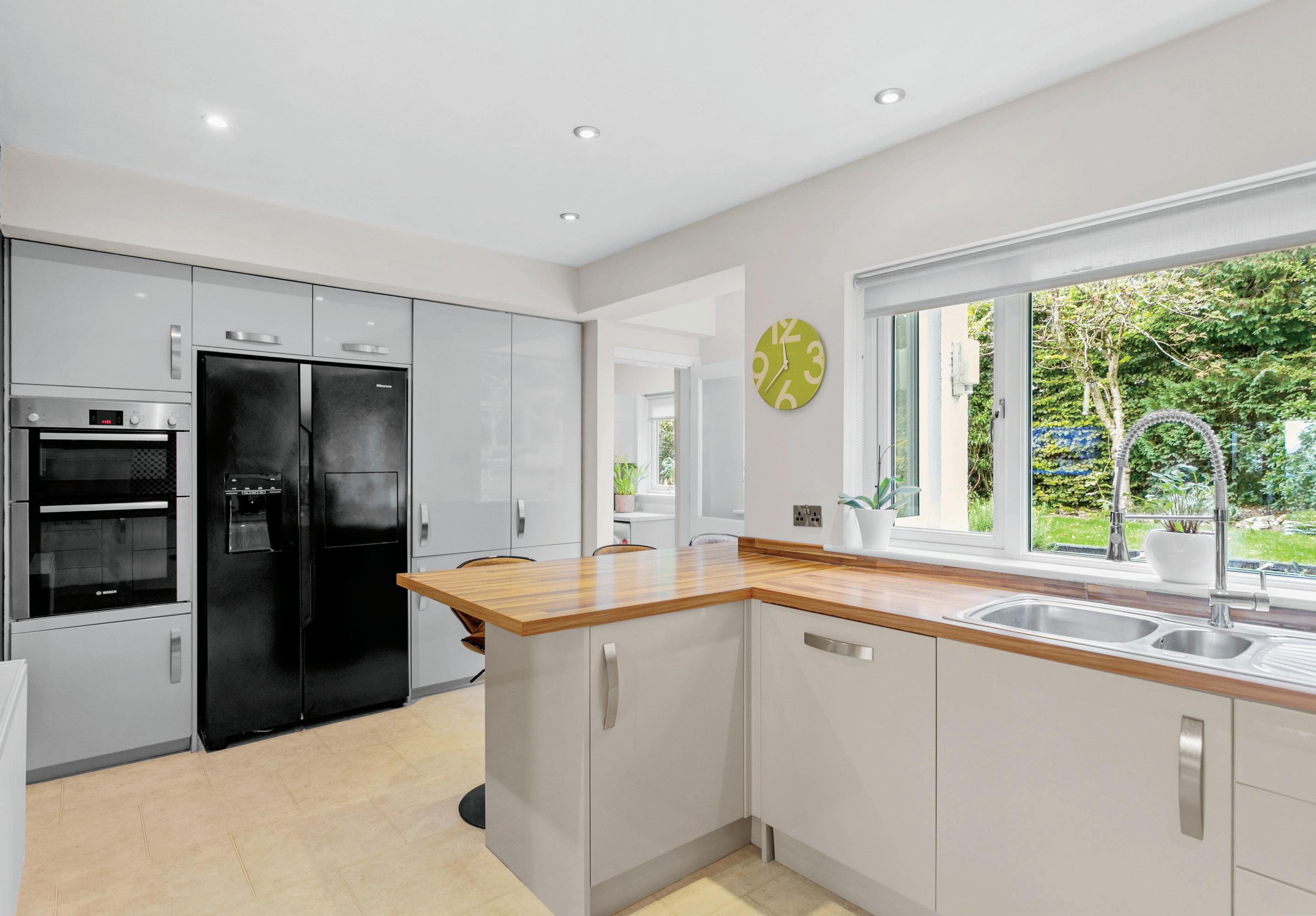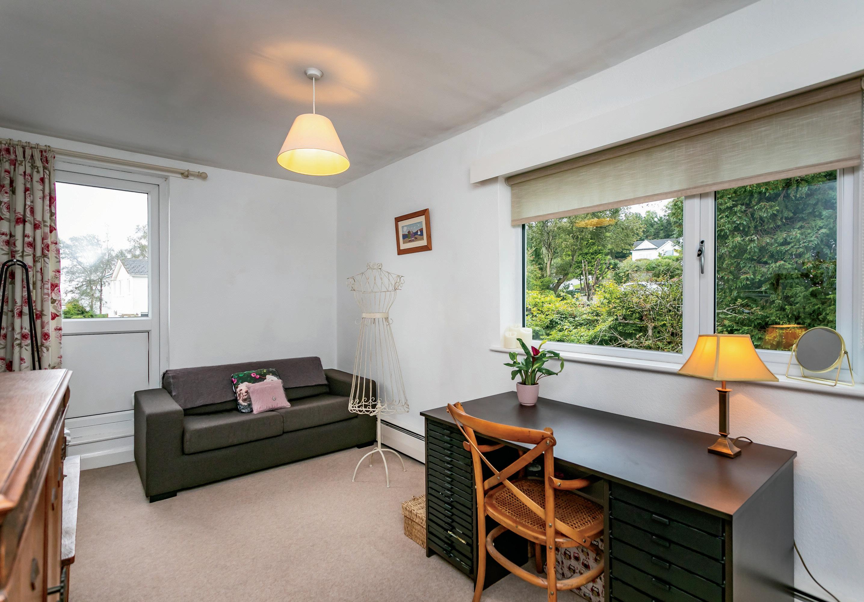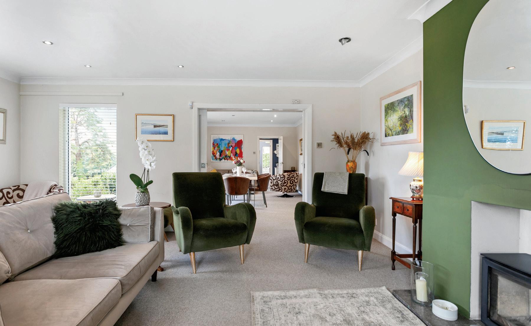 In an advantageous south east facing position, this light and spacious 1960s detached house has been updated over the years to now present as a well-proportioned and attractively appointed modern property – a lovely place to raise a family or simply enjoy the extra space for a couple. Named after a castle in Scotland, Barcaldine is set in generously sized, well planted, established and carefully maintained gardens and an essential these days, there is plenty of parking space as well as a garage. The gardens create lovely outlooks from the house and in some rooms, extend to far reaching and panoramic views.
