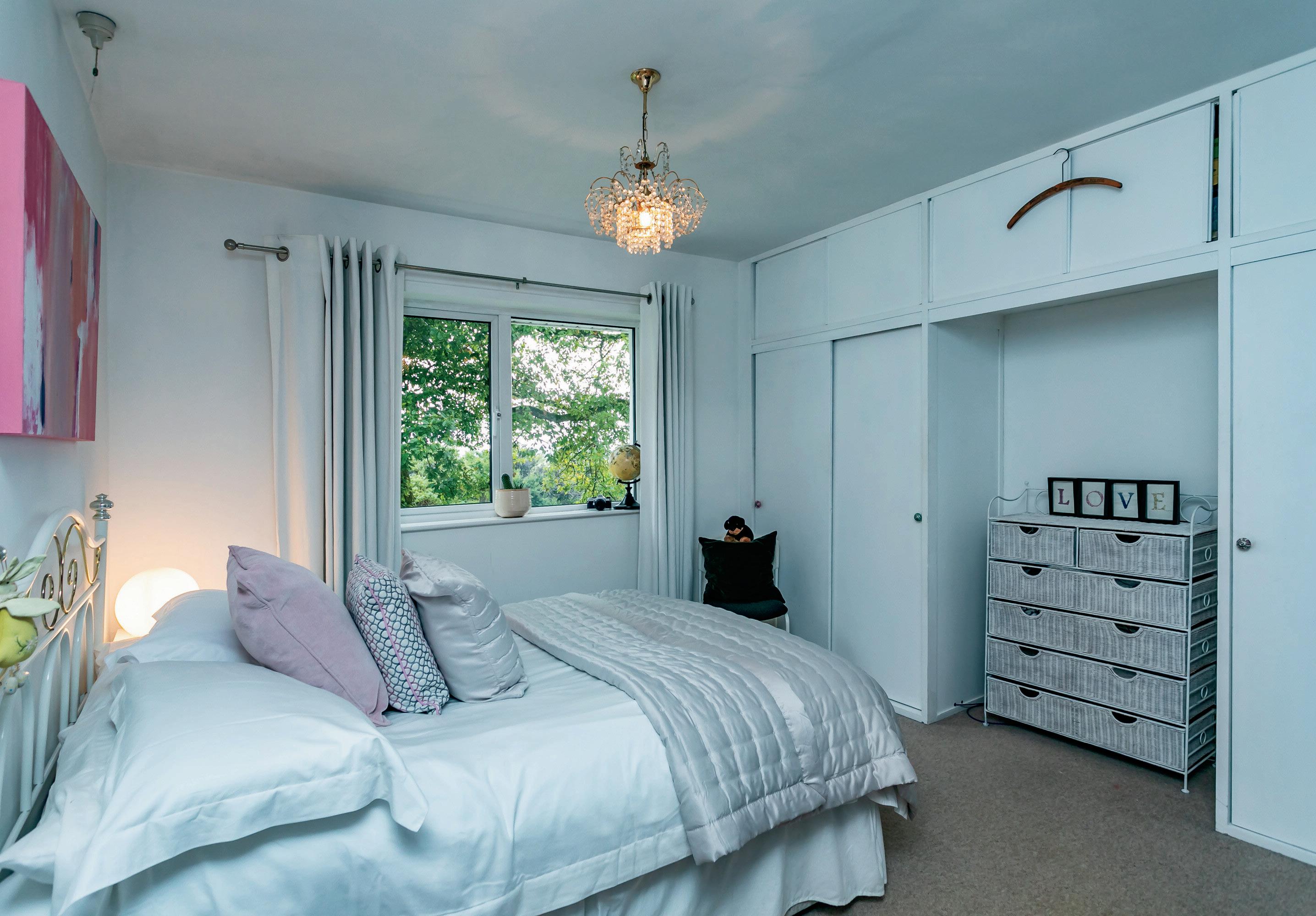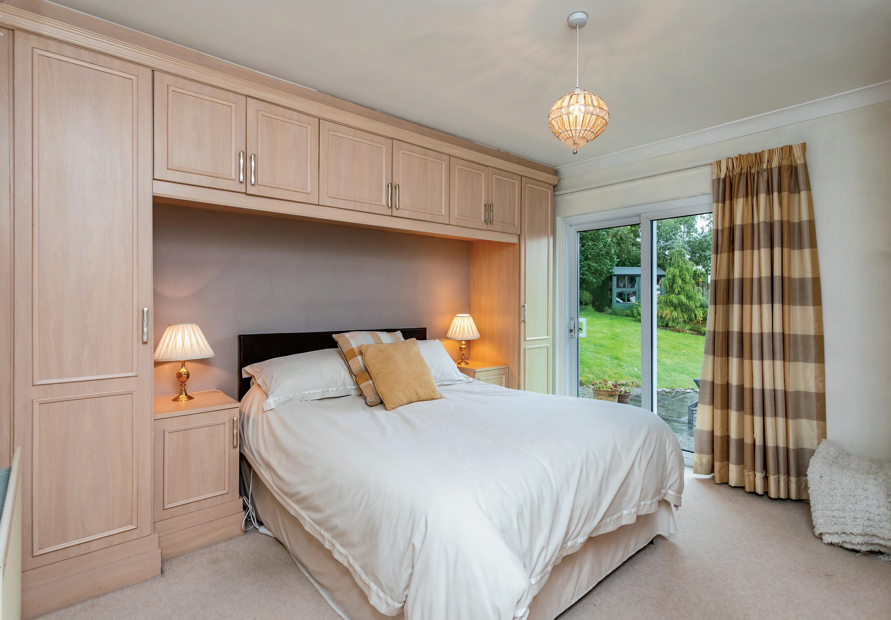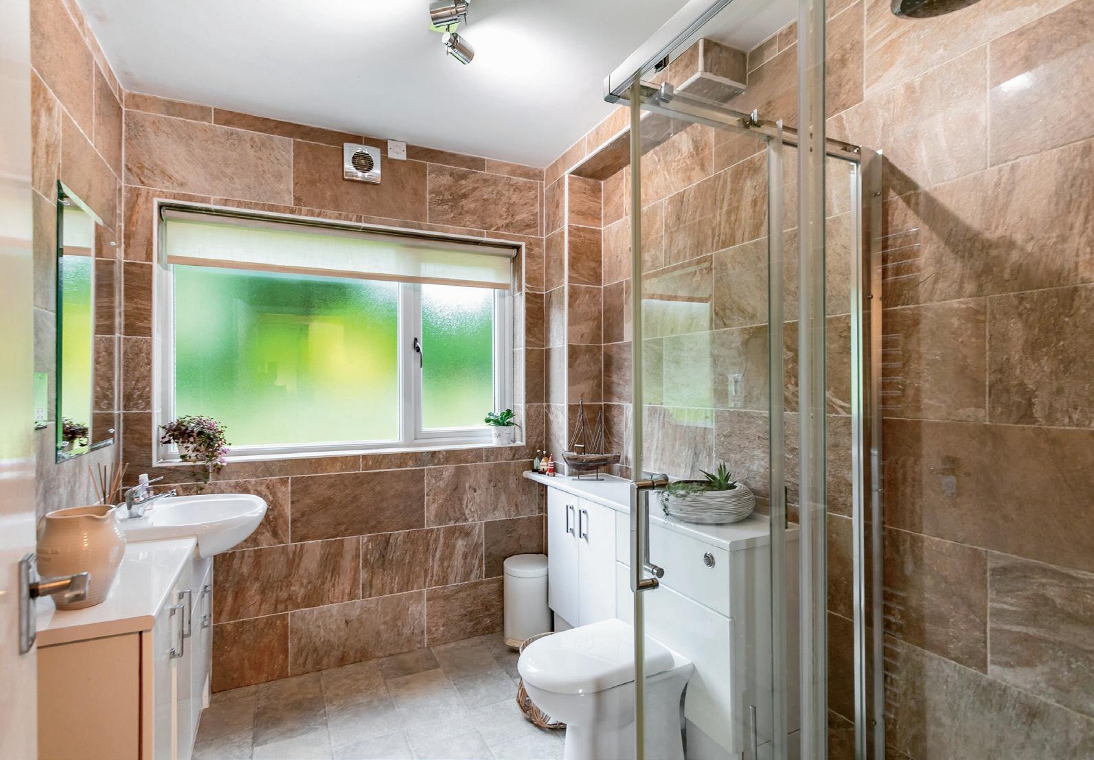 Completing the layout on the ground floor is a fifth double bedroom which has a lovely view of the main garden. Fitted wardrobes provide storage and French doors open to the side terrace. Serving this bedroom, and the ground floor in general, is a shower room with a shower cubicle, vanity unit and loo. The availability of a ground floor bedroom is popular from those seeking an accessible guest room or a personal future option. It’s flexible and alternatively, it would happily make another light living room.
