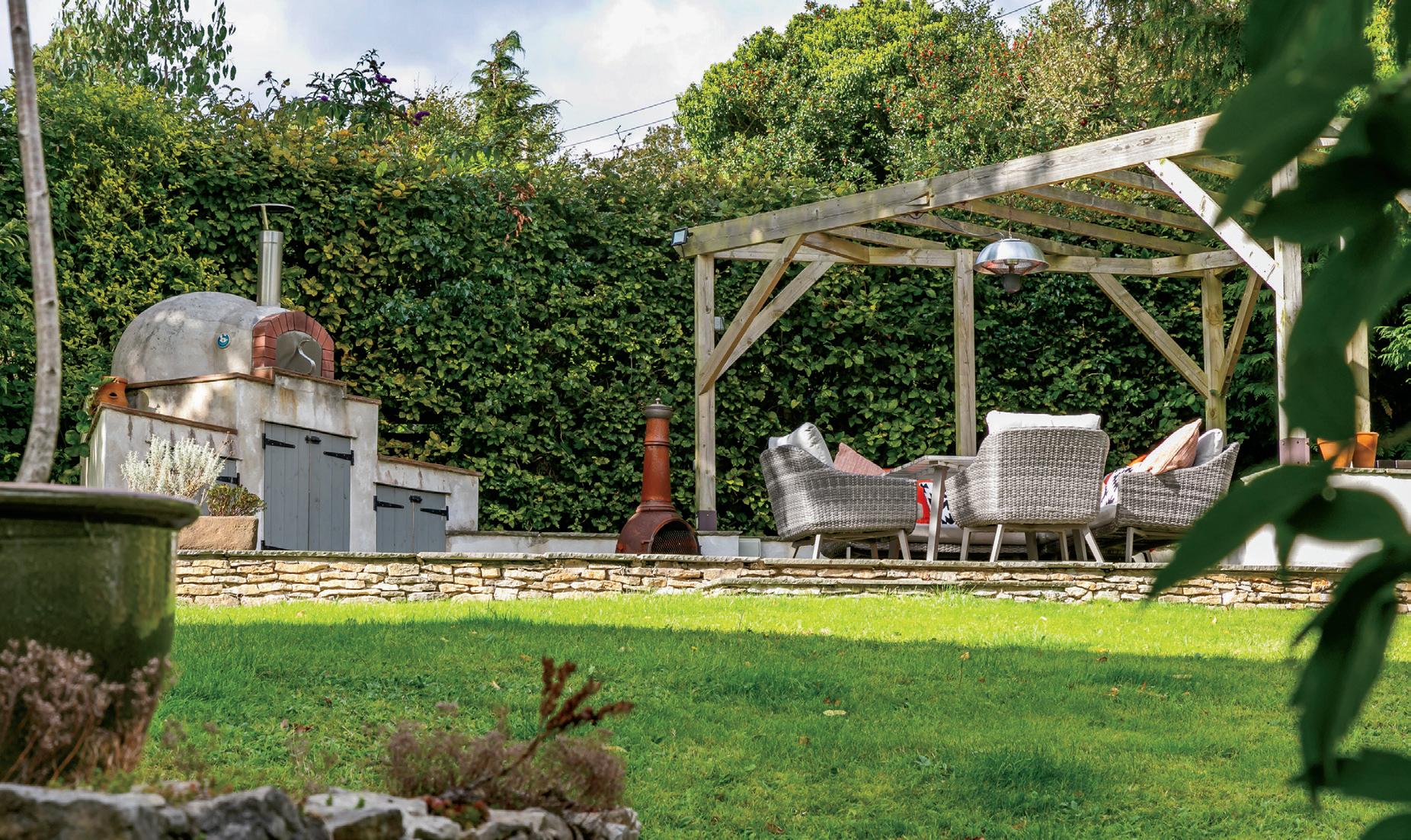 On offer is a choice of seating areas to suit the time of day and occasion; taking prime position is a paved seating area with pergola and wood fired pizza oven. The views from this particular sun trap are excellent, across the garden and away to the distant countryside. There’s also a summer house for when you’d still like to be in the garden but there’s a slight breeze.