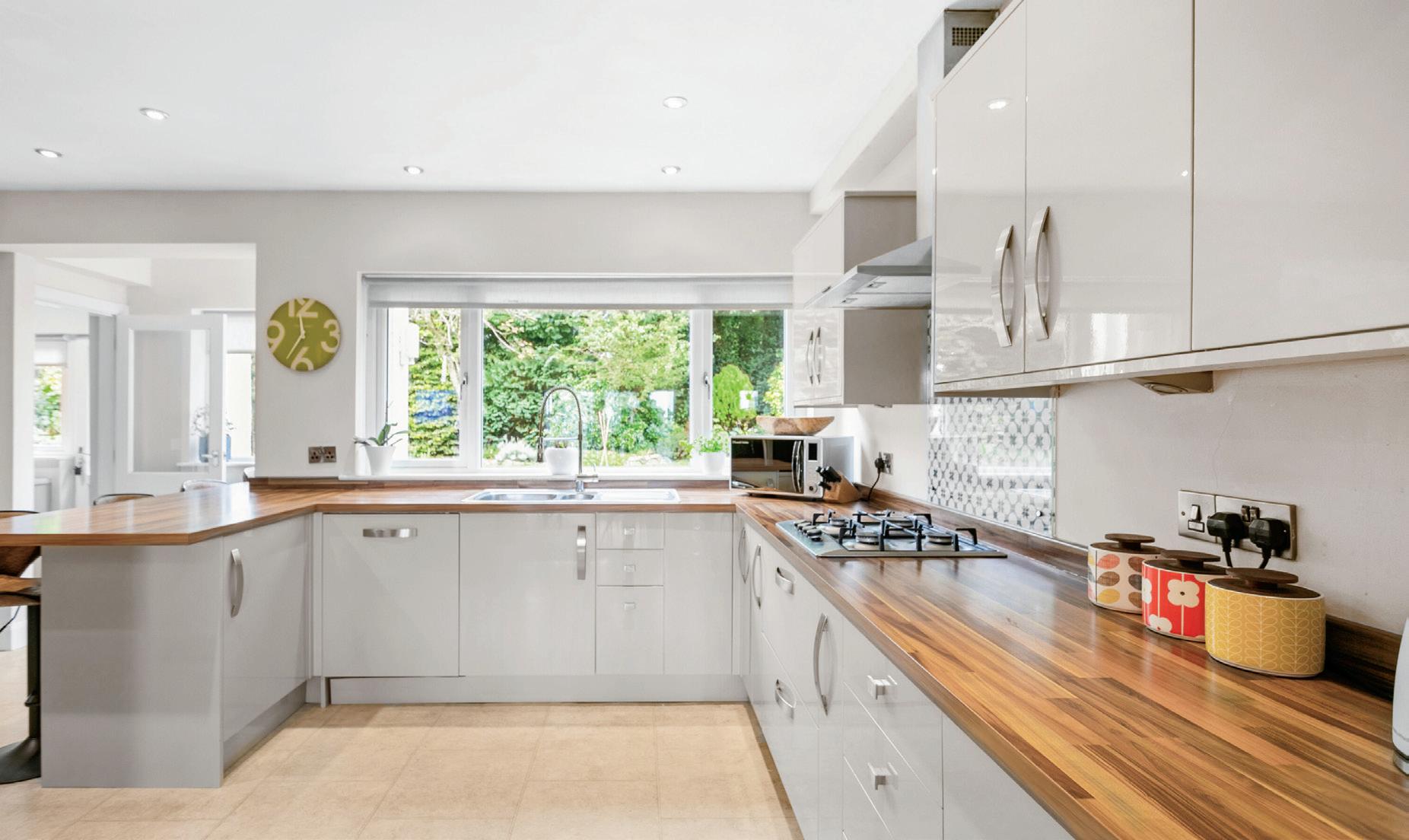 The triple aspect sitting room is a great size, cosy in colder months with the wood burner alight and when the weather permits, there’s a good flow out to the garden through French doors. Creating the right atmosphere is at your fingertips with a Rako smart lighting system which is installed in the sitting and dining rooms.