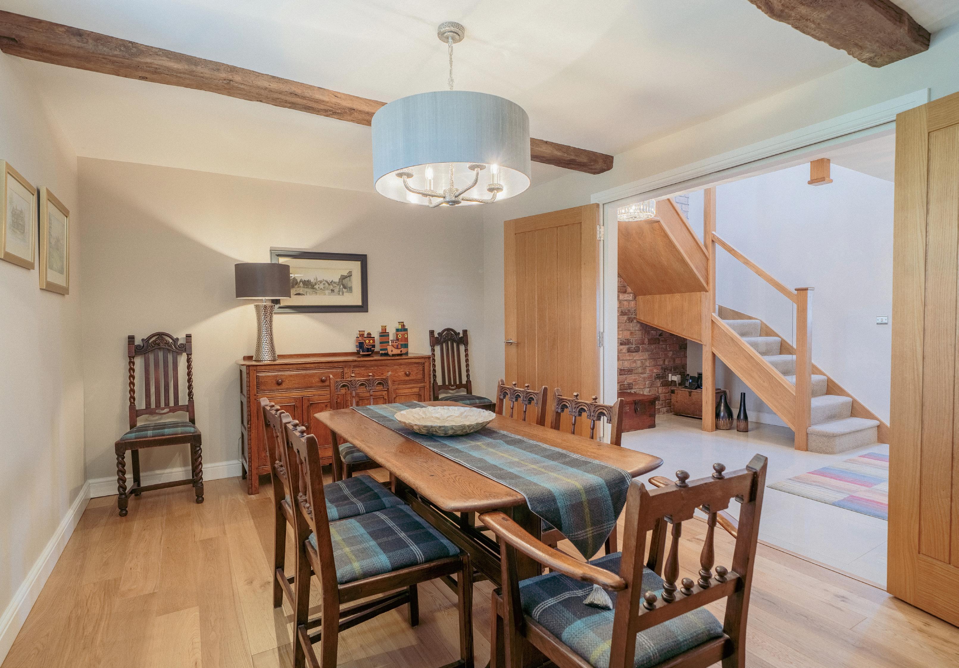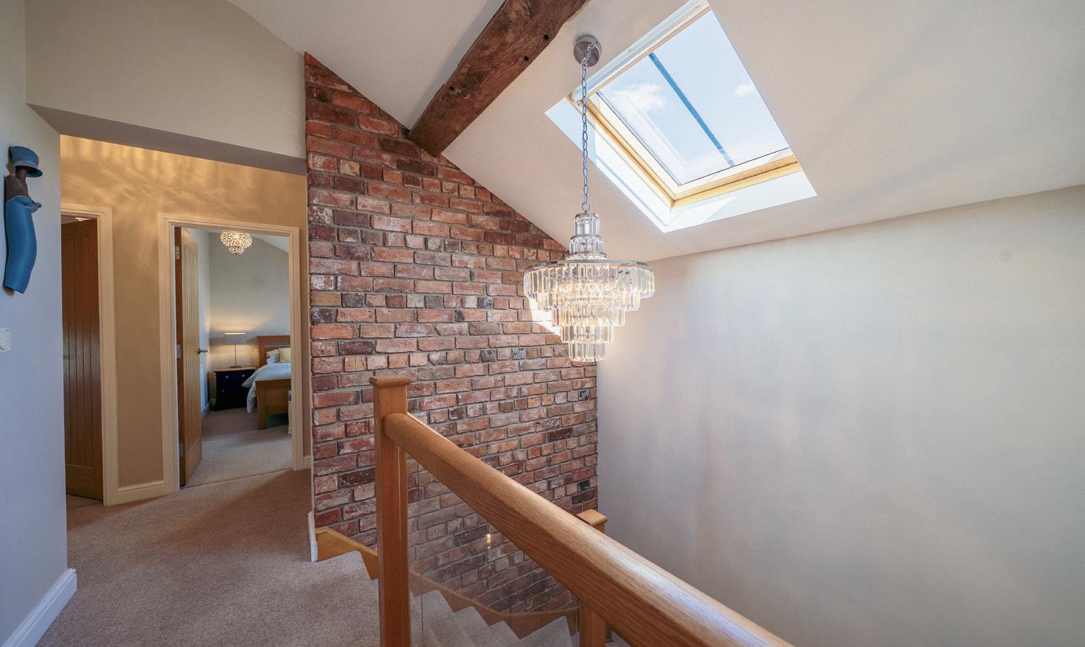 Step through the main entrance door into a welcoming hallway that sets the tone for the home. Bathed in natural light, defined by original beams, a feature Cheshire brick wall, and a striking oak and glass staircase.