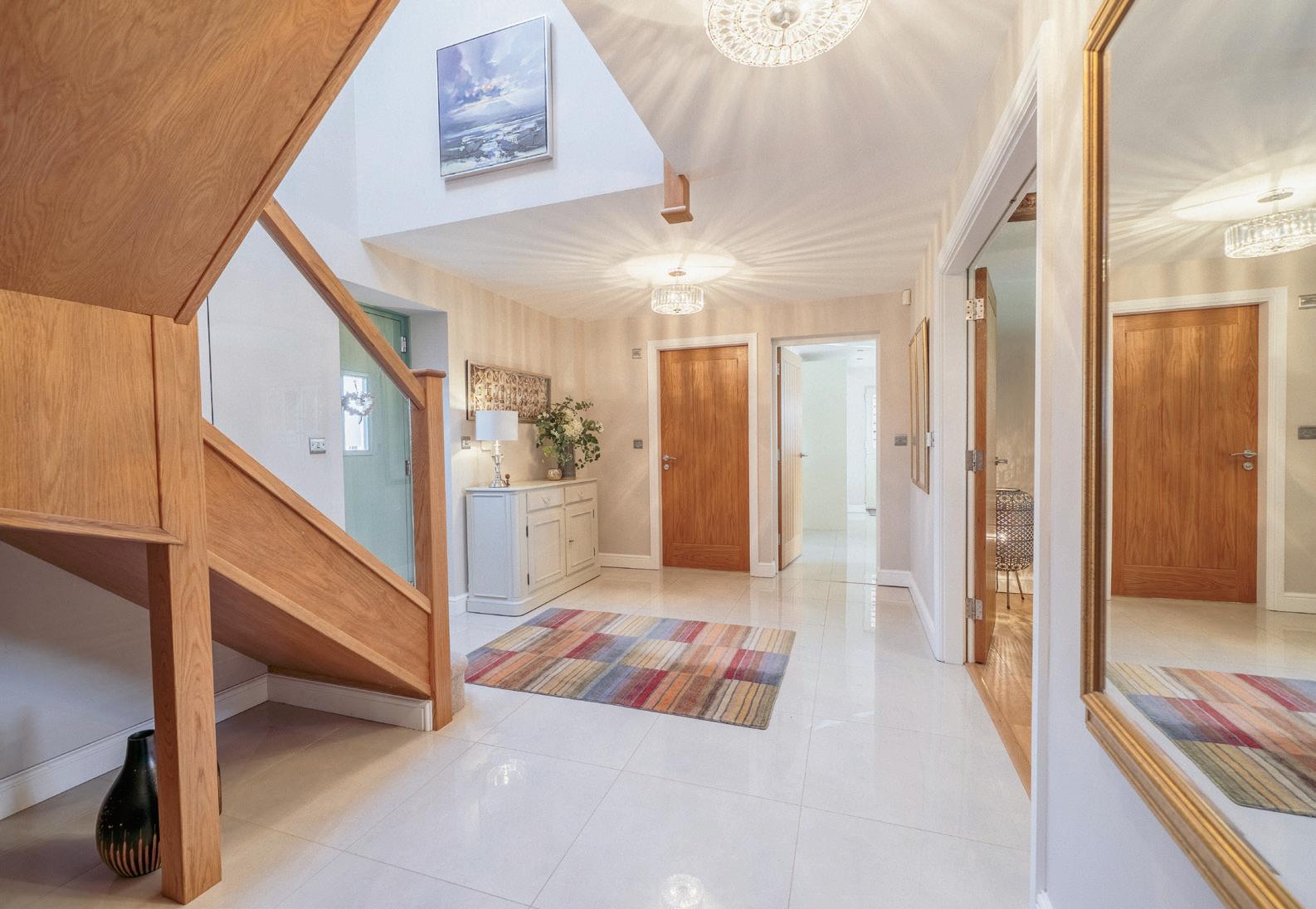 With cosy underfloor heating throughout the ground floor, stunning engineered oak flooring has been laid in the dining room, while ceramic tiled flooring flows from the reception hall through to the cloaks, laundry, and kitchen.