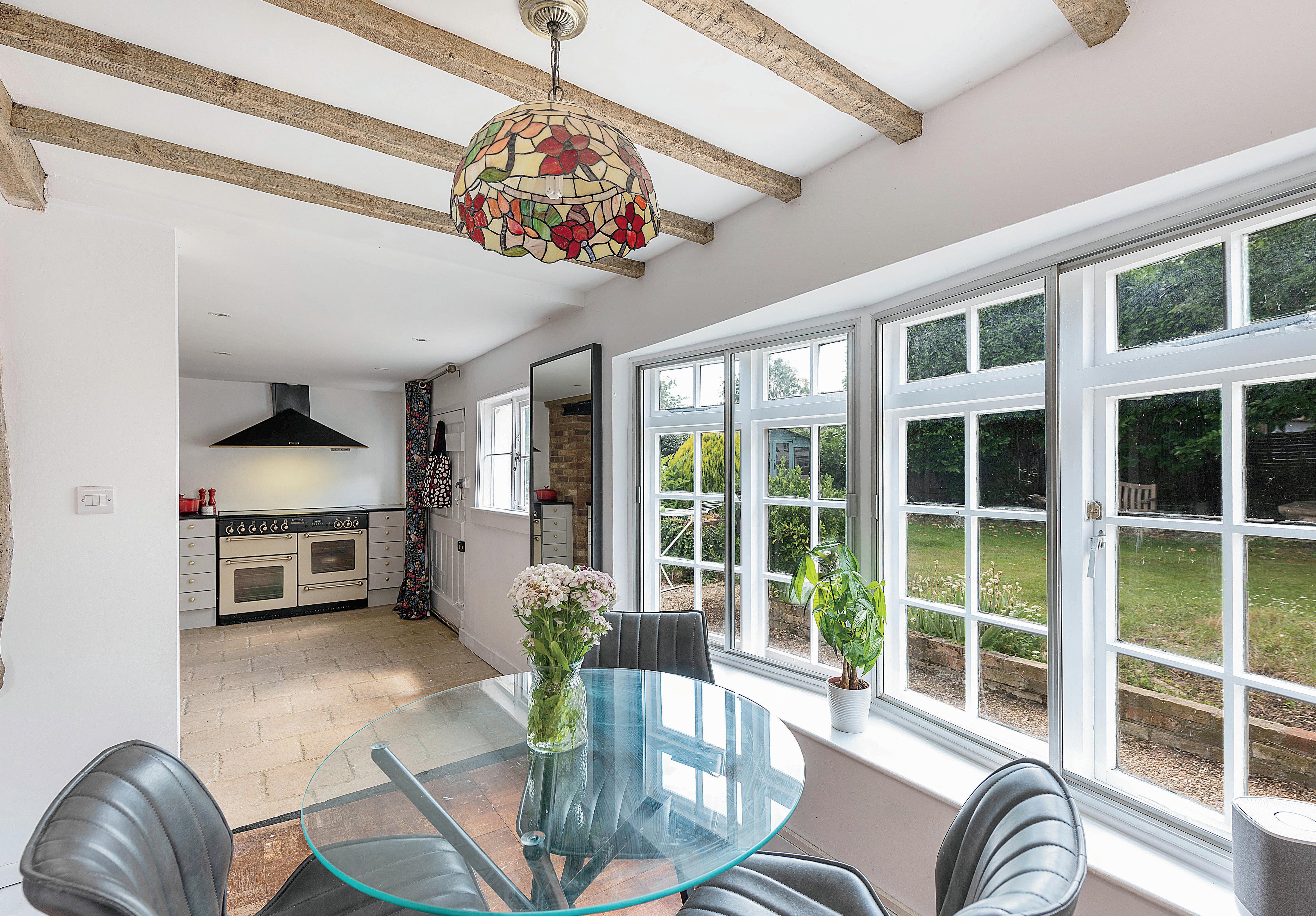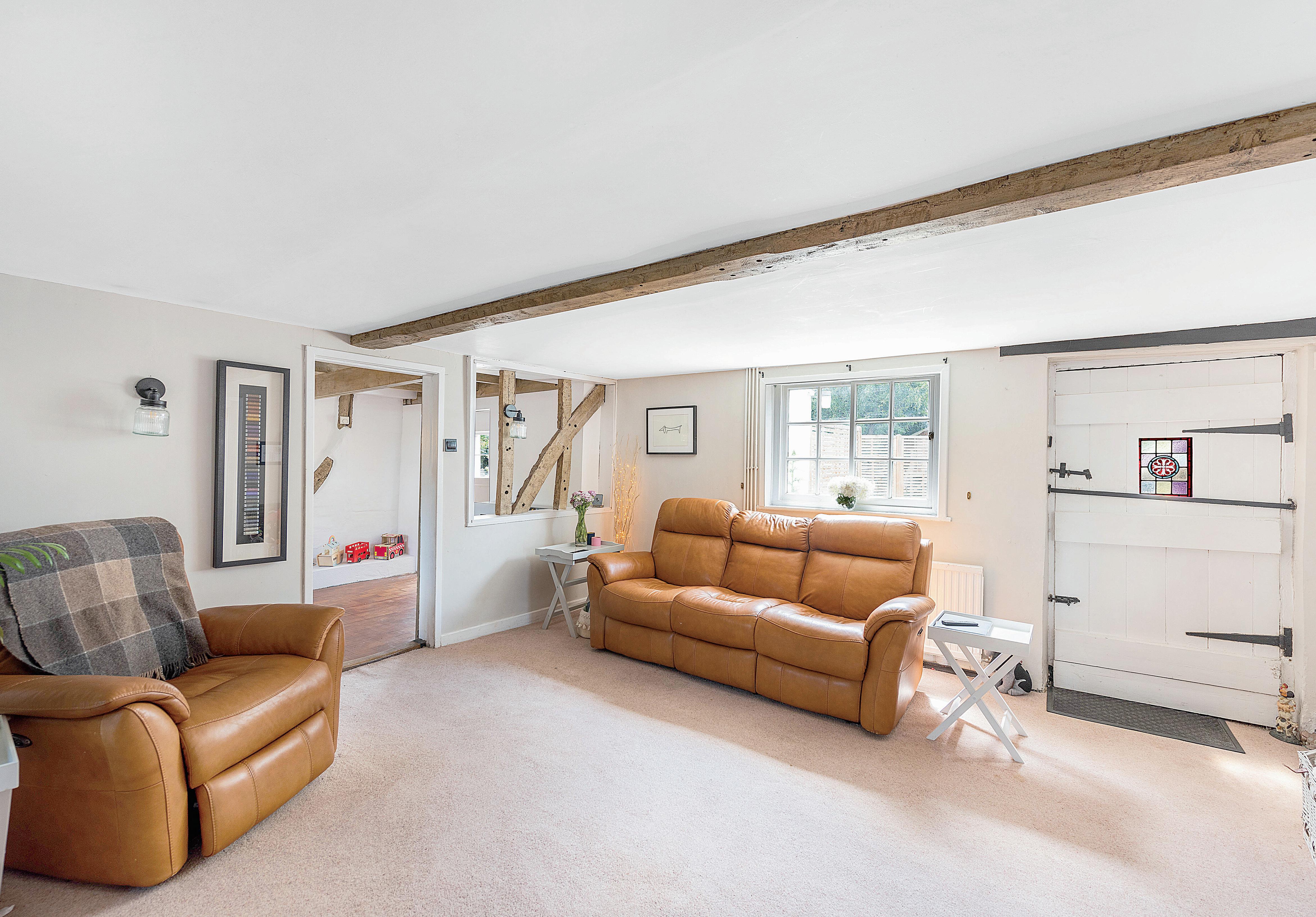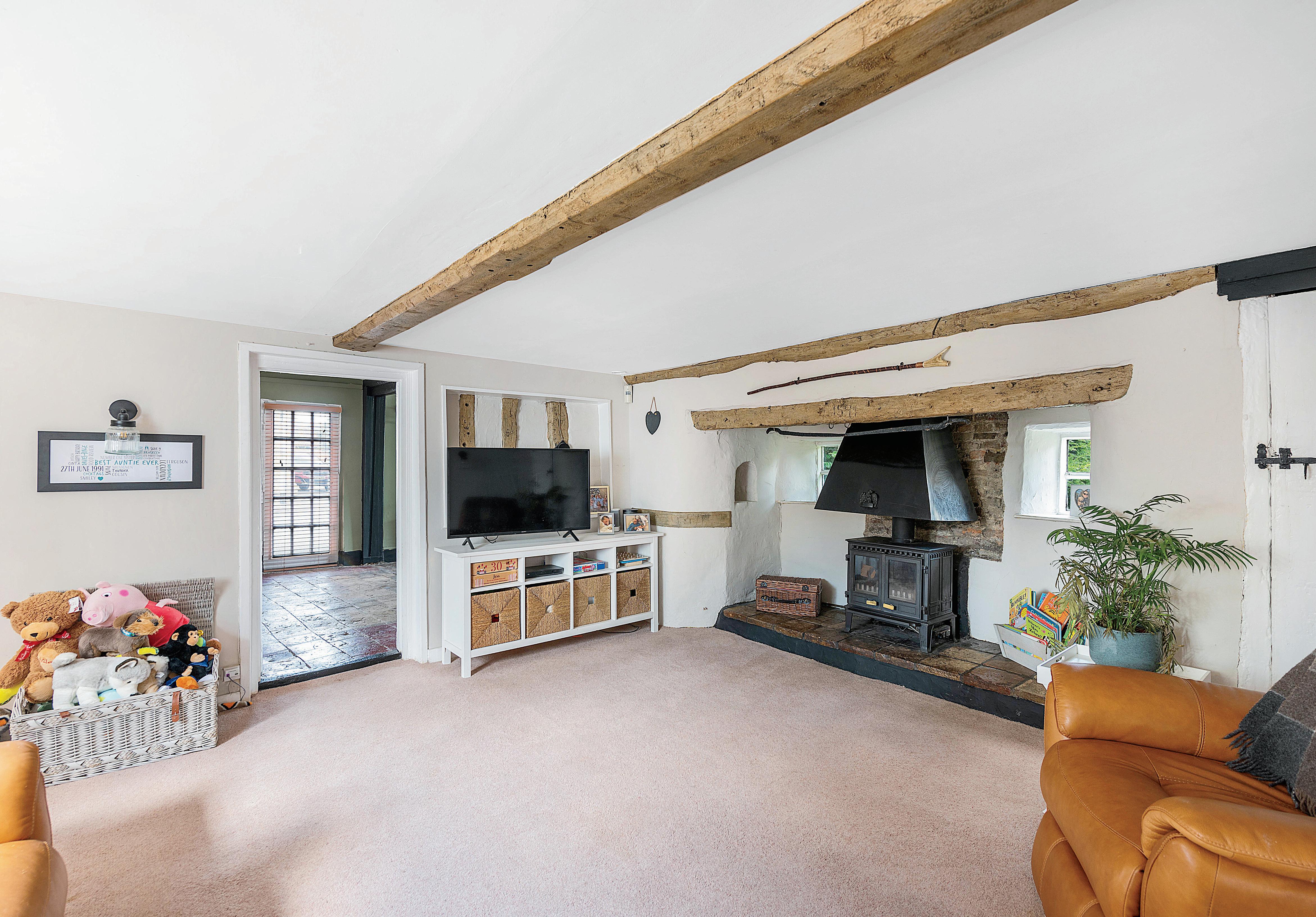 The elegant dual-aspect sitting room is a highlight, featuring a magnificent inglenook fireplace that forms the heart of the space and exudes warmth and character. A delightful door opens directly onto the south-facing rear garden, inviting natural light and providing seamless access to the outdoors.