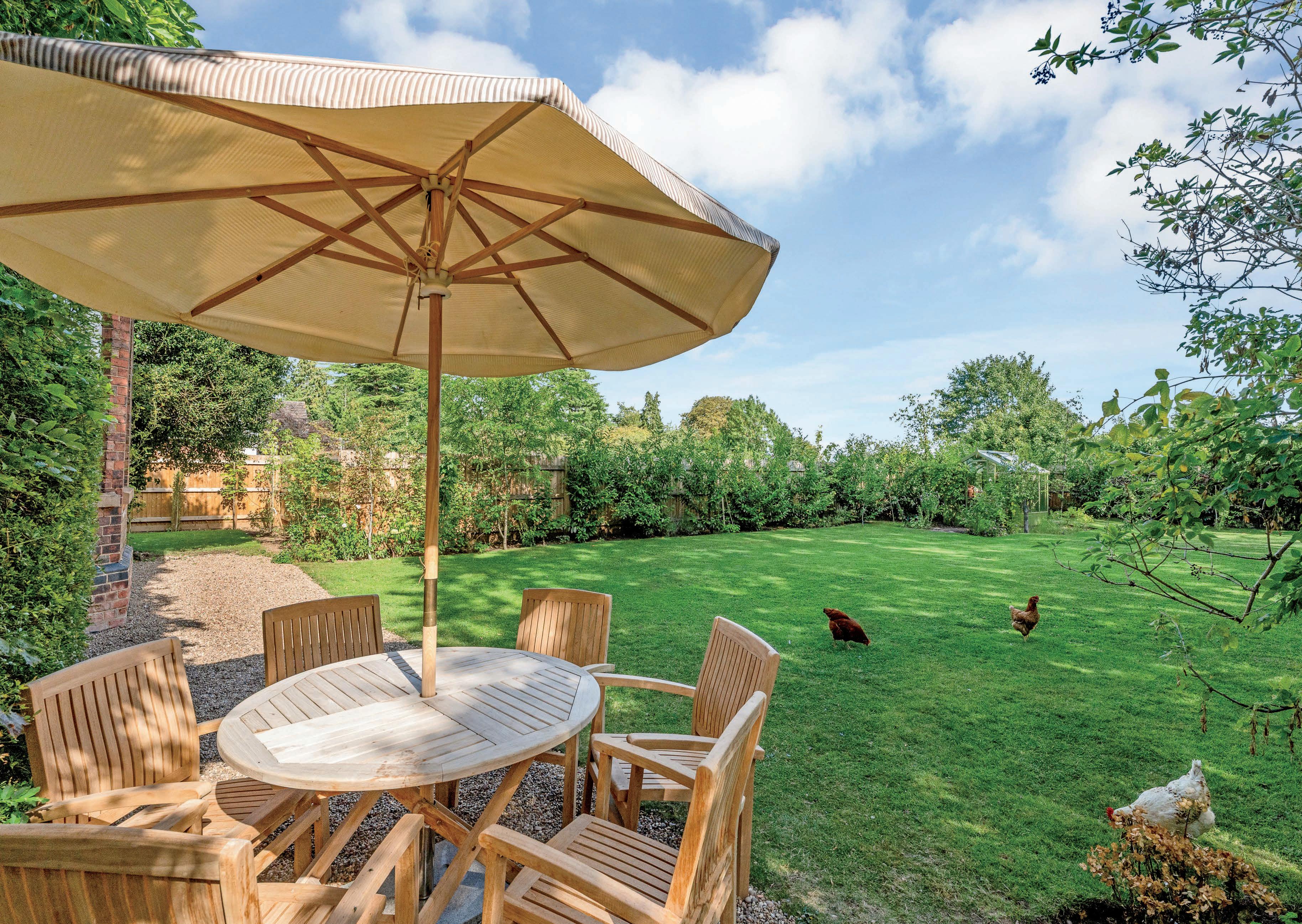 The property is gracefully set within a substantial, fully enclosed corner plot, enhanced by mature planting and a selection of private seating areas. Landscaped gardens unfold vibrant borders, and a charming wraparound pathway with a south-facing lawn to the front, framed by newly planted trees, offers both beauty and seclusion.