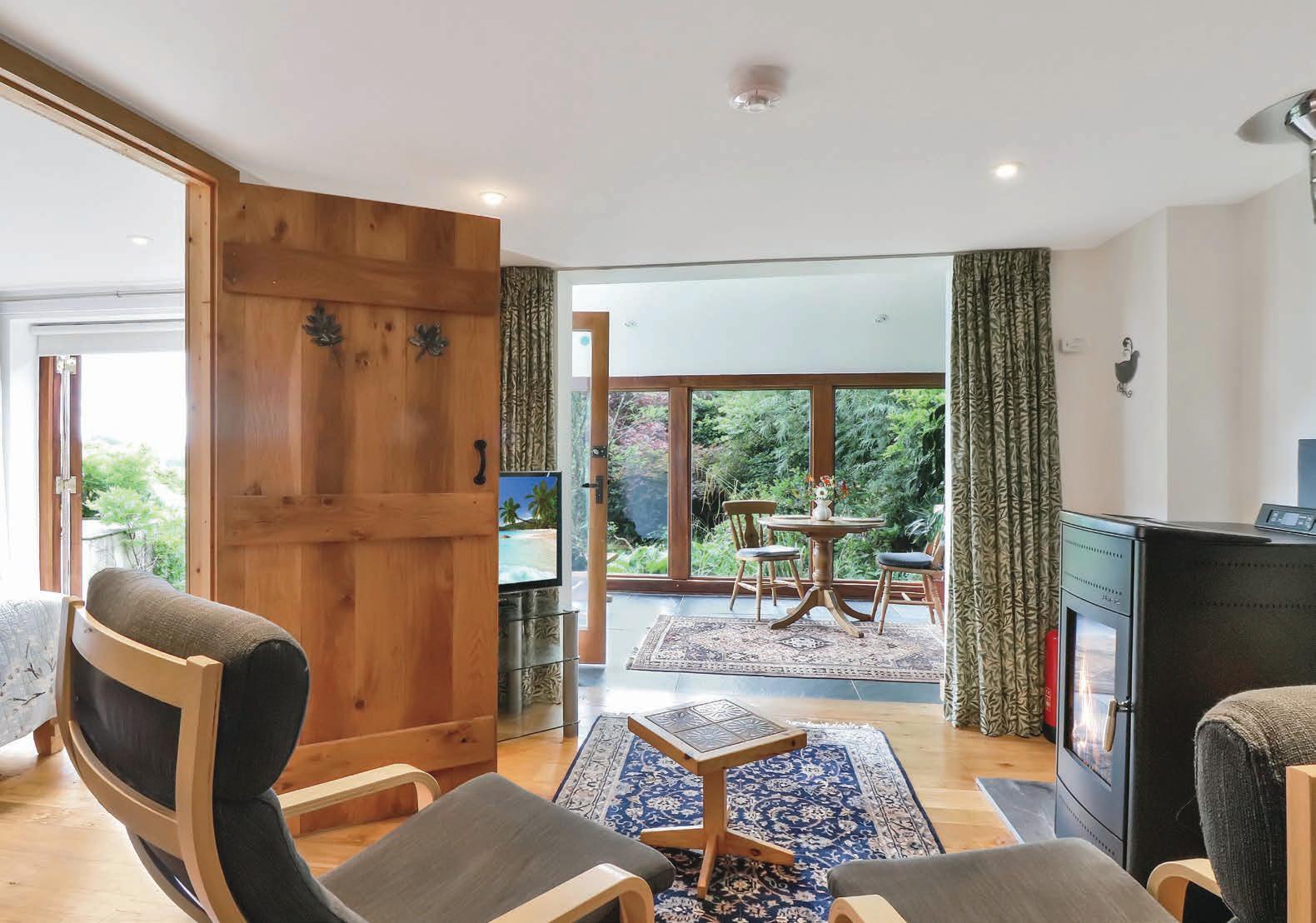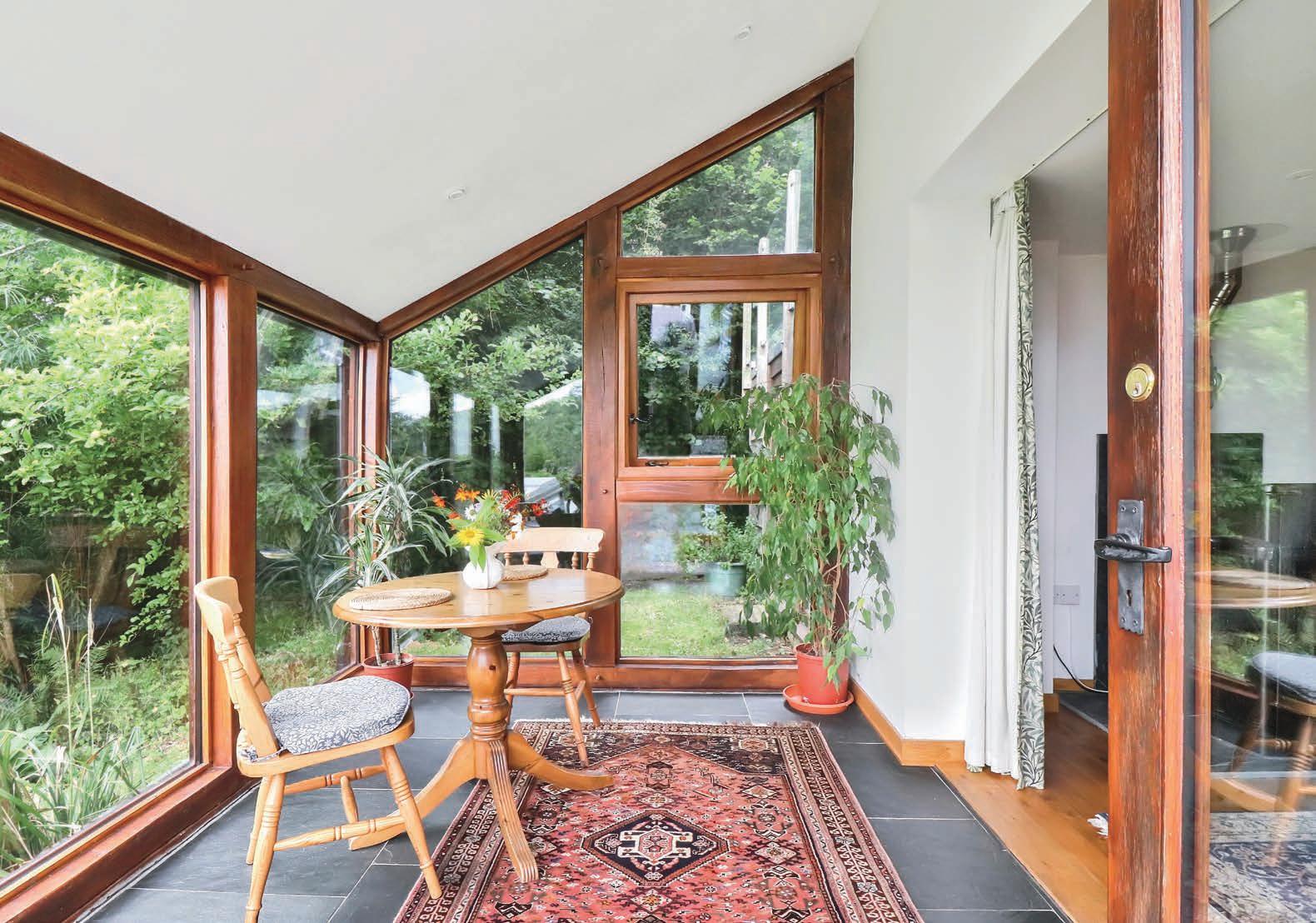 Adjacent to this, a separate planning approval allowed for a pottery studio. This insulated space enjoys views over the garden and woodland, and is accessed via double doors at the front or a single rear entrance. It would also suit a home office, gym, or further guest accommodation.